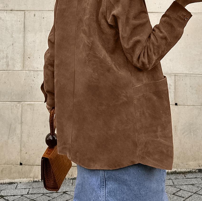 Chaqueta Maillard informal holgada de ante estilo británico, moda europea y americana de otoño 2024, nuevo traje de terciopelo esmerilado