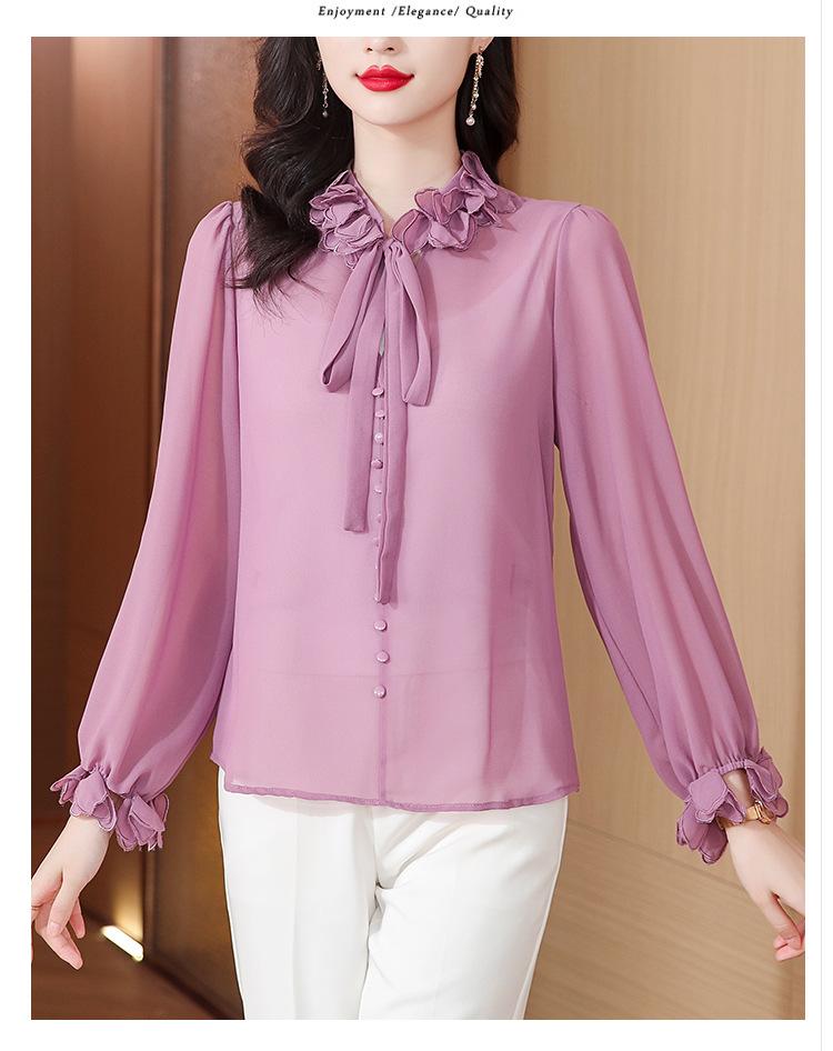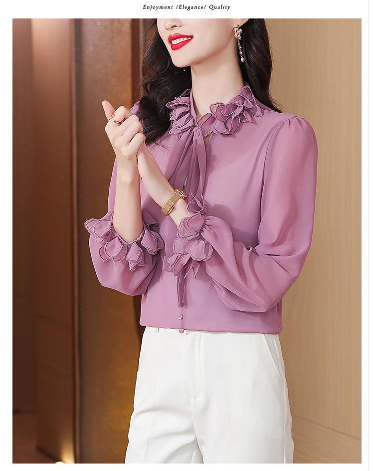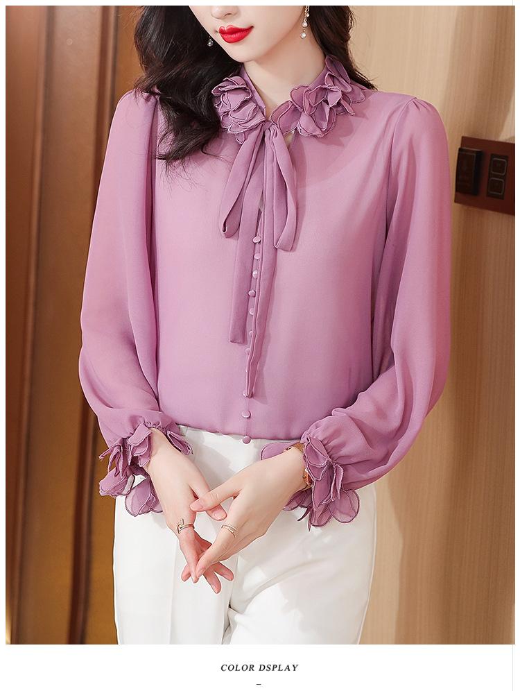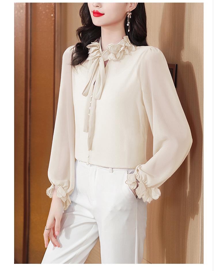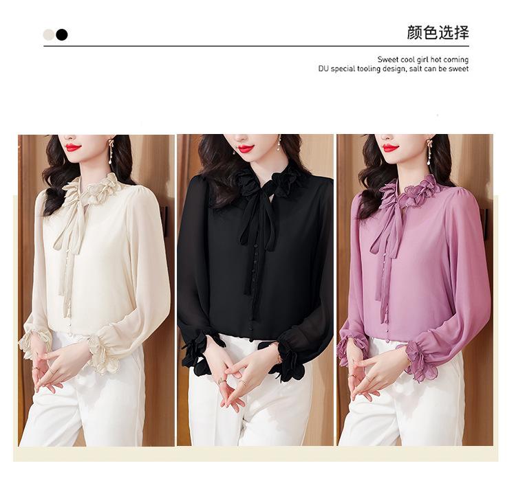 Camisa Coreana de Chifón de Manga Larga 2024 Otoño Nuevo Estilo Camisa Chic y Hermosa Top Moderno y Elegante