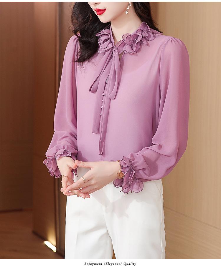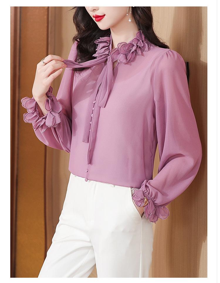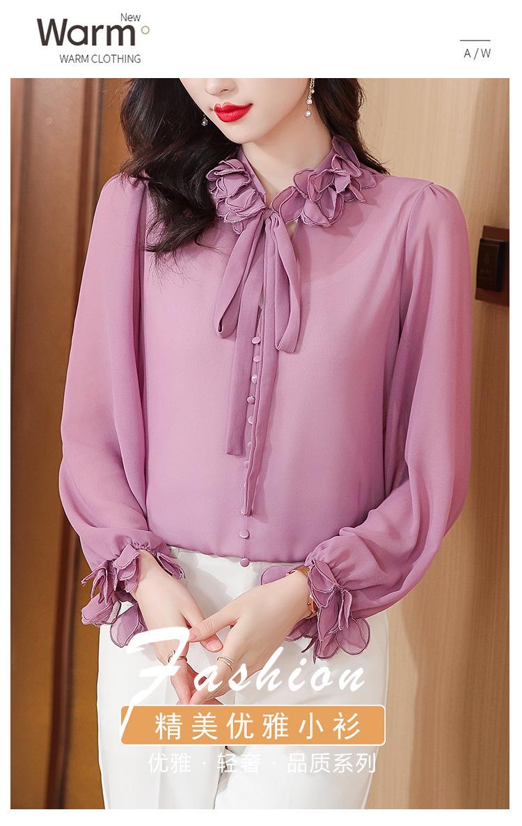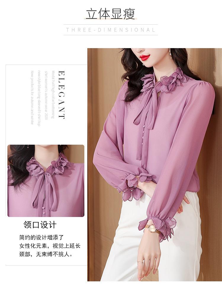 Camisa Coreana de Chifón de Manga Larga 2024 Otoño Nuevo Estilo Camisa Chic y Hermosa Top Moderno y Elegante