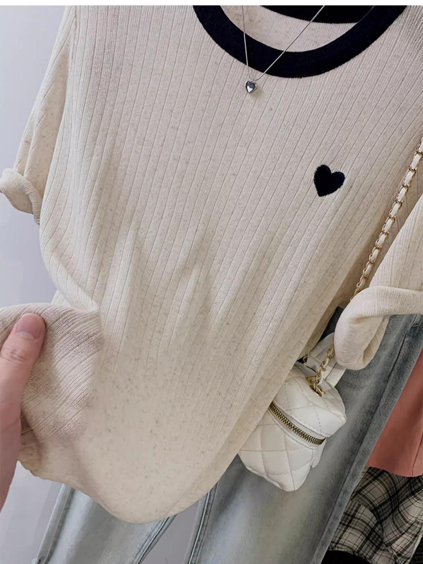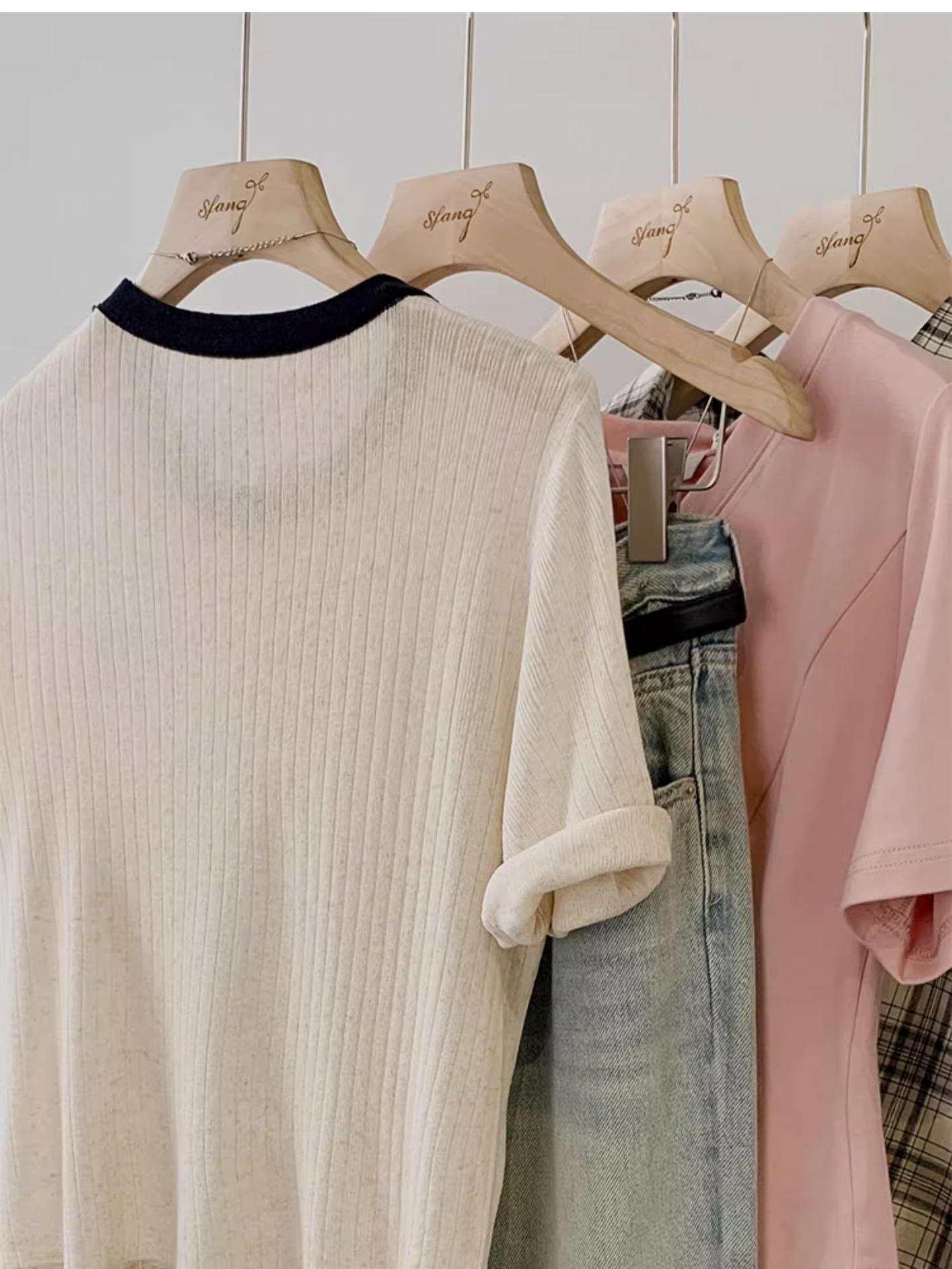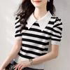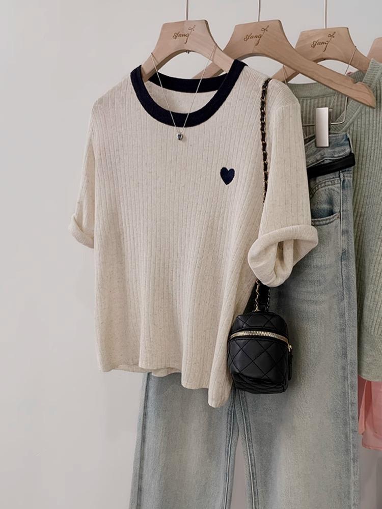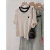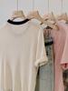 Suéter de punto de seda de hielo con hombros descubiertos, camiseta de manga corta para mujer, verano 2024, nuevo diseño, top holgado con sentido de nicho