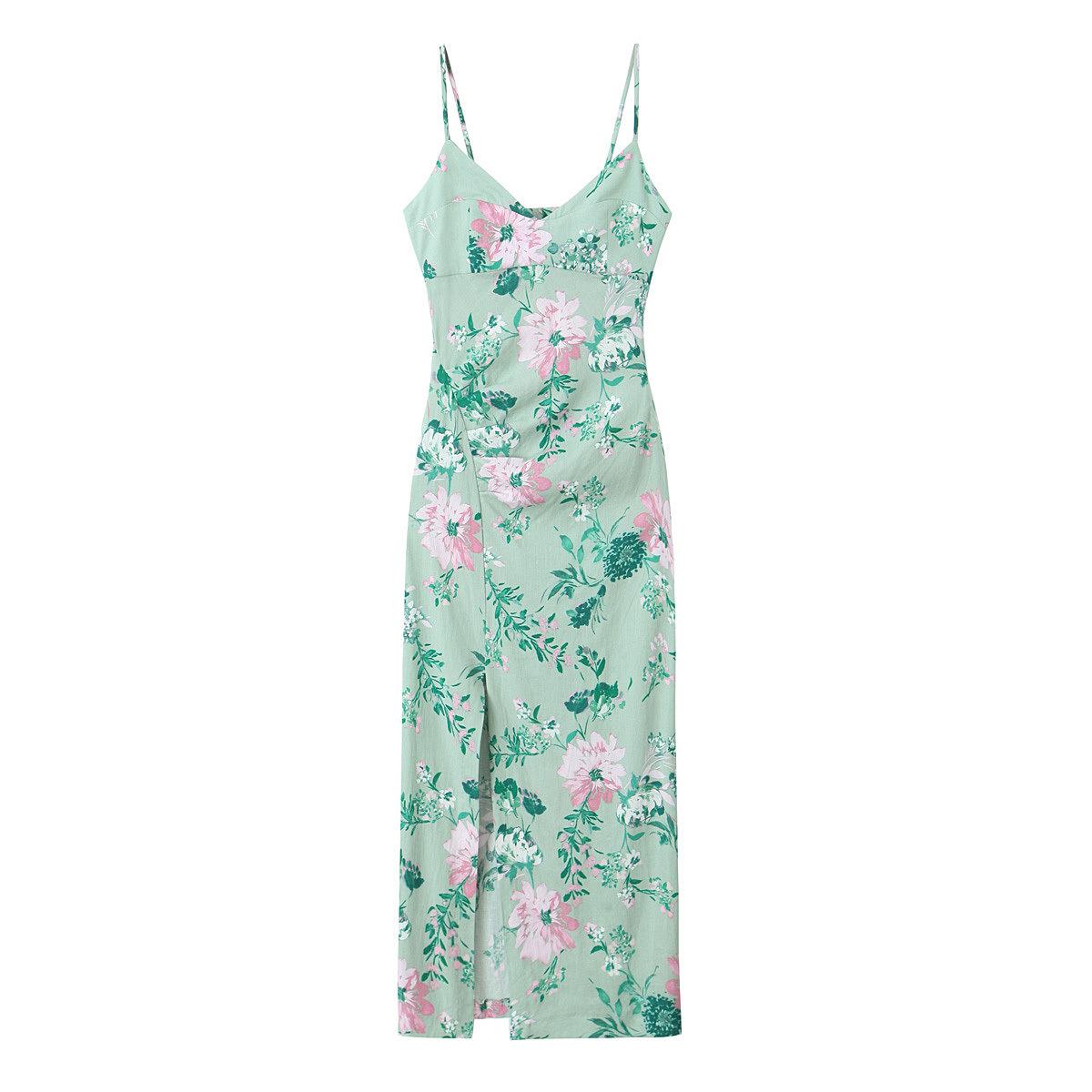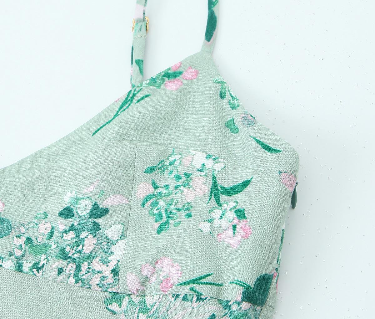 Vestido midi de lino con flores para mujer, verano 2024, comercio transfronterizo de Amazon, Europa y América