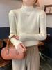 Suéter Base de Cuello Alto Medio Estilo Francés de Manga Larga Abullonada para Mujer Otoño e Invierno Ajustado Adelgazante Camisa de Punto Top Corto para Mujer