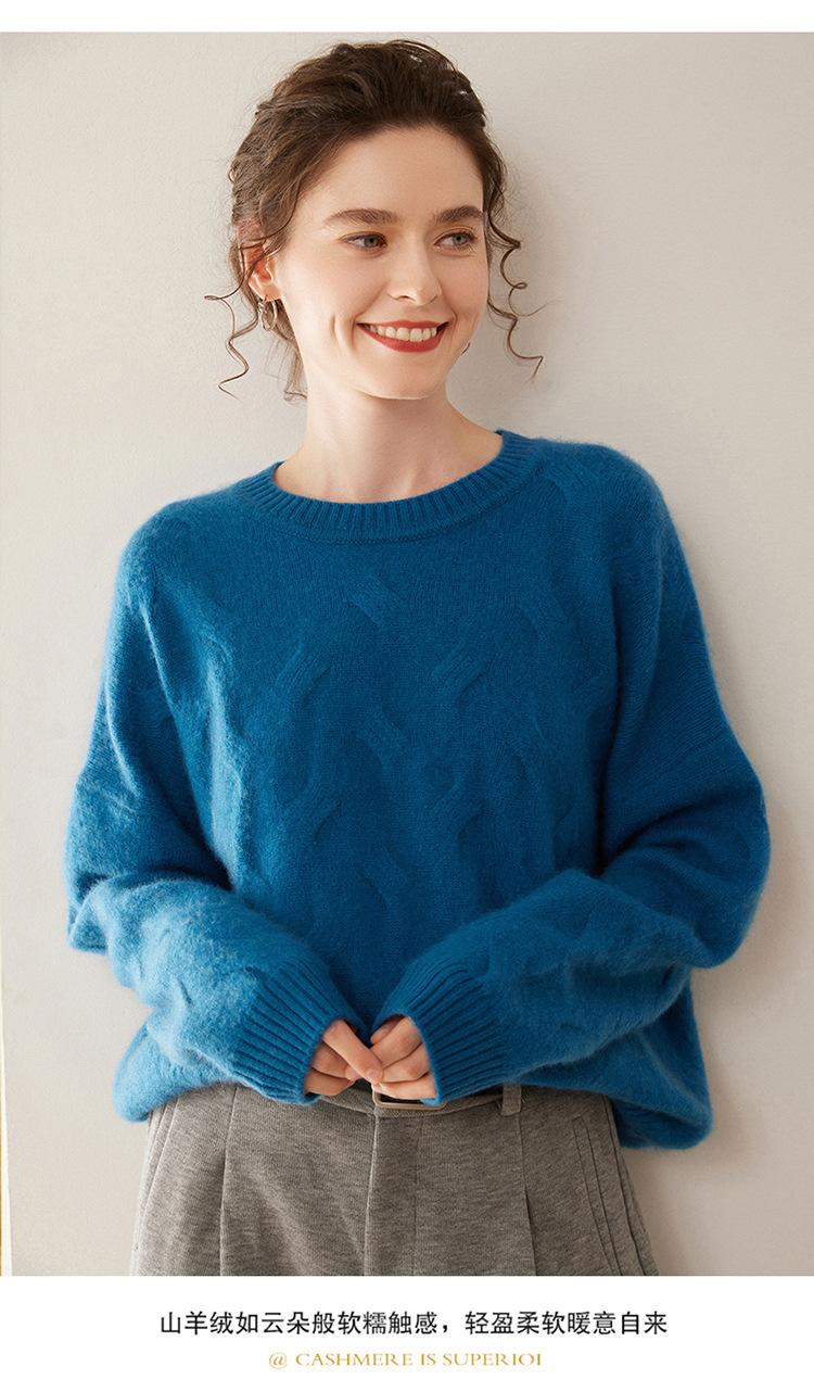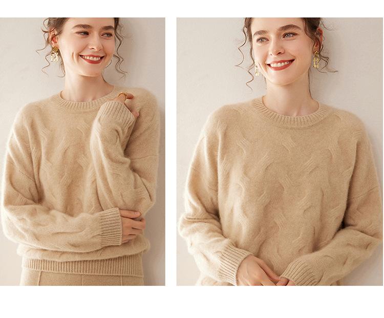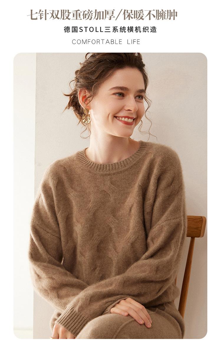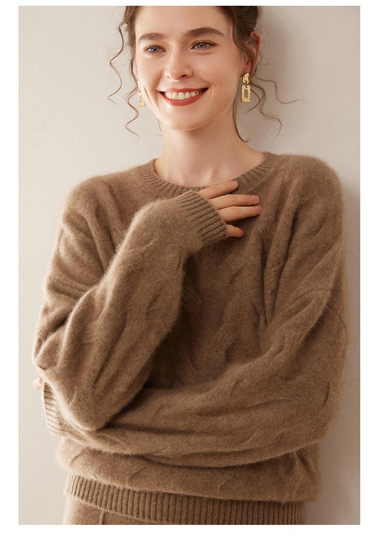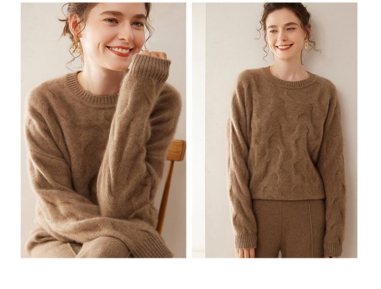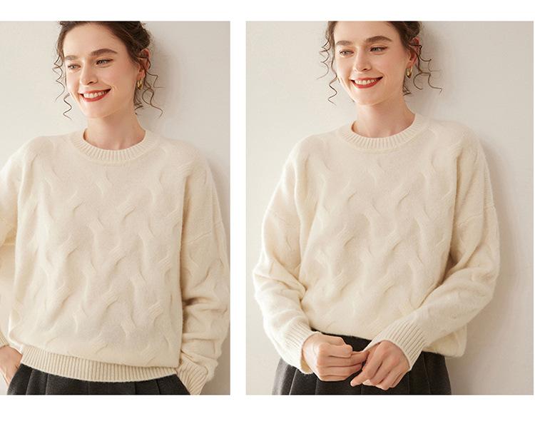 Suéter de punto de cachemira para mujer, suéter grueso de manga larga, suelto, de moda, combina con todo, sencillo, para otoño e invierno.