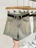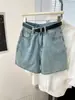 Pantalones cortos vaqueros de cintura alta para mujer, de verano, finos, holgados, estilo americano, de corte A, con pierna ancha, para chica atractiva, 2024
