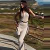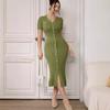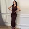 Verano 2024 Nuevo Europeo y Americano Transfronterizo Amazon Transfronterizo para Mujer Color Sólido Cuello Redondo Sin Mangas Ajustado Tejido Falda de Cadera