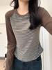 Camiseta de manga larga a rayas de raso para mujer, diseño de primavera y otoño, camisa de base interior con hombros estrechos