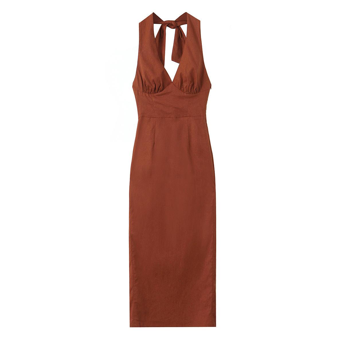 Vestido midi ajustado de lino para mujer, verano 2024, comercio transfronterizo de Amazon, Europa y América