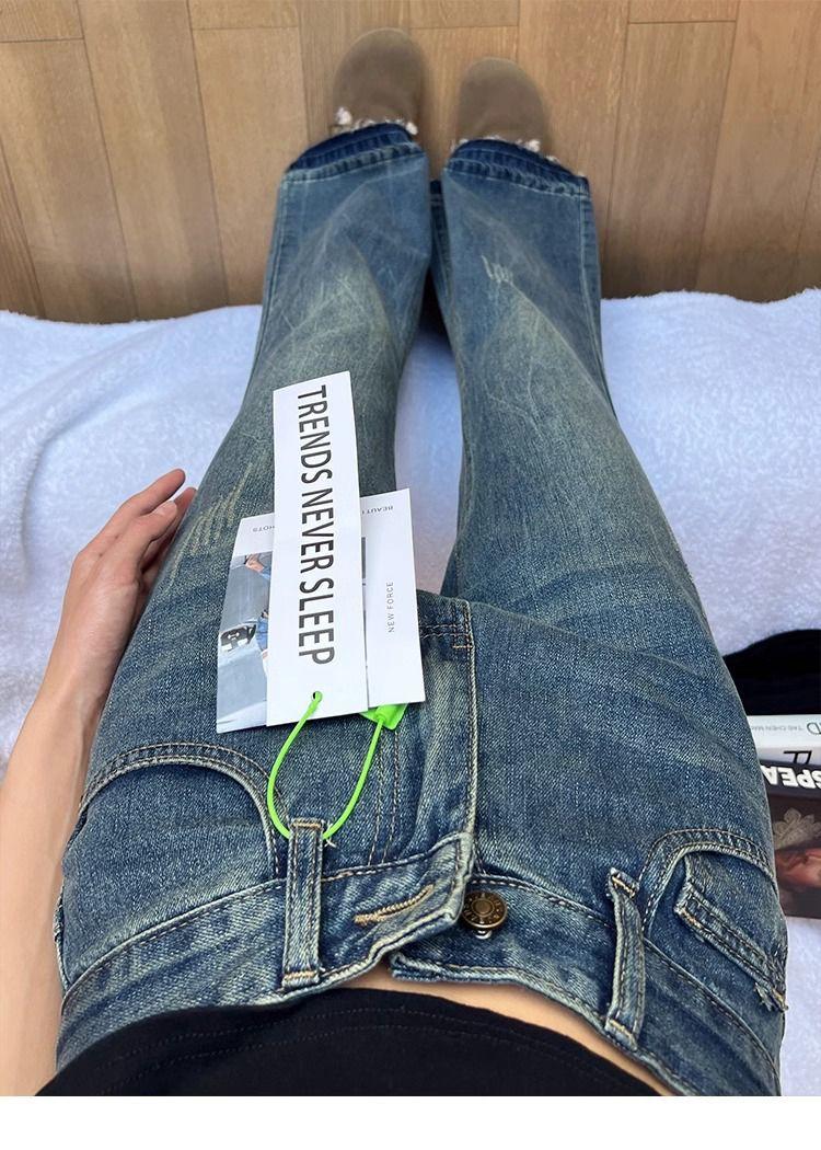 Pantalones adelgazantes retro de estilo americano de cintura alta para mujer, primavera y otoño 2024