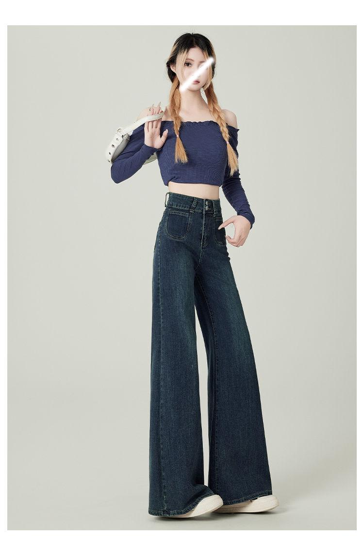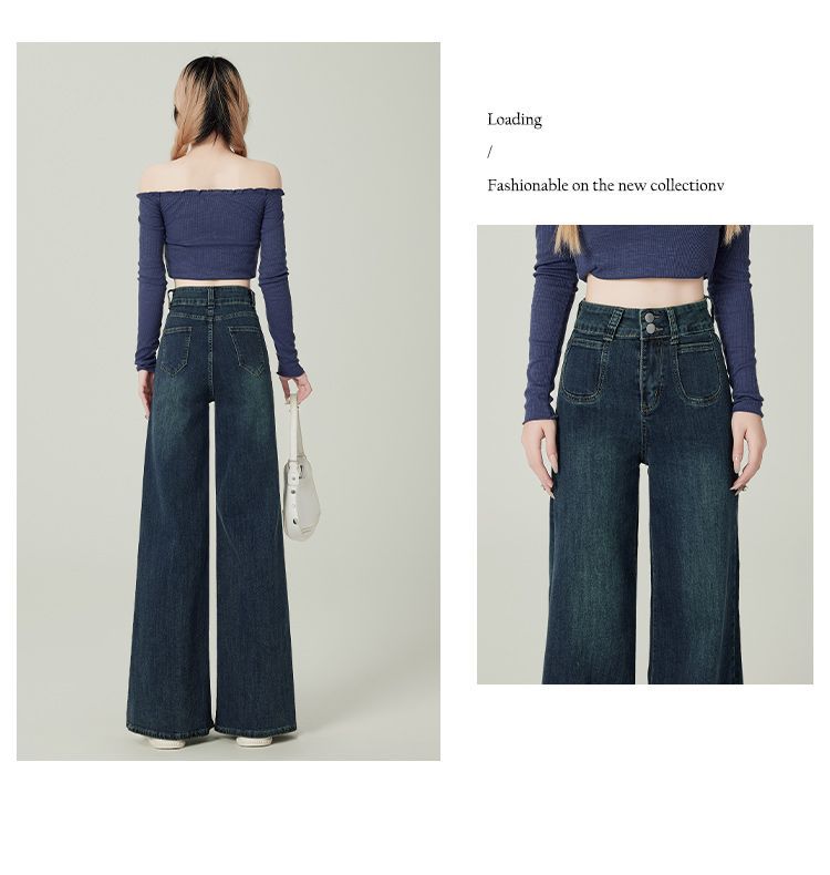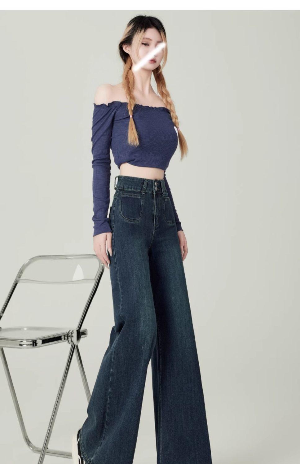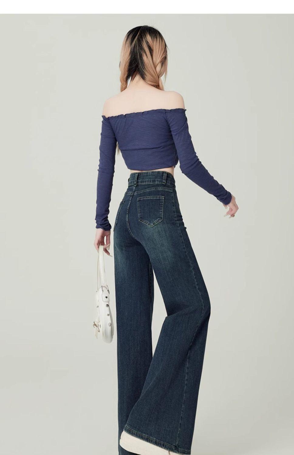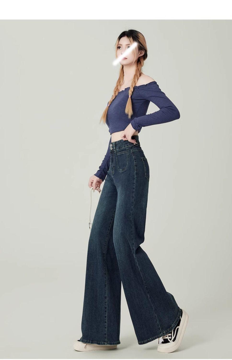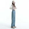 Pantalones vaqueros Micro-Lam de cintura alta azul retro de otoño para mujer, holgados, adelgazantes, con perneras anchas