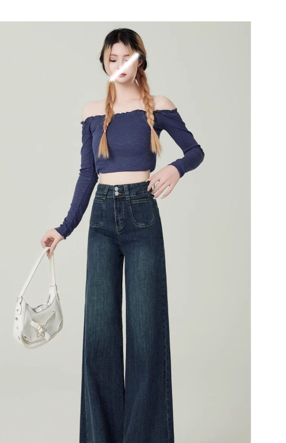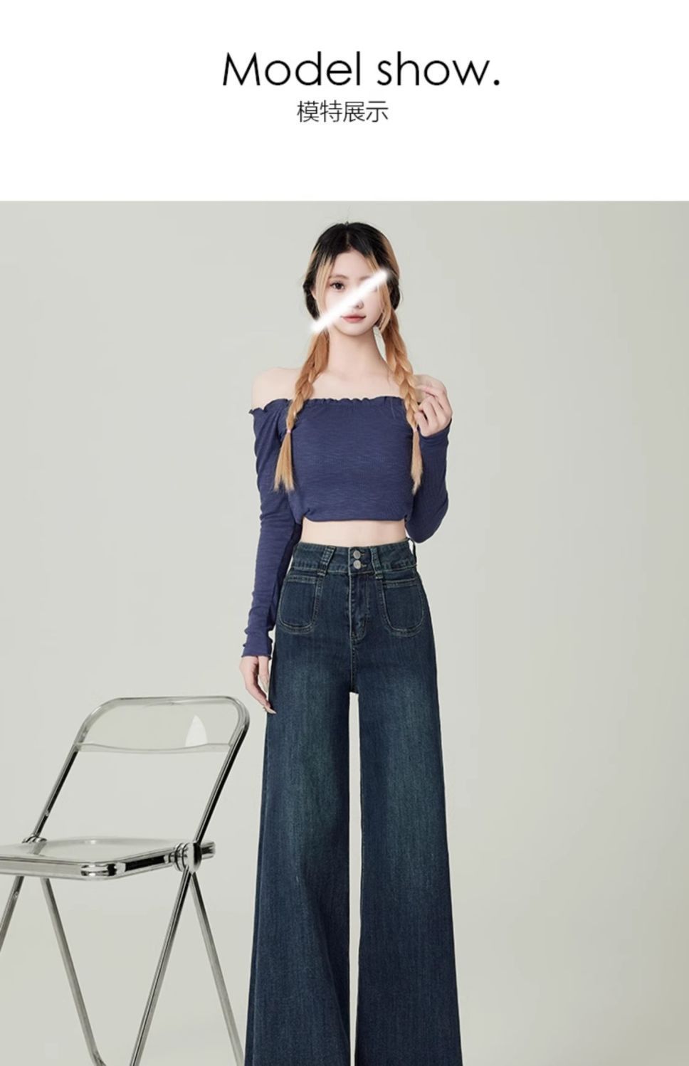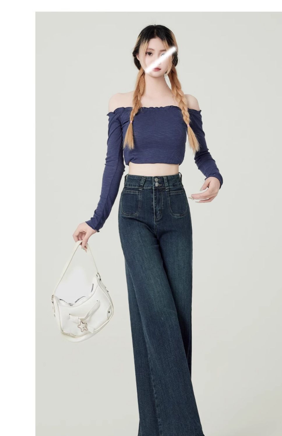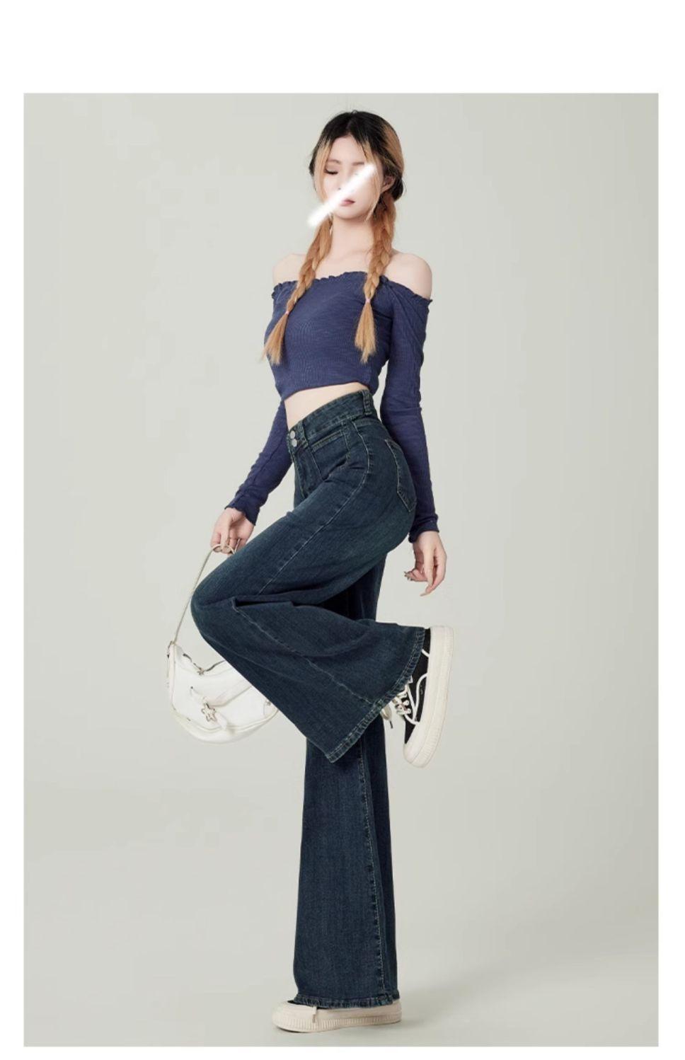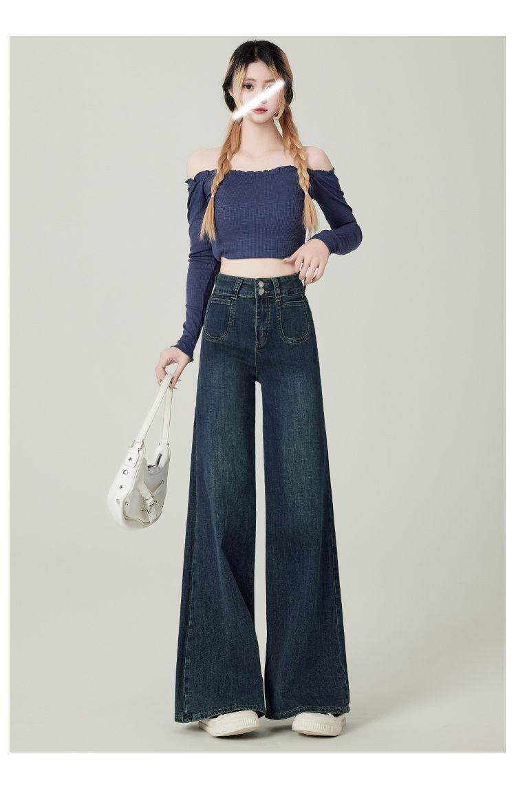 Pantalones vaqueros Micro-Lam de cintura alta azul retro de otoño para mujer, holgados, adelgazantes, con perneras anchas