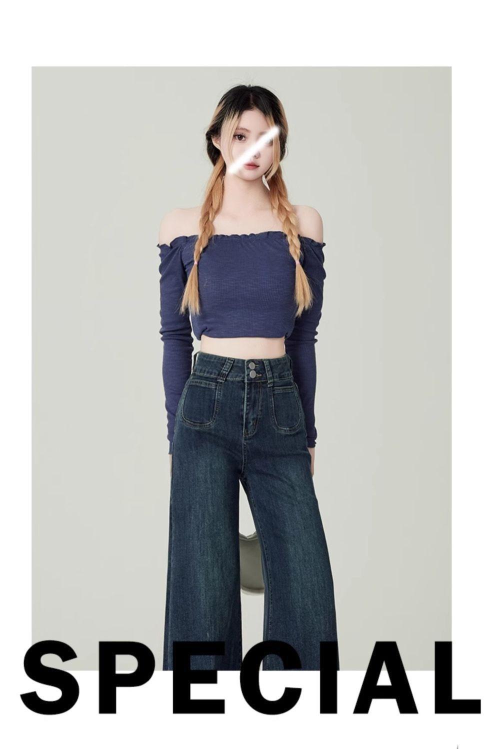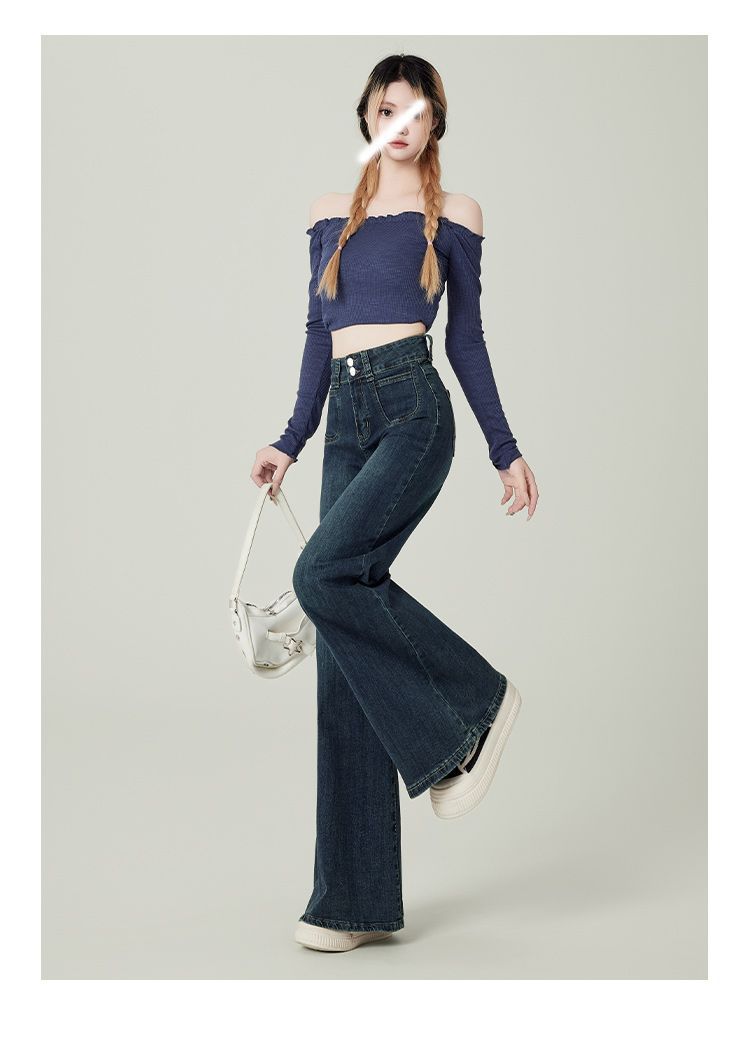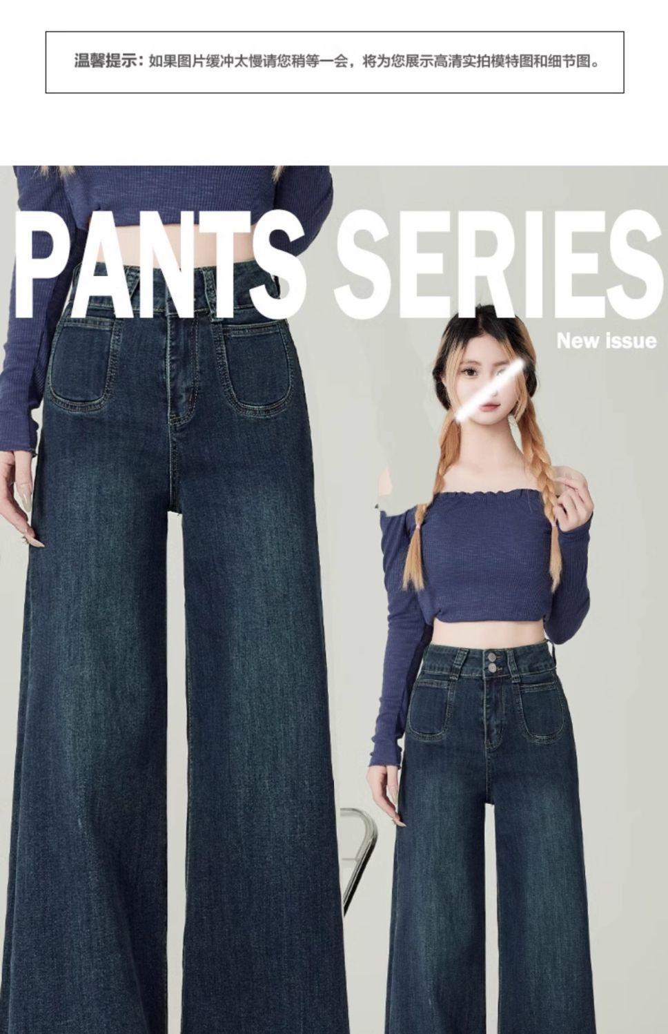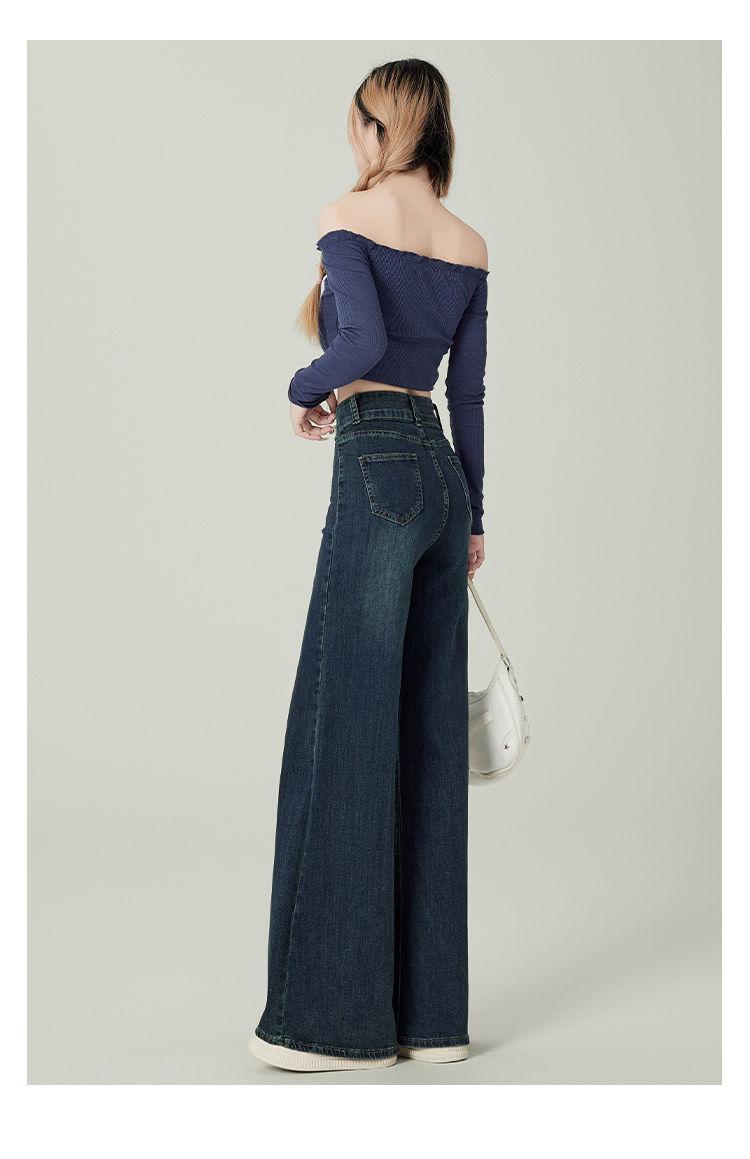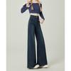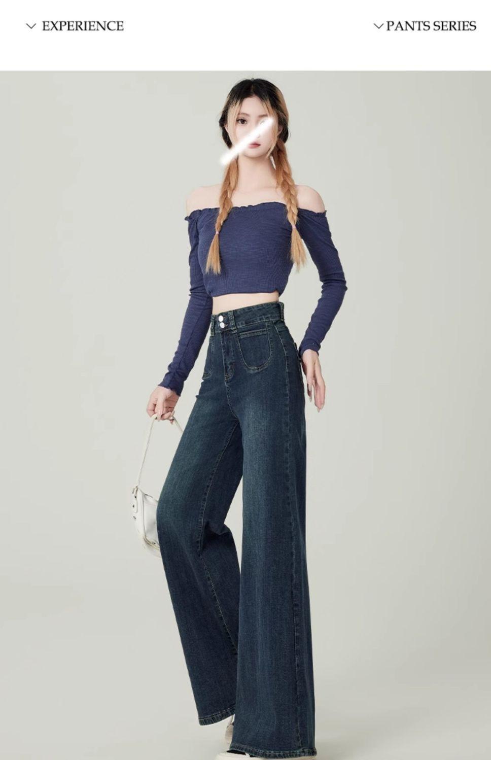 Pantalones vaqueros Micro-Lam de cintura alta azul retro de otoño para mujer, holgados, adelgazantes, con perneras anchas