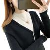 Suéter de Punto Base de Otoño e Invierno Nuevo Grueso con Forro Polar Adelgazante Combinación de Colores Versátil Cuello Alto Falso de Dos Piezas para Mujer