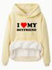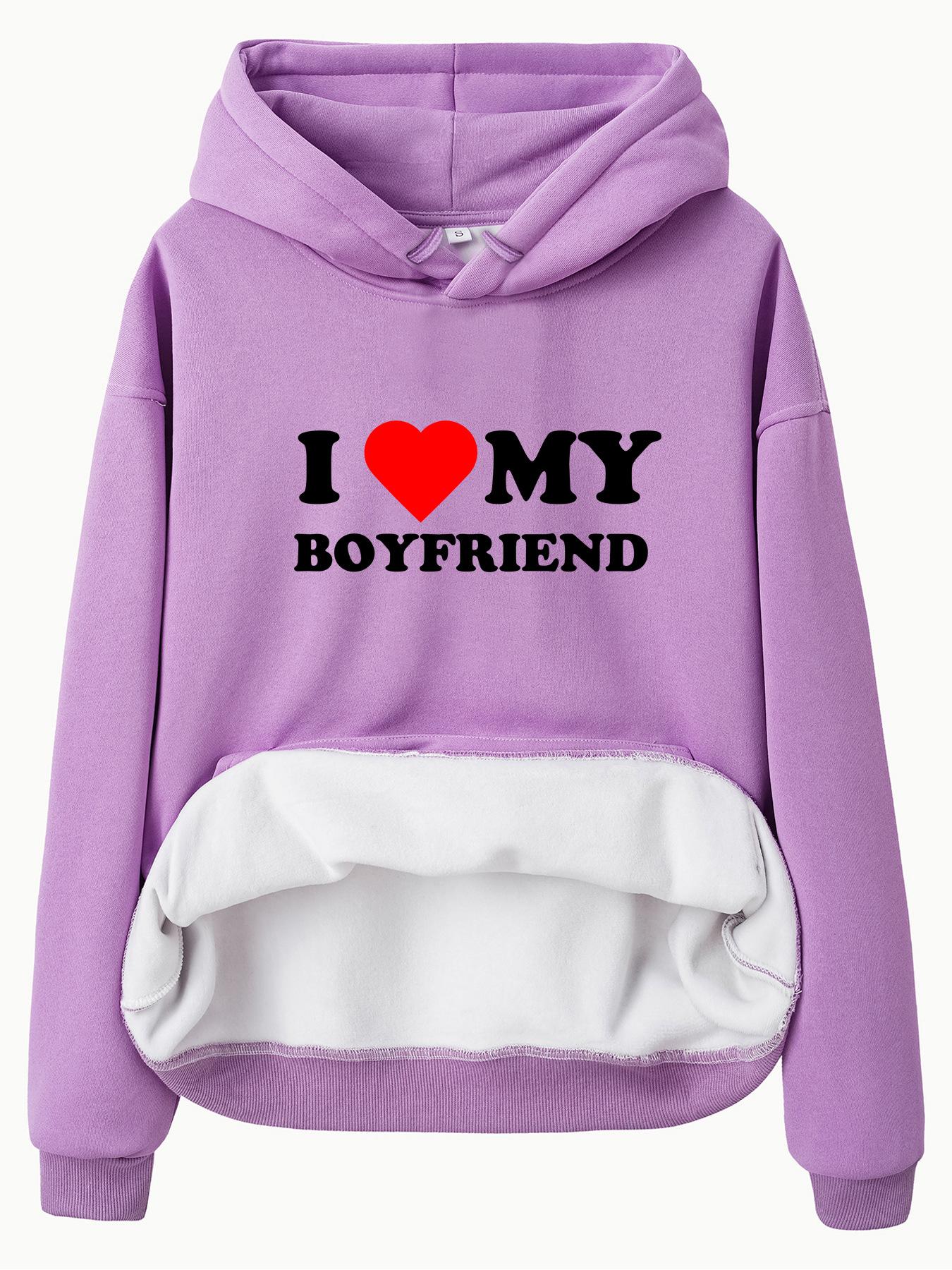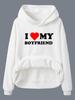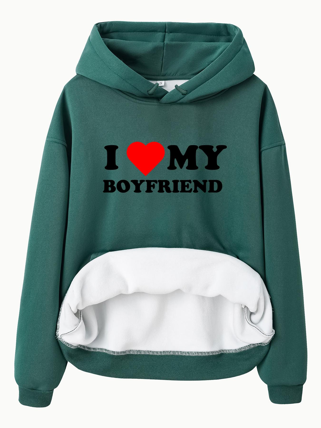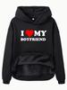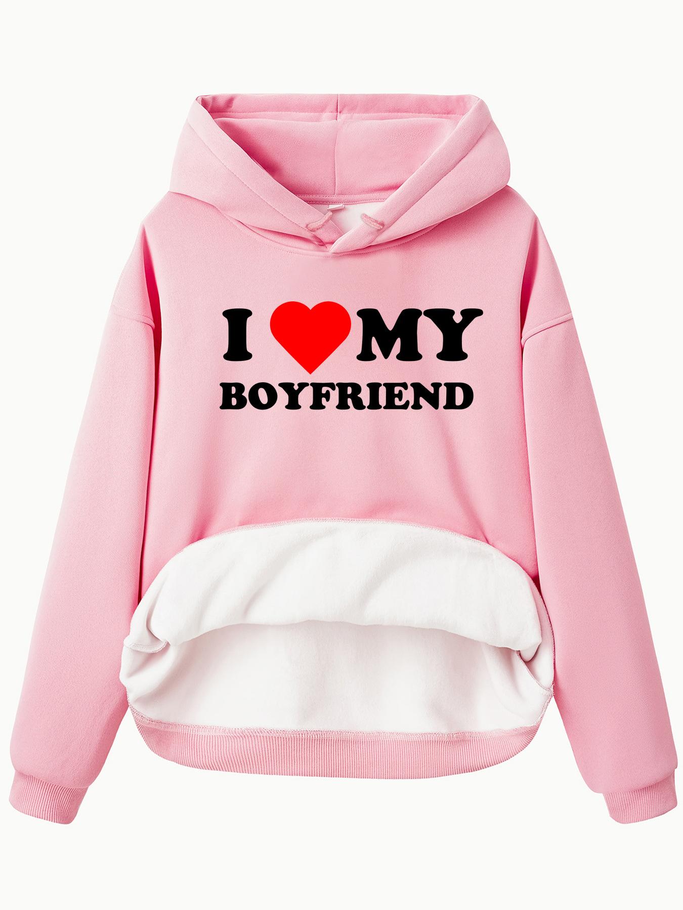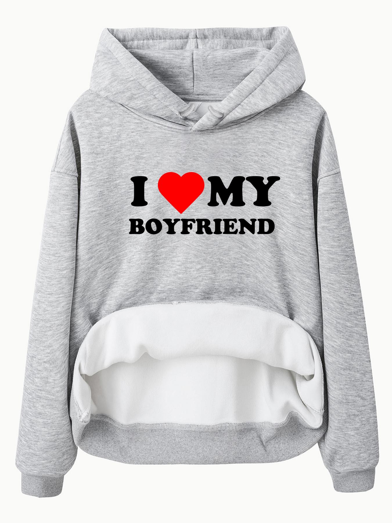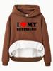Sudadera con capucha de manga larga con forro polar y bolsillo tipo canguro para mujer europea y americana de otoño e invierno de talla europea transfronteriza con estampado del Día de San Valentín