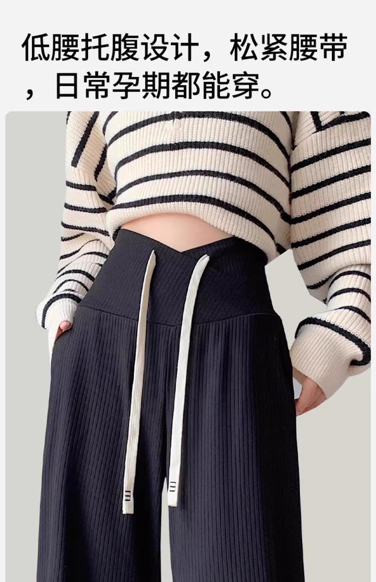 Pantalones de mujer embarazada primavera y otoño, pantalones de pierna ancha otoño e invierno 2024, nuevos pantalones de embarazo de cintura baja, talla grande, chica gordita