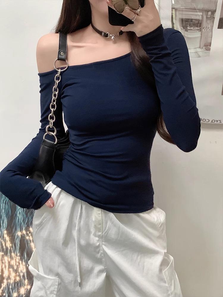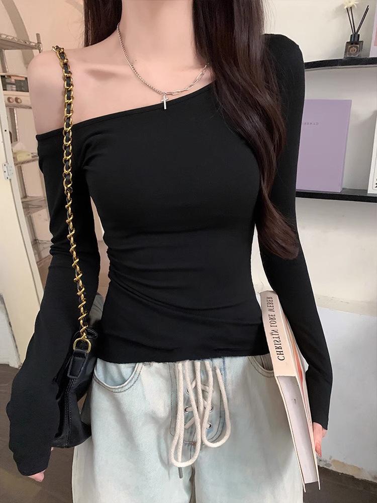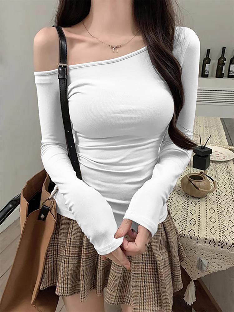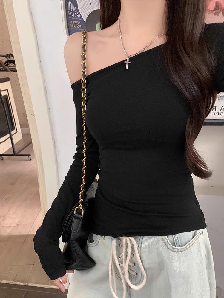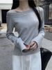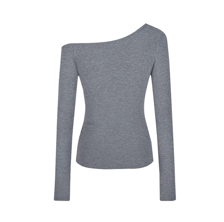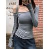 Camiseta de Hombro con Hombro Gris de Manga Larga para Mujer Nuevo Otoño Temprano Spice Girls Puro Querer Ajustado Adelgazante Hombro Chic Top