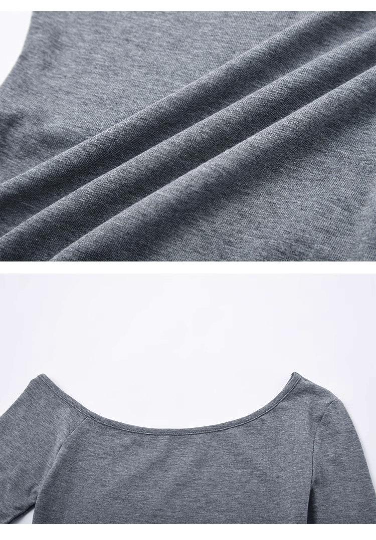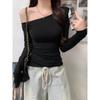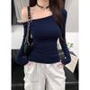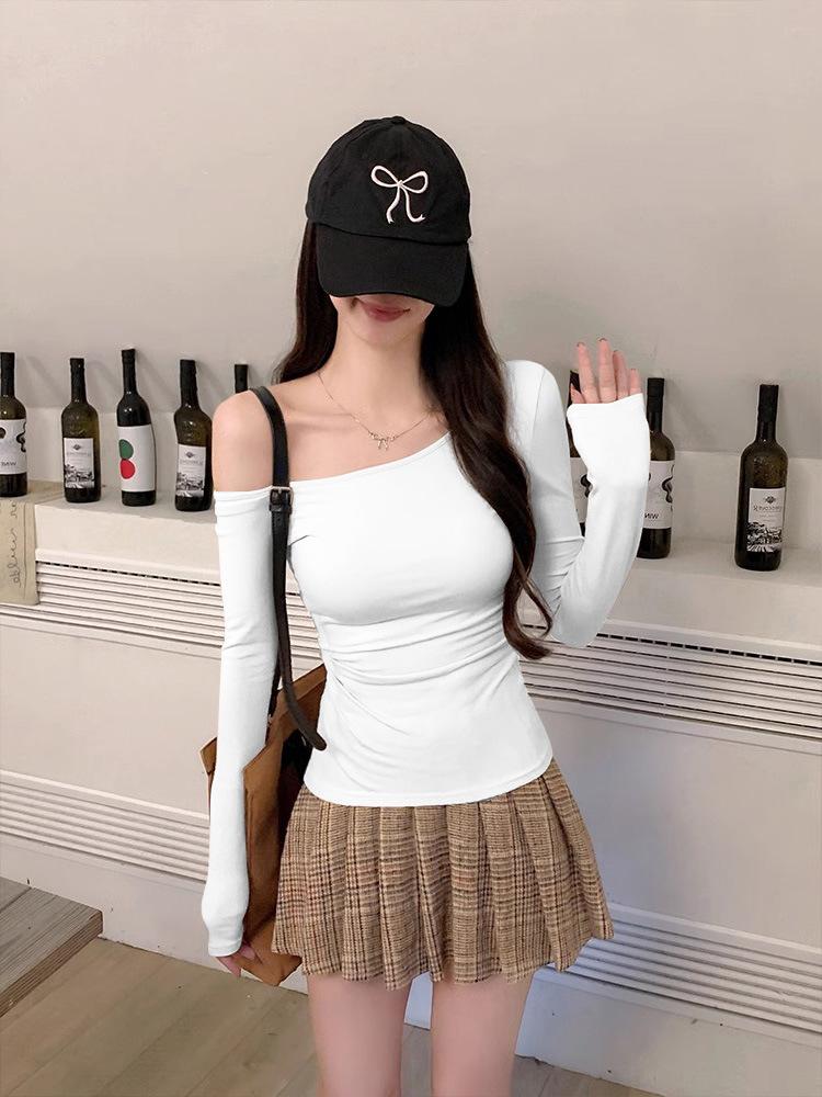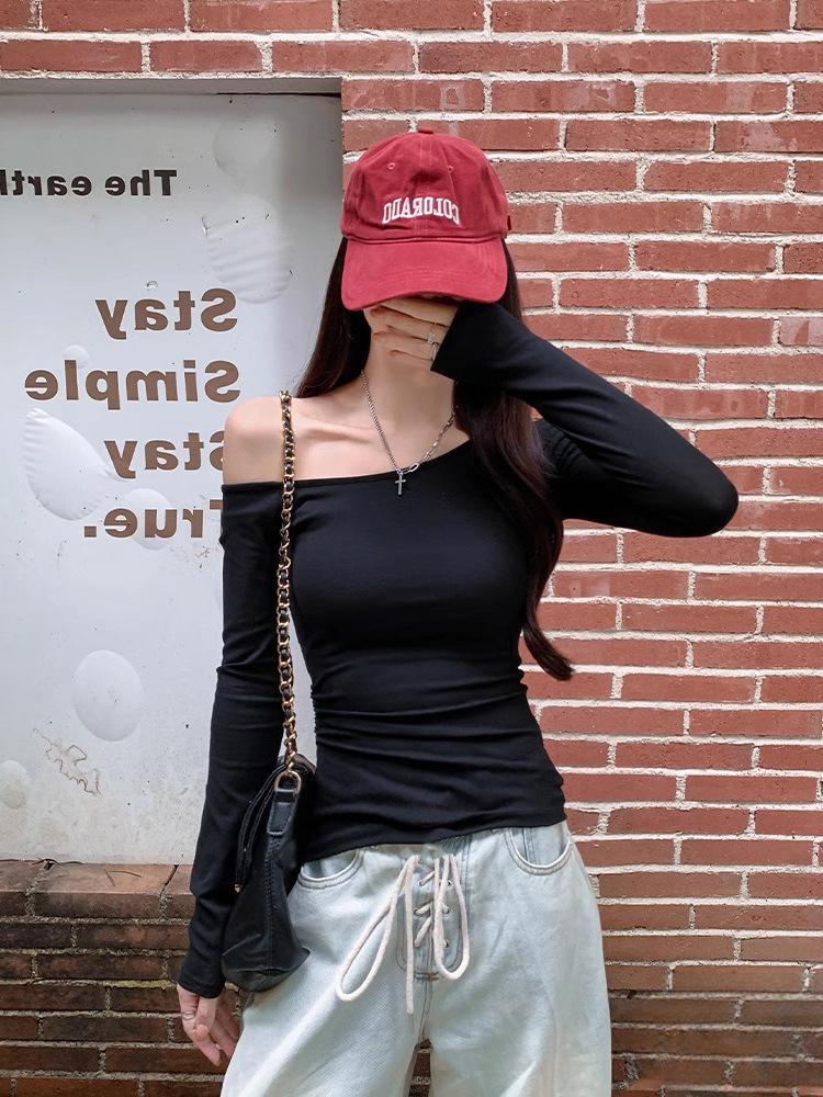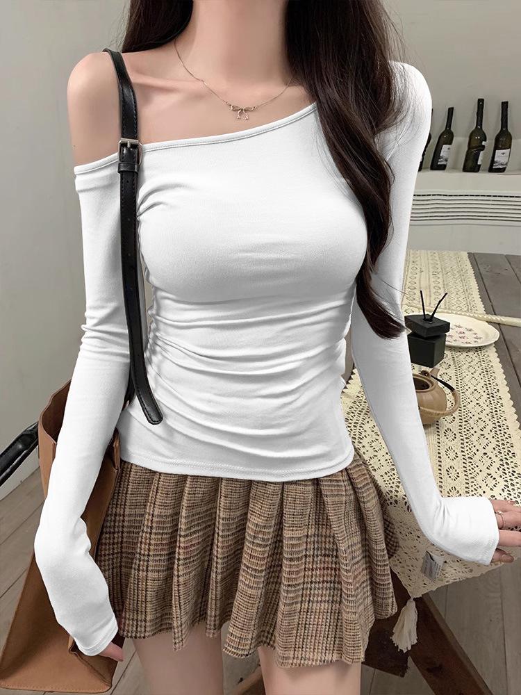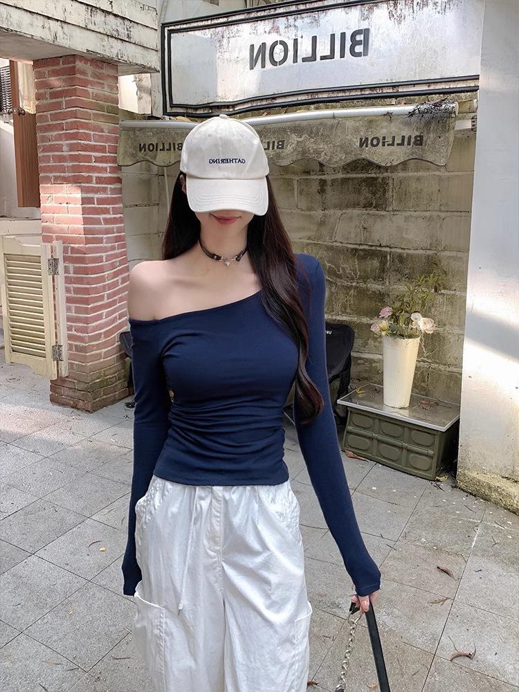 Camiseta de Hombro con Hombro Gris de Manga Larga para Mujer Nuevo Otoño Temprano Spice Girls Puro Querer Ajustado Adelgazante Hombro Chic Top