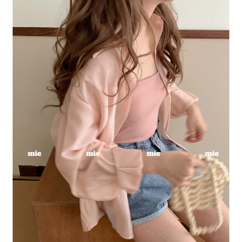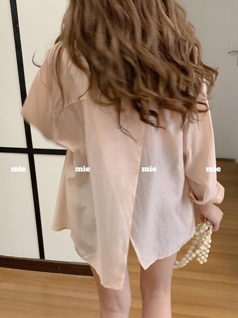 Diseño Sense Nicho Espalda Dividida Camisa Manga Larga Mujer Nicho Suelta Color Sólido Ropa Exterior Ropa Protección Solar Verano Nuevo Mujer