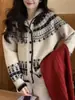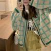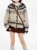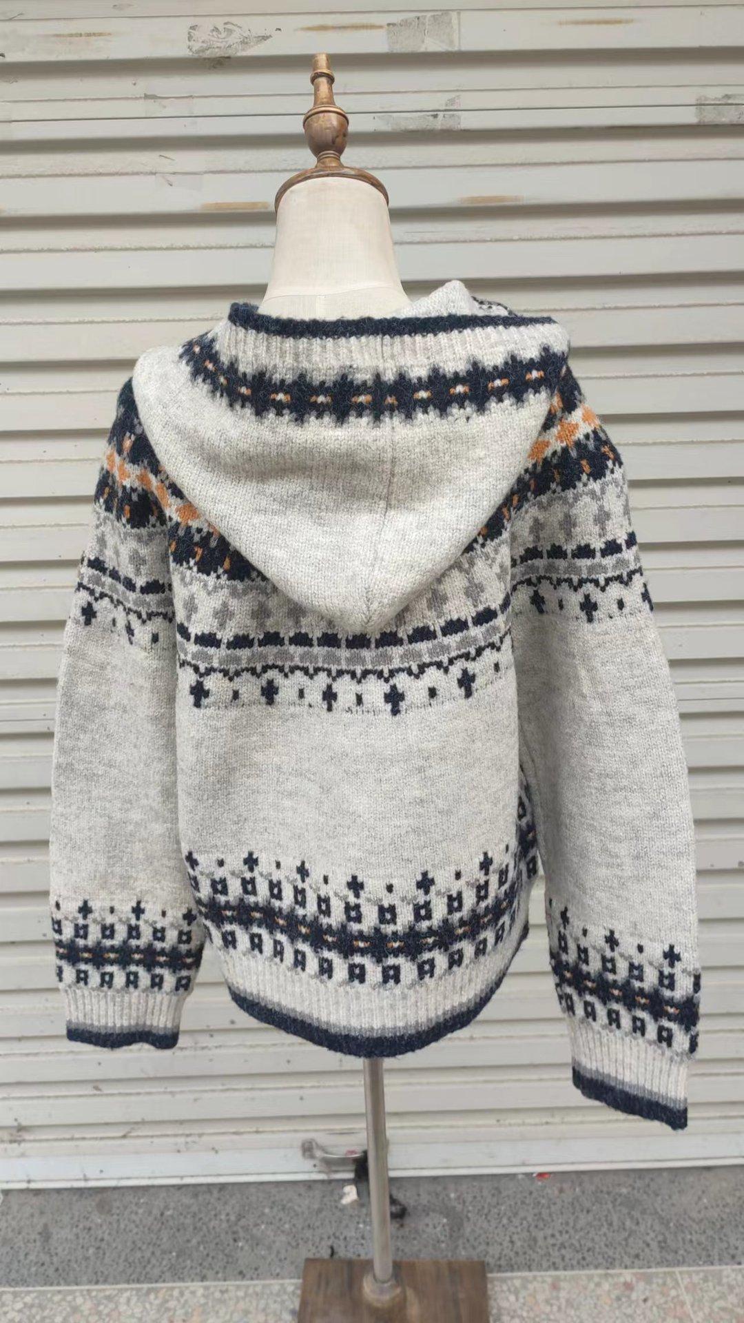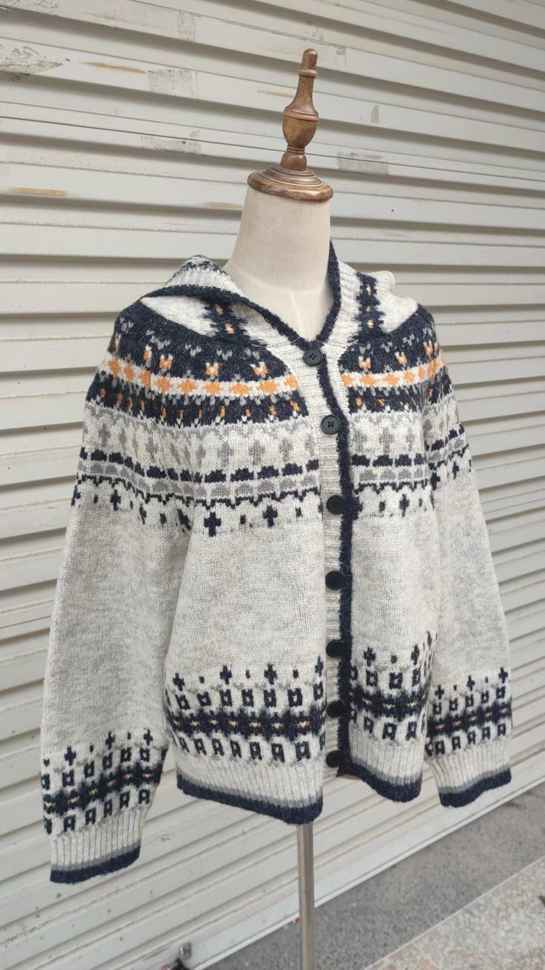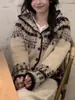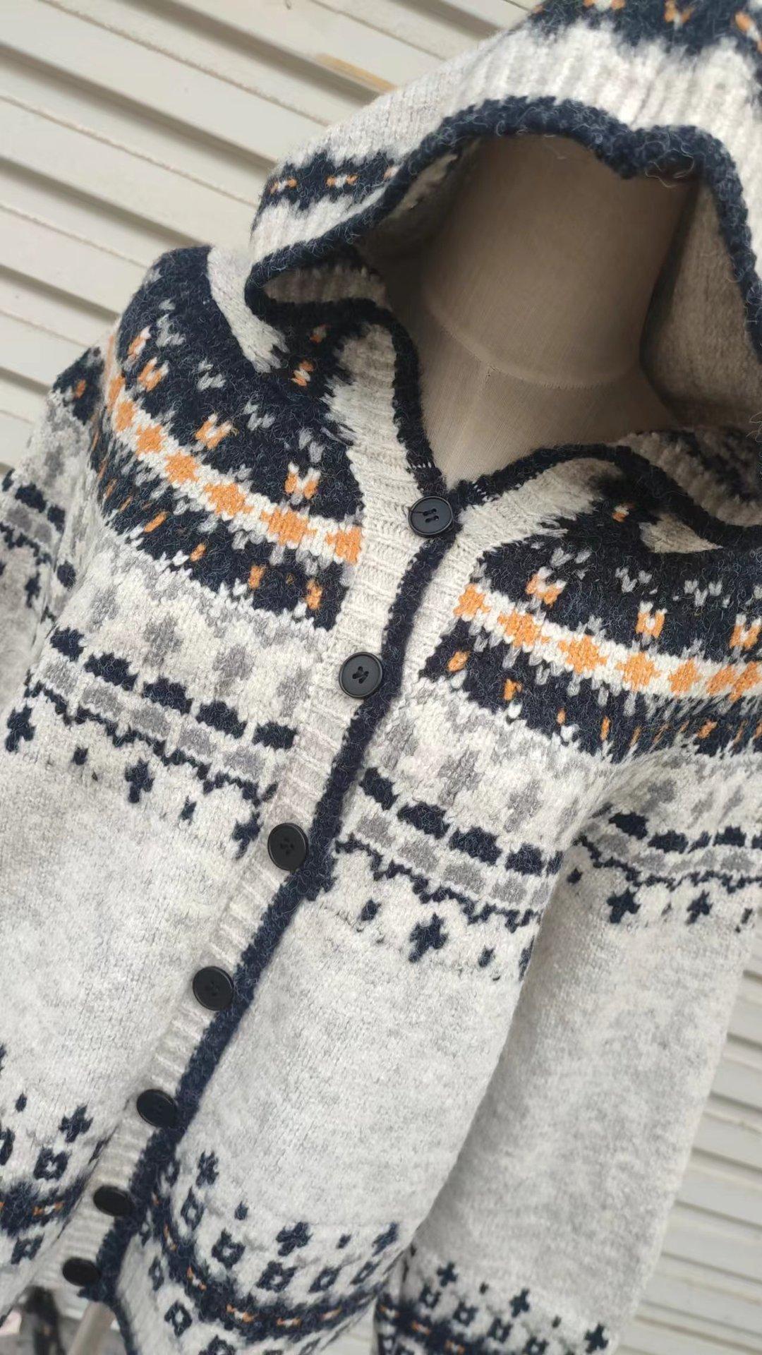Otoño e Invierno Nuevo Estilo Japonés Contraste Vintage Cárdigan de Punto con Capucha para Mujer Suave Cera Jacquard Holgado Fell Island Abrigo Suéter