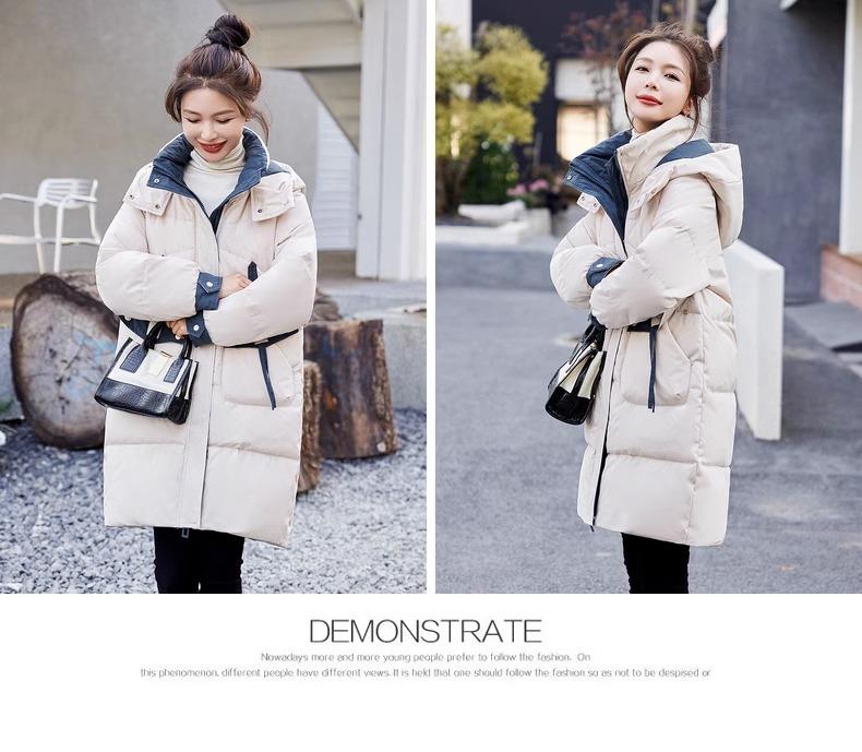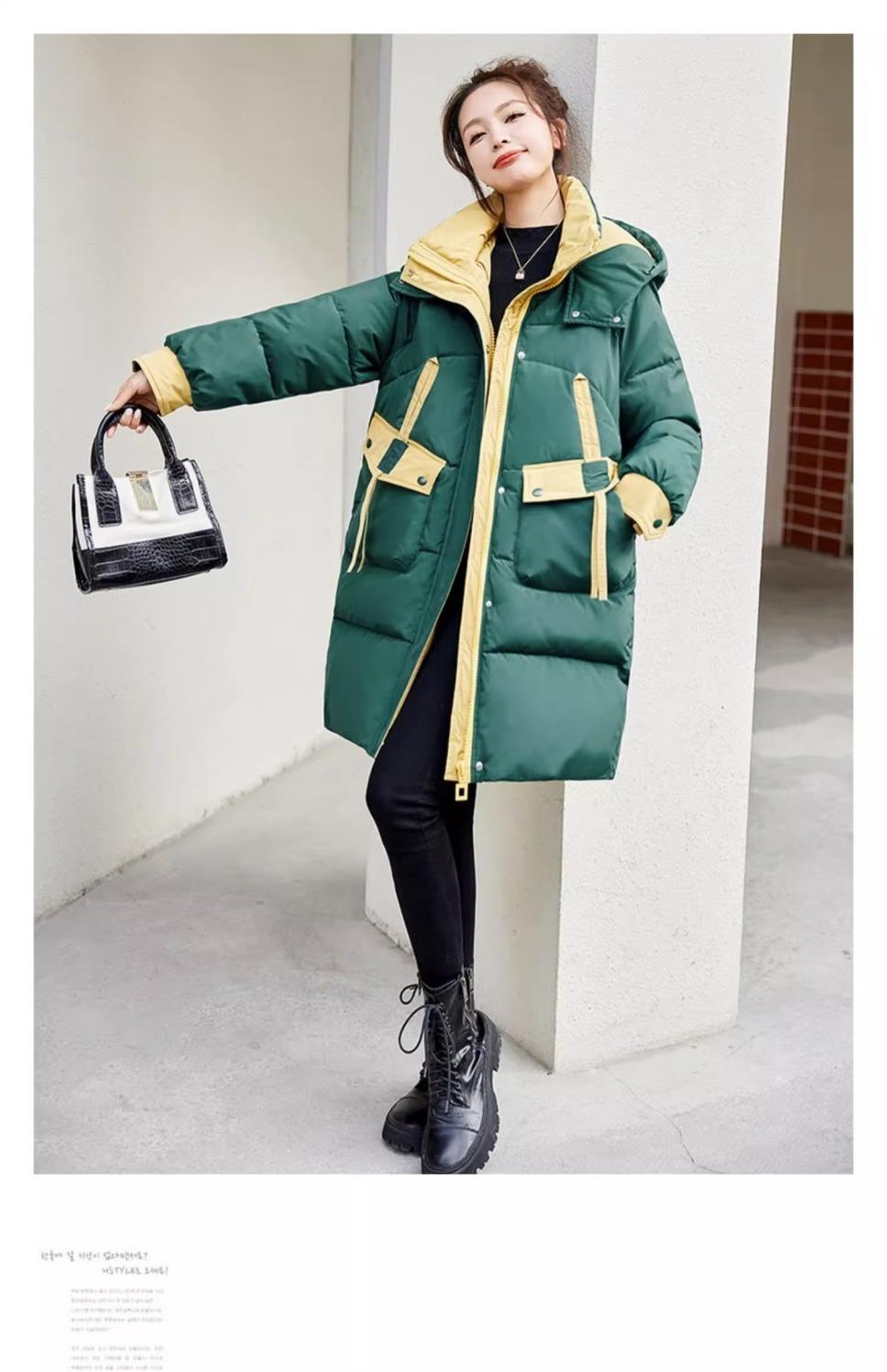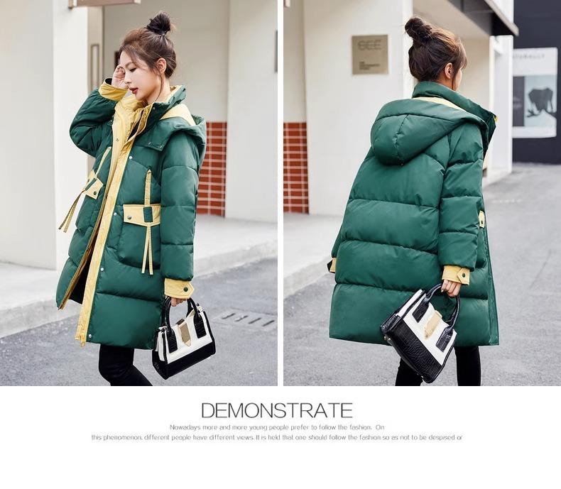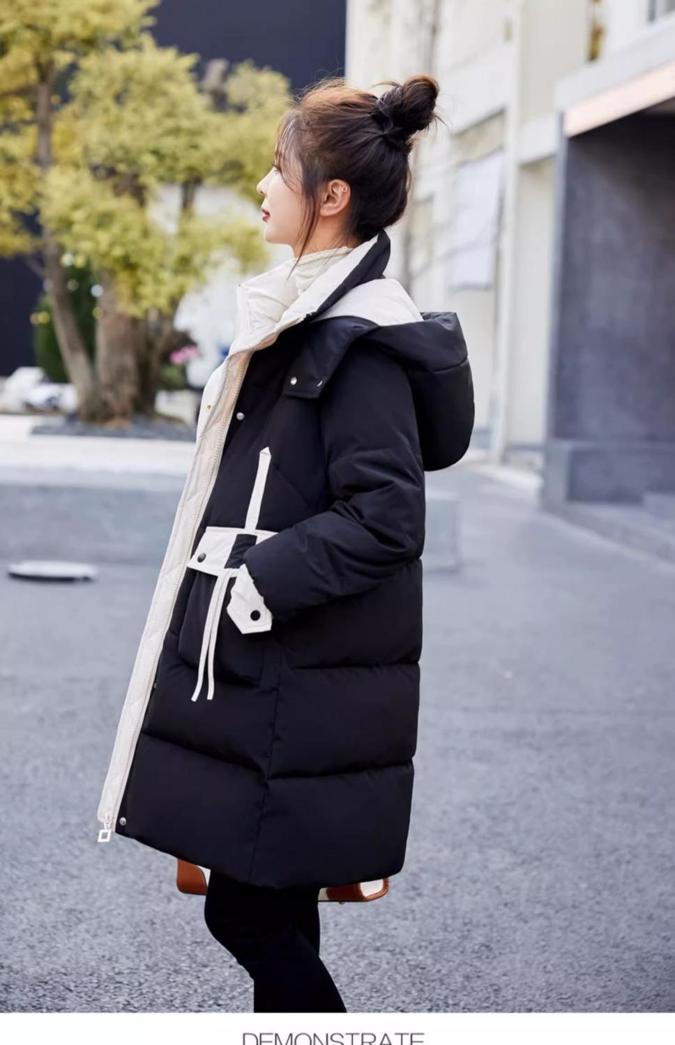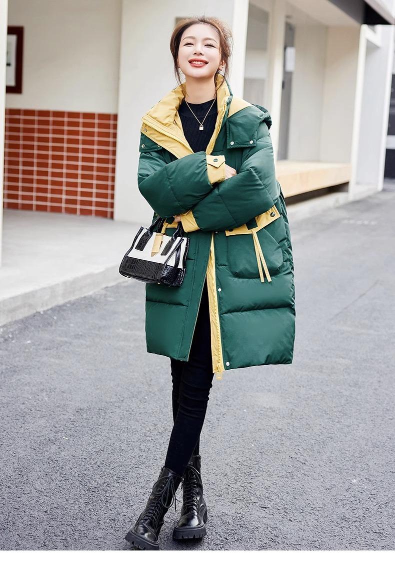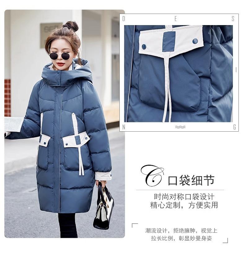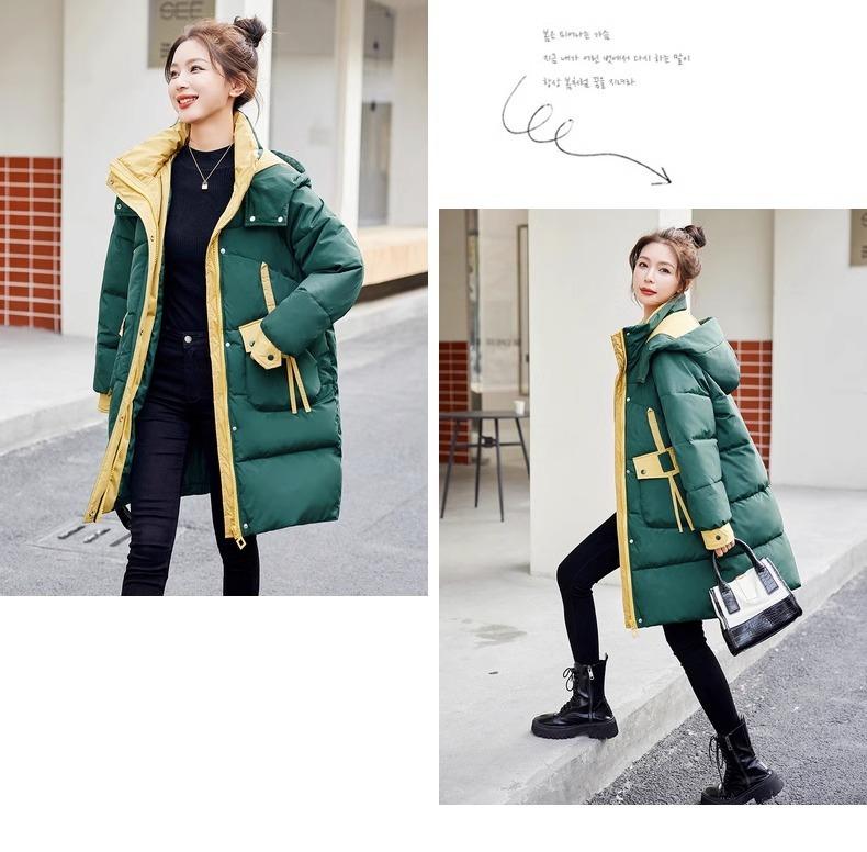 Chaqueta acolchada de algodón con capucha larga para mujer, invierno 2024, nueva chaqueta acolchada de algodón de estilo extranjero a juego con colores, chaqueta acolchada de algodón de estilo coreano, abrigo engrosado