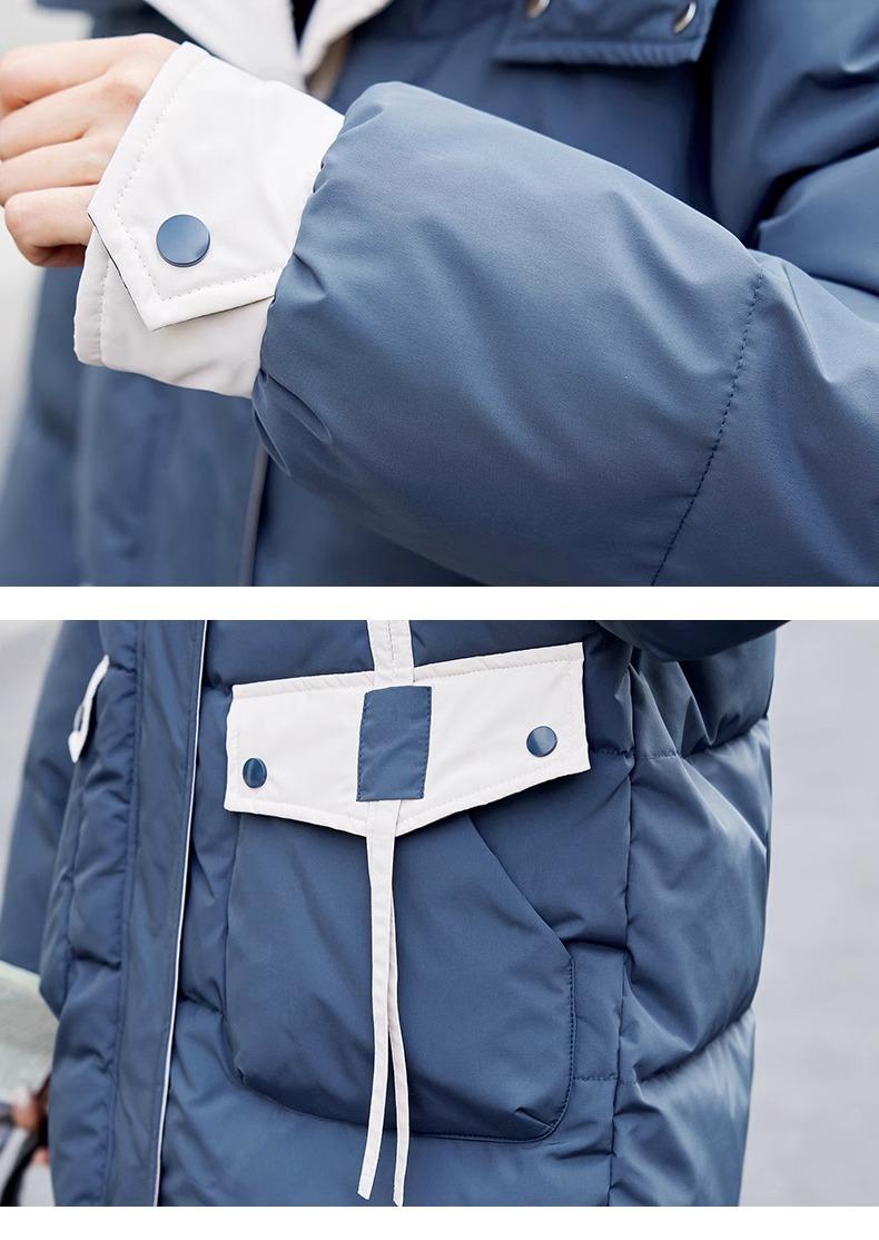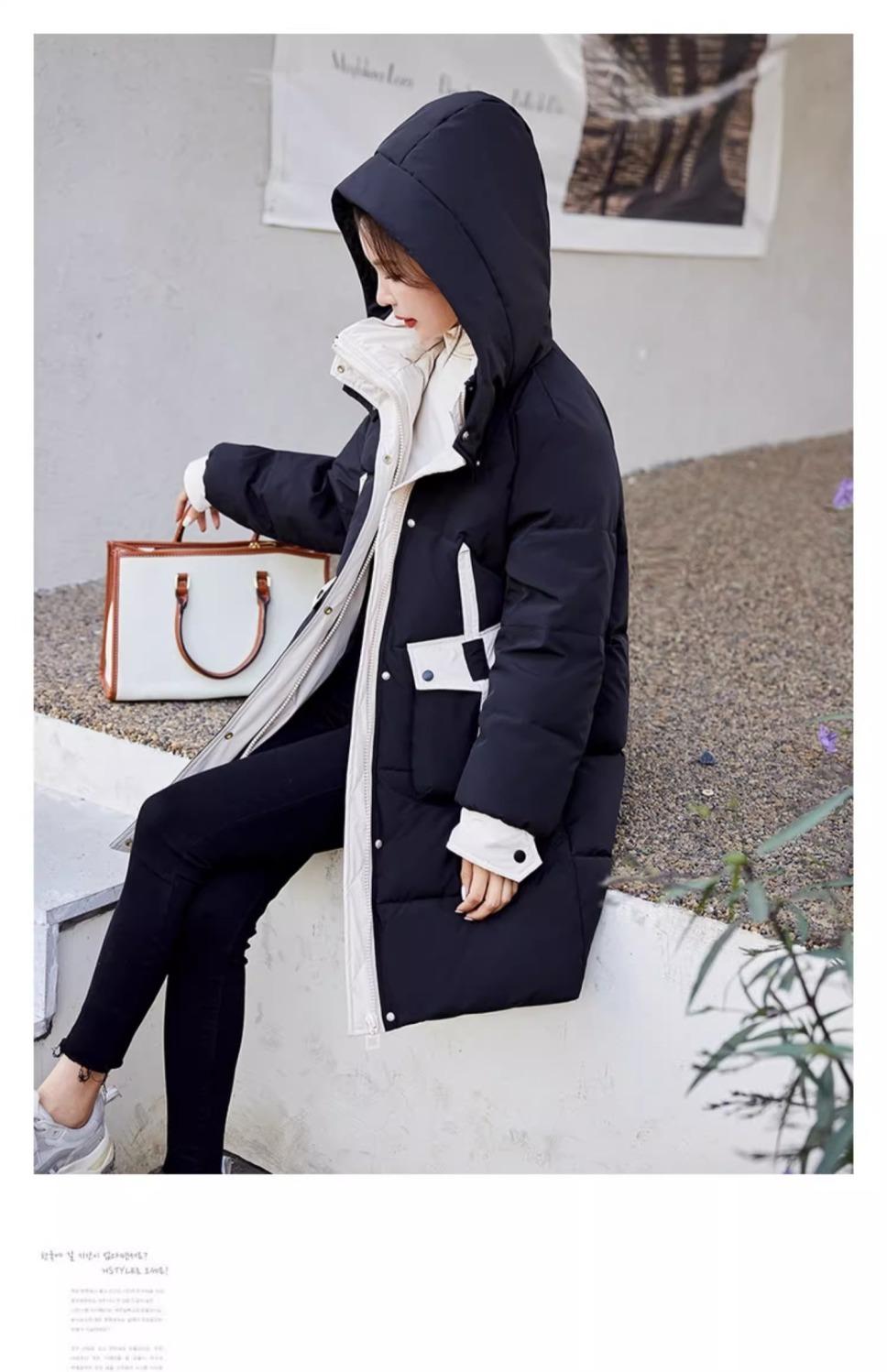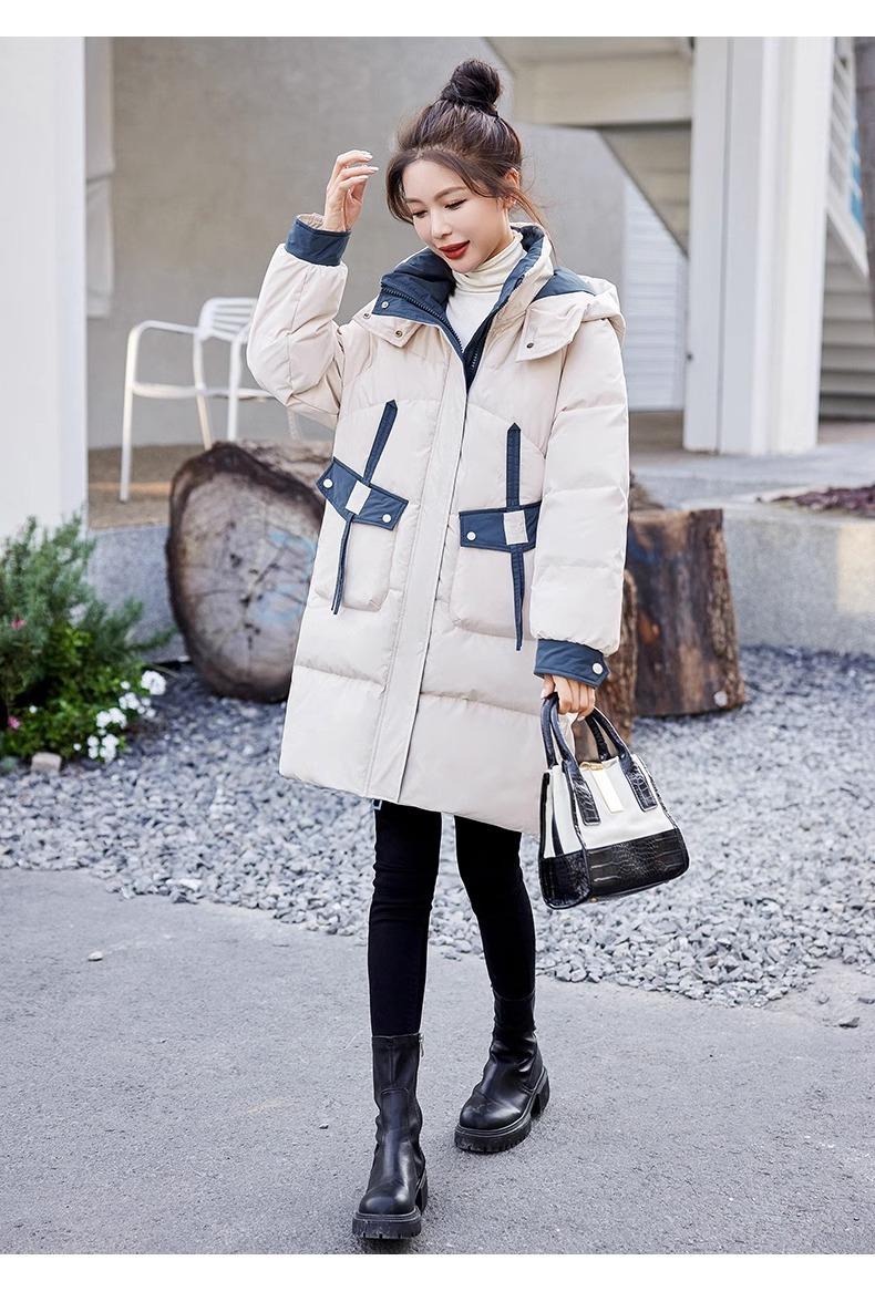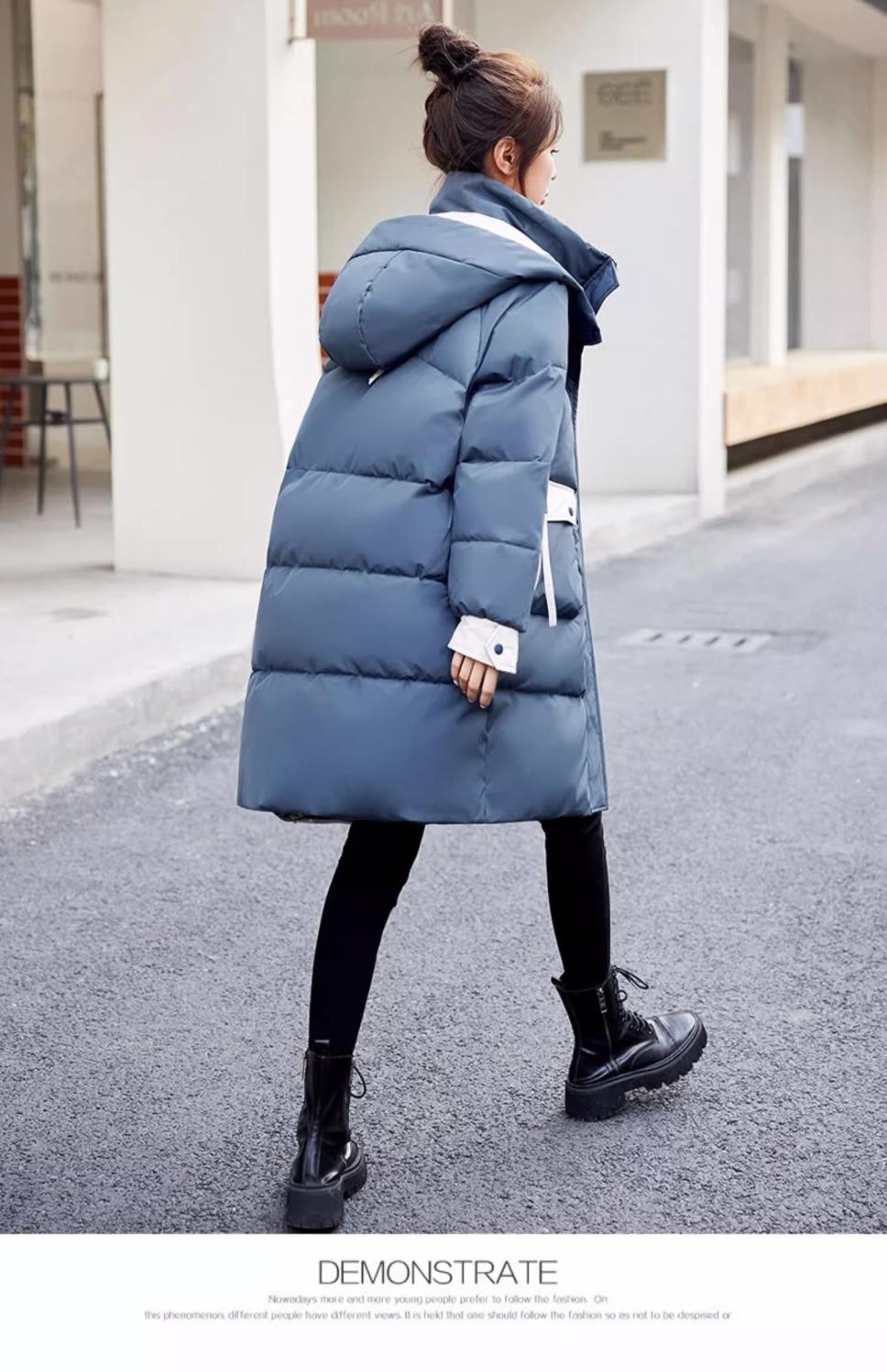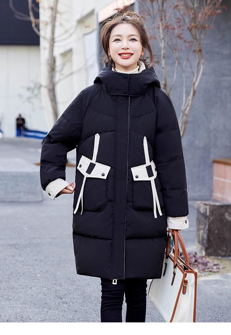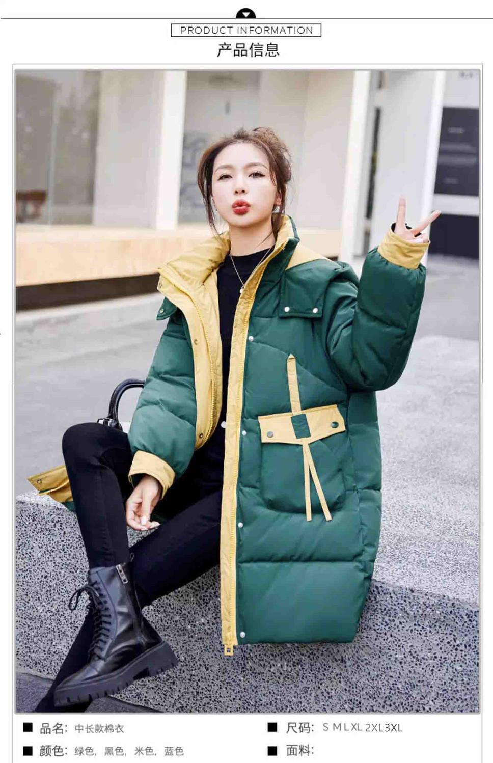 Chaqueta acolchada de algodón con capucha larga para mujer, invierno 2024, nueva chaqueta acolchada de algodón de estilo extranjero a juego con colores, chaqueta acolchada de algodón de estilo coreano, abrigo engrosado