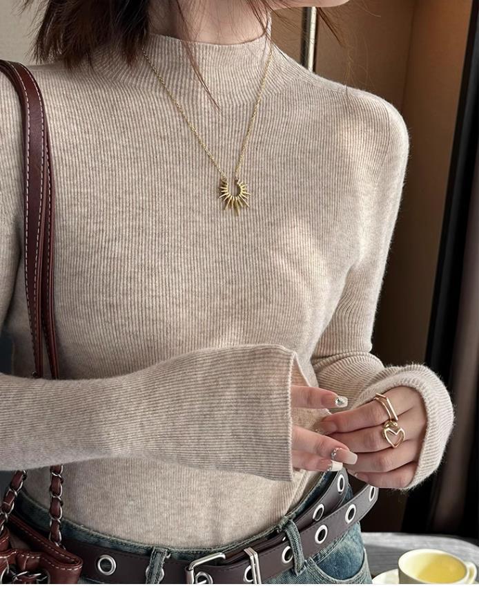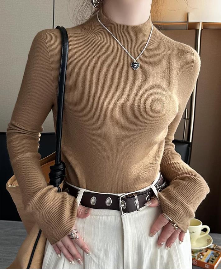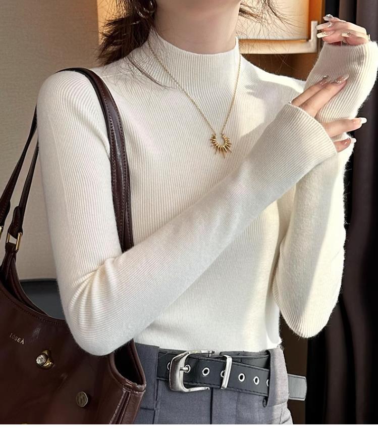 Suéter de cuello medio alto con camisa interior de lana sintética para mujer otoño e invierno de alta gama 2024 nuevo estilo caliente top grueso de invierno