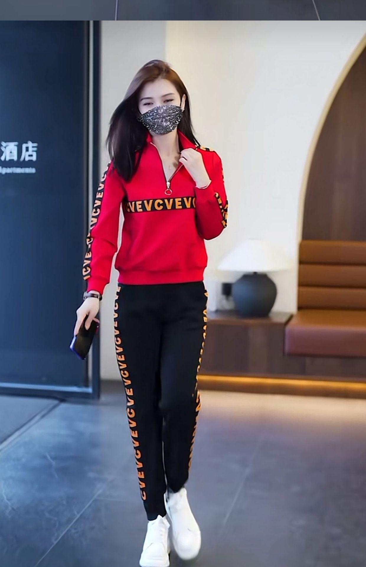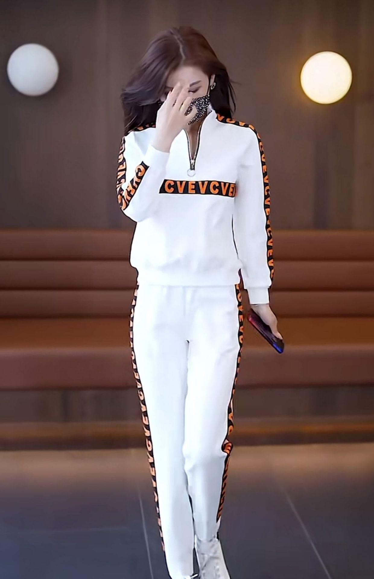 Traje de moda de primavera 2024 para mujer, sudadera con media cremallera a la moda, elegante conjunto deportivo adelgazante y reductor de edad de dos piezas