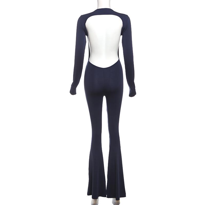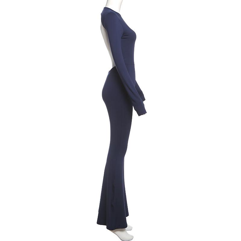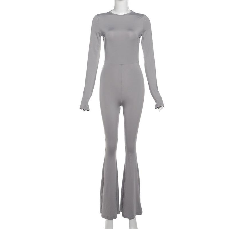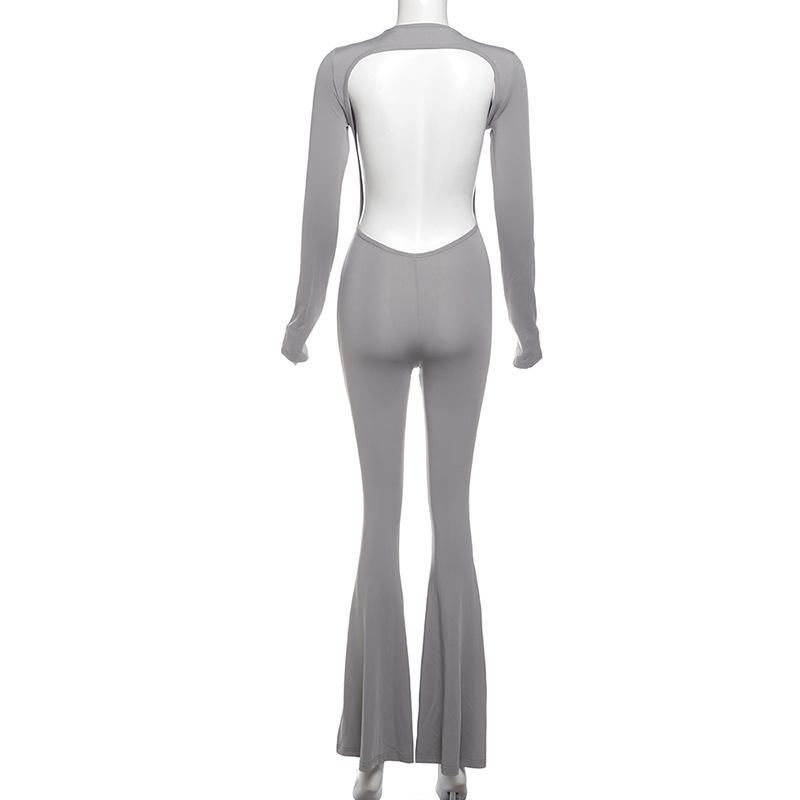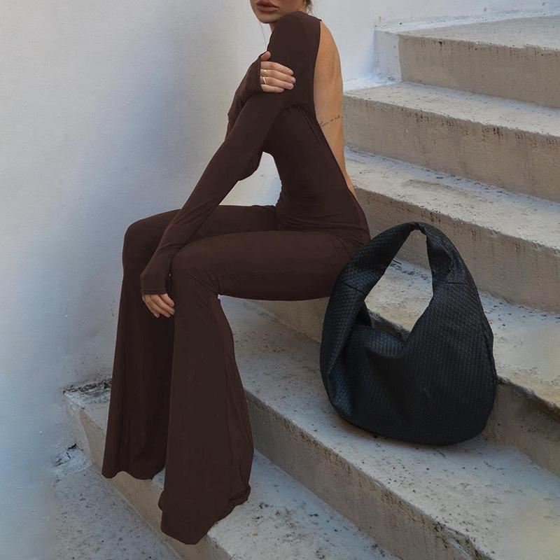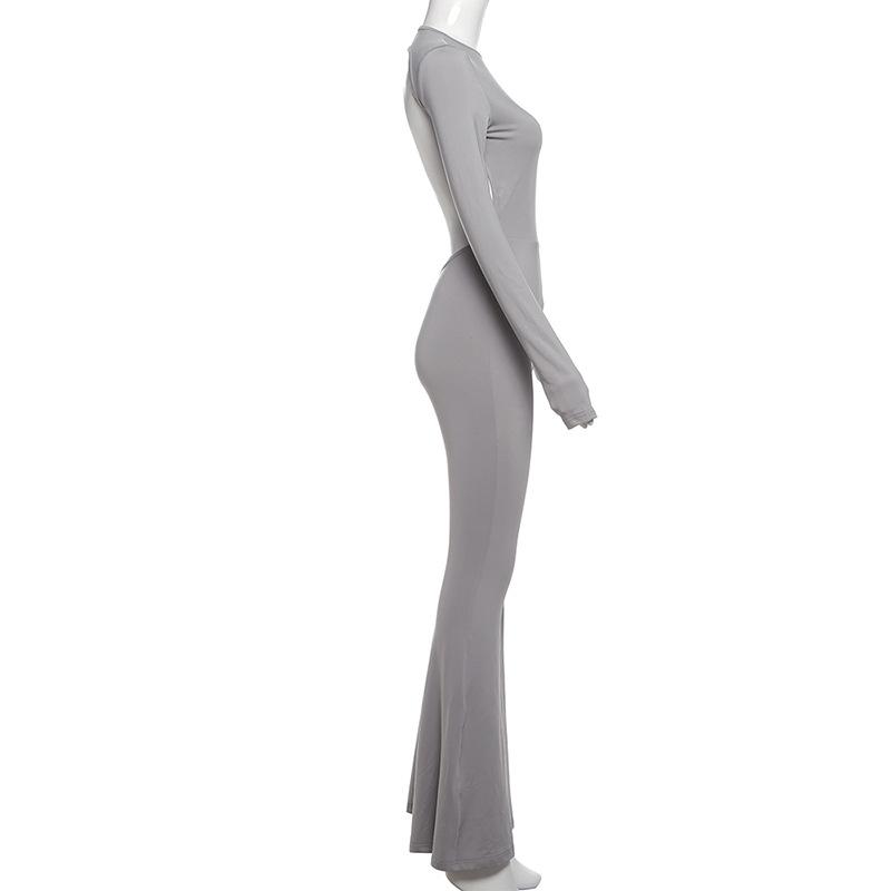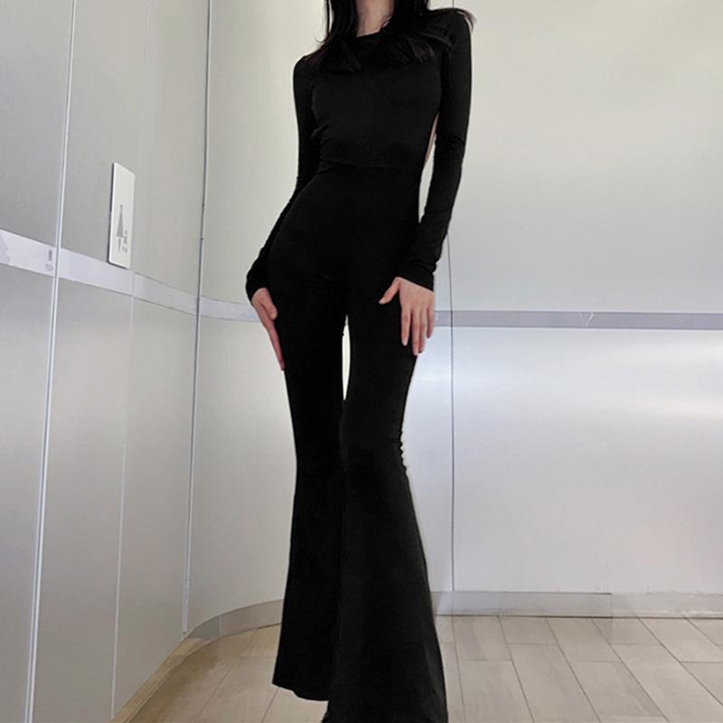 Mono informal de pierna recta ajustado sin espalda de manga larga para mujer, tendencia de moda de otoño 2024, estilo europeo y americano