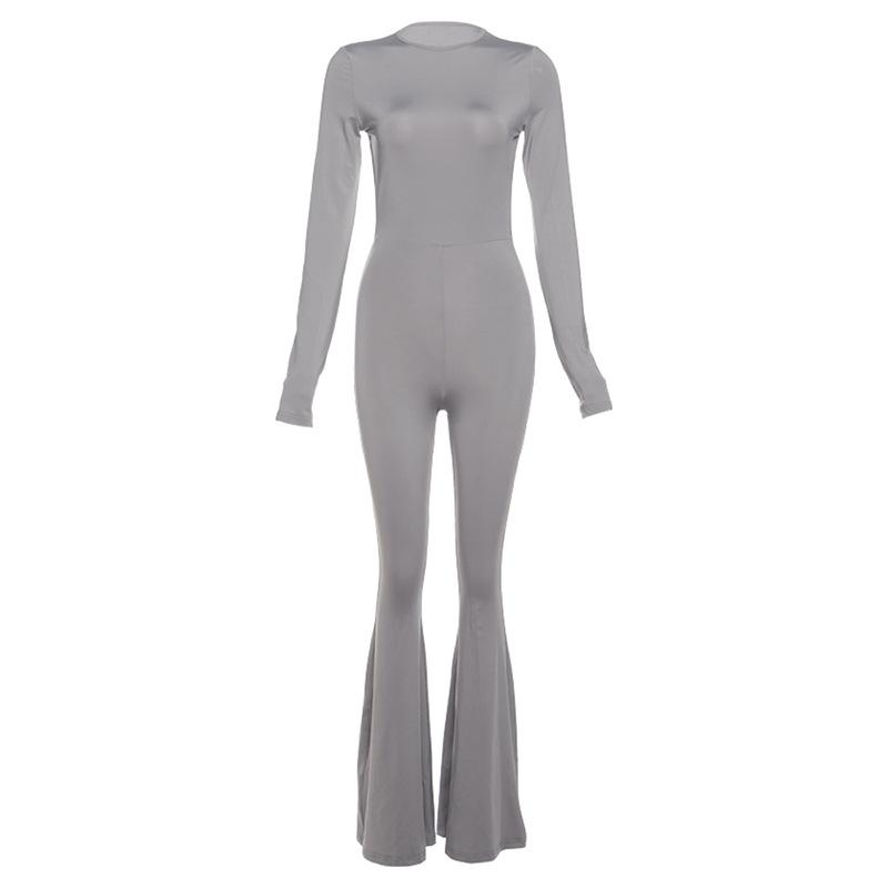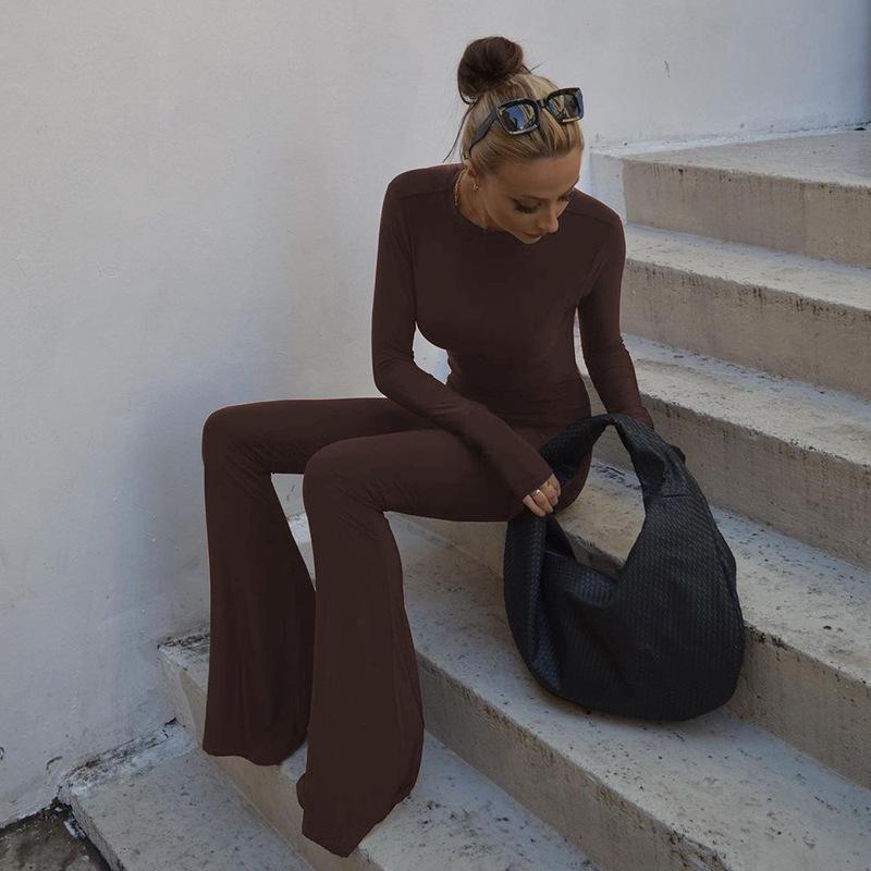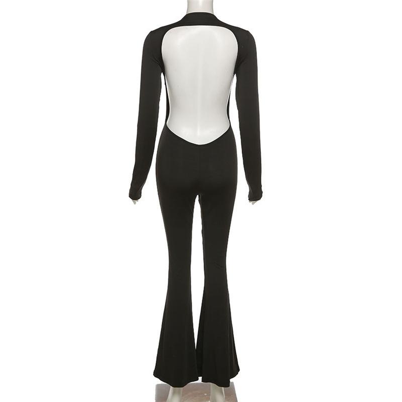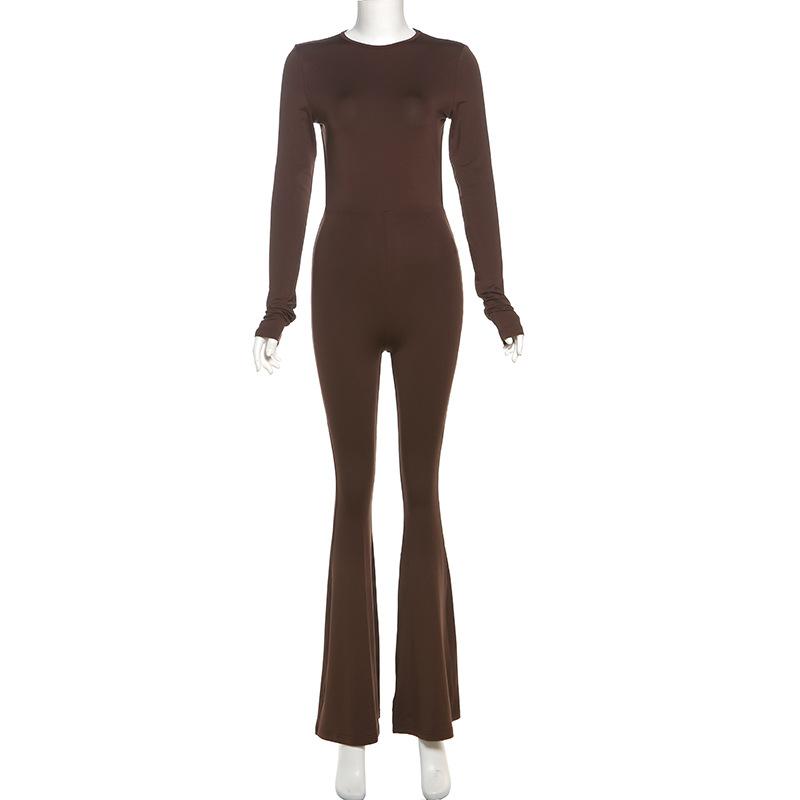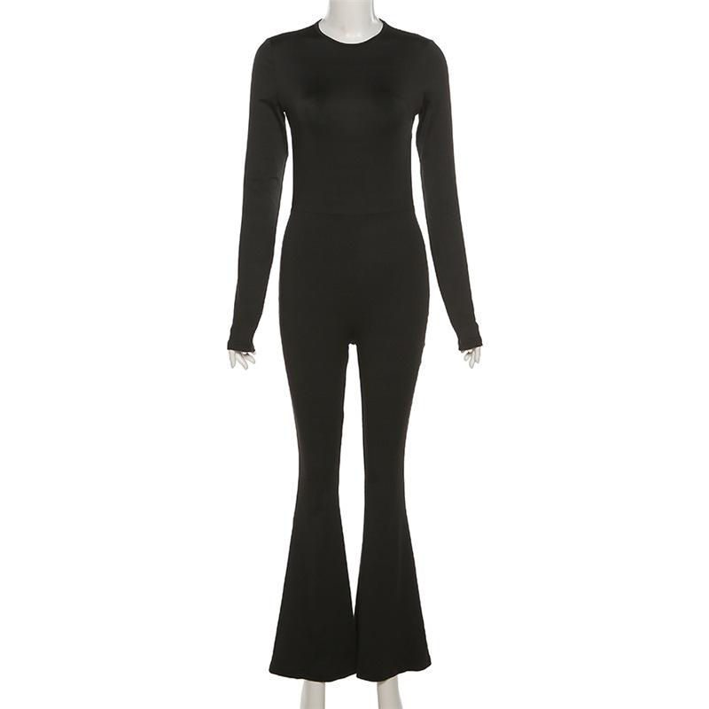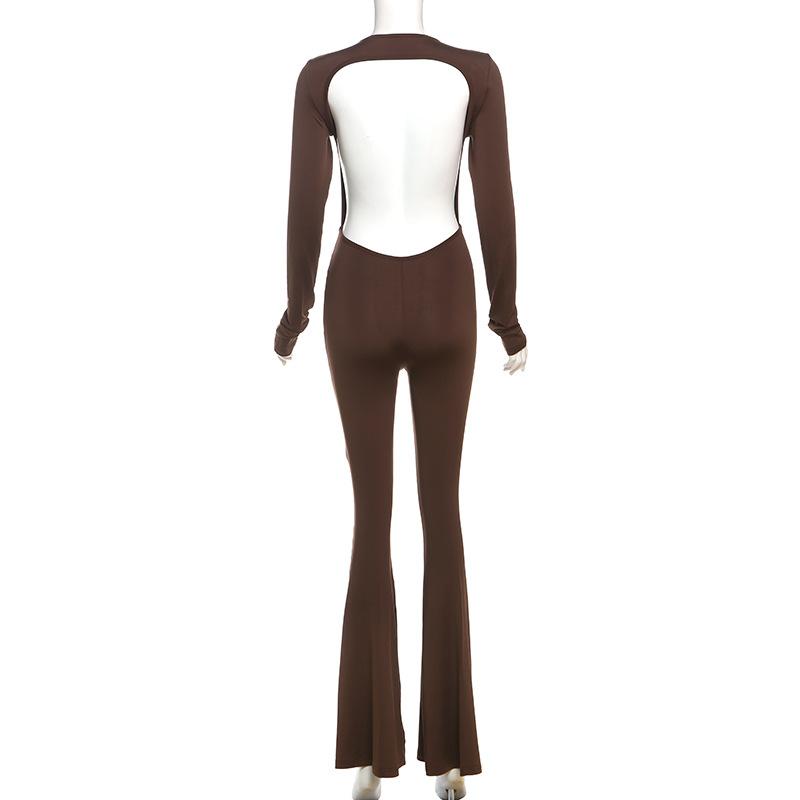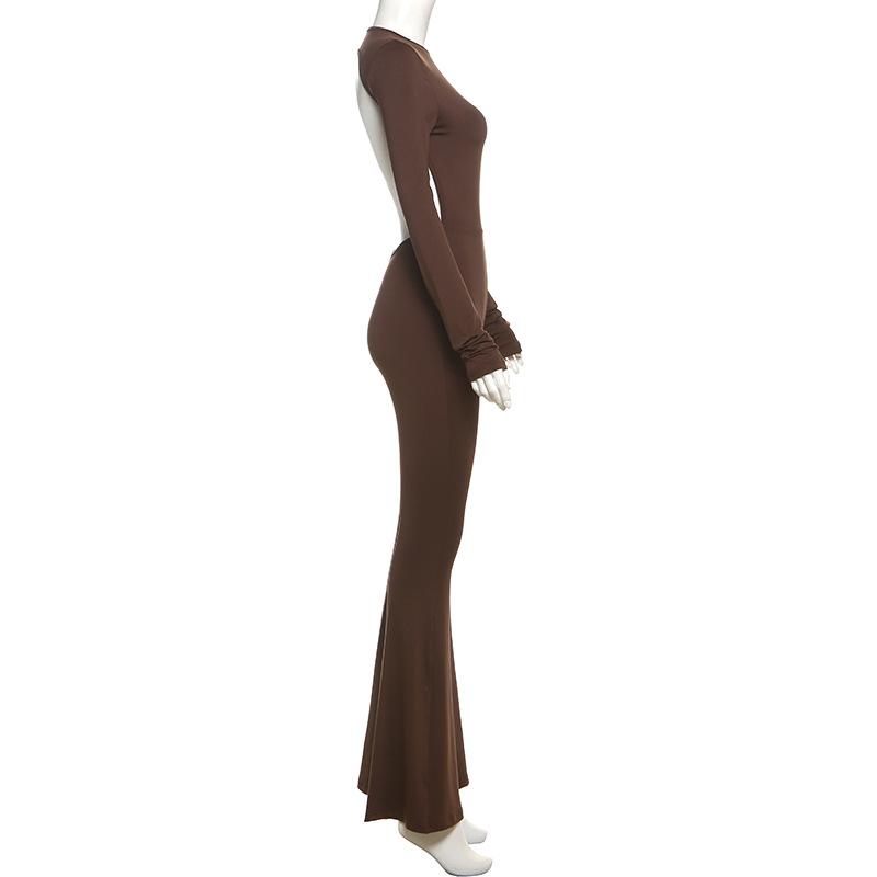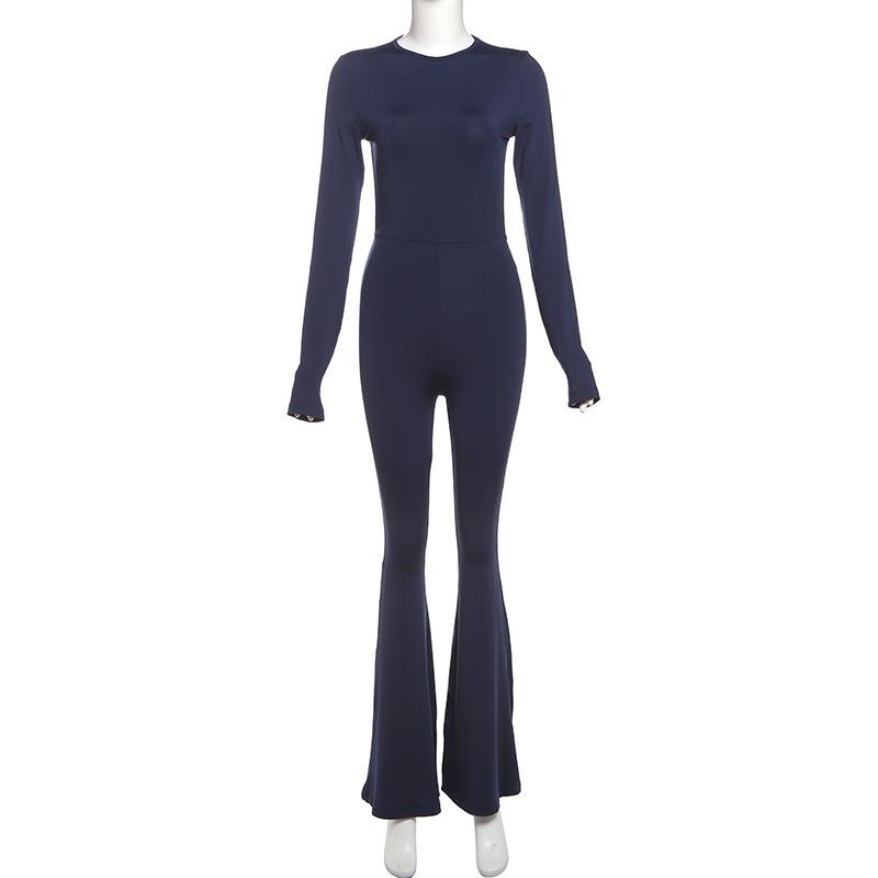 Mono informal de pierna recta ajustado sin espalda de manga larga para mujer, tendencia de moda de otoño 2024, estilo europeo y americano