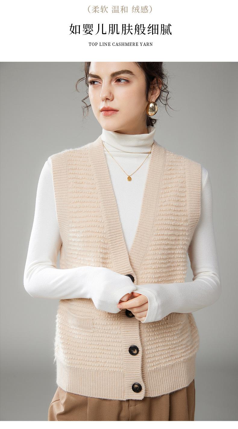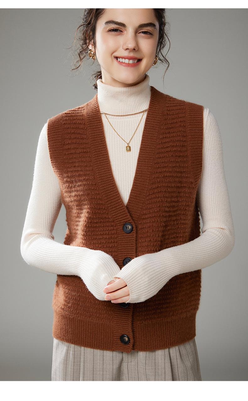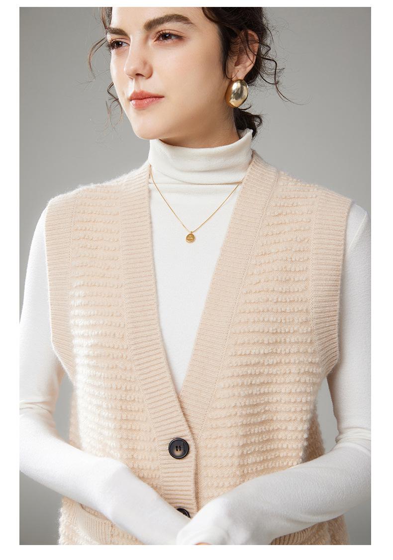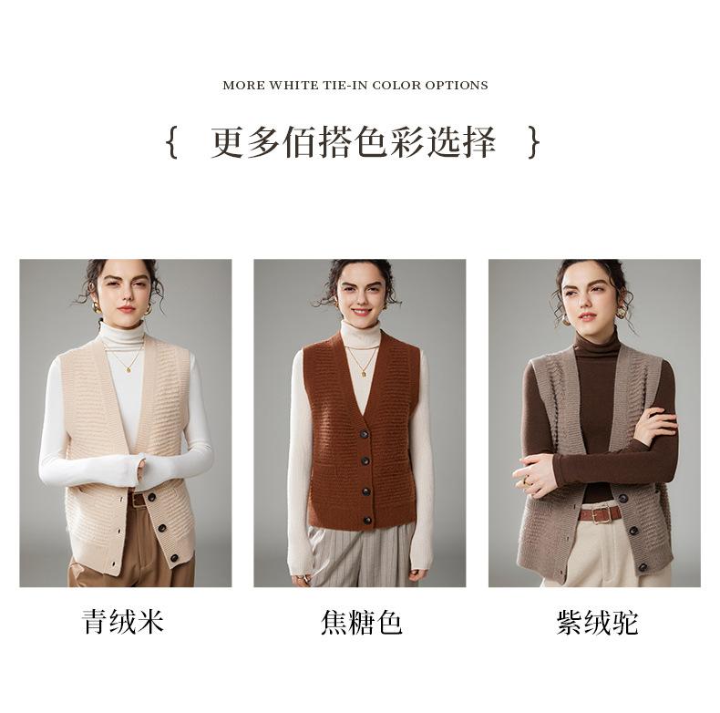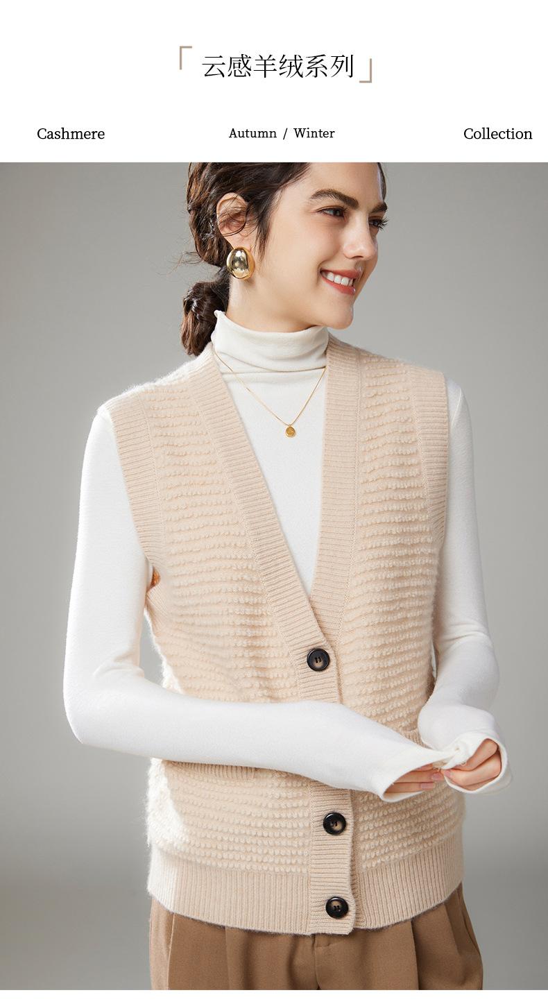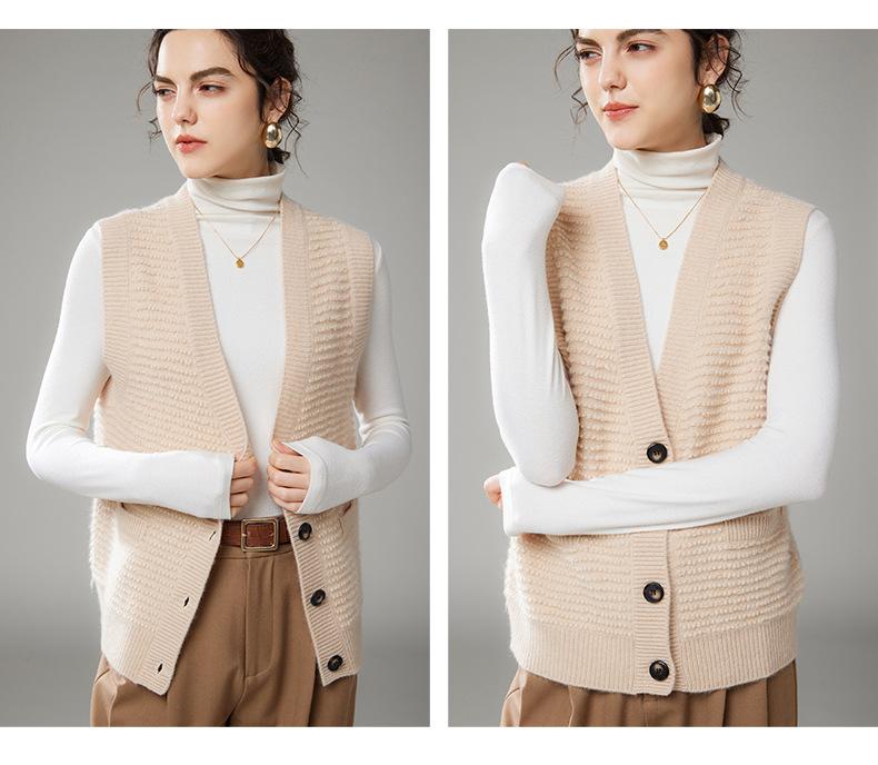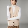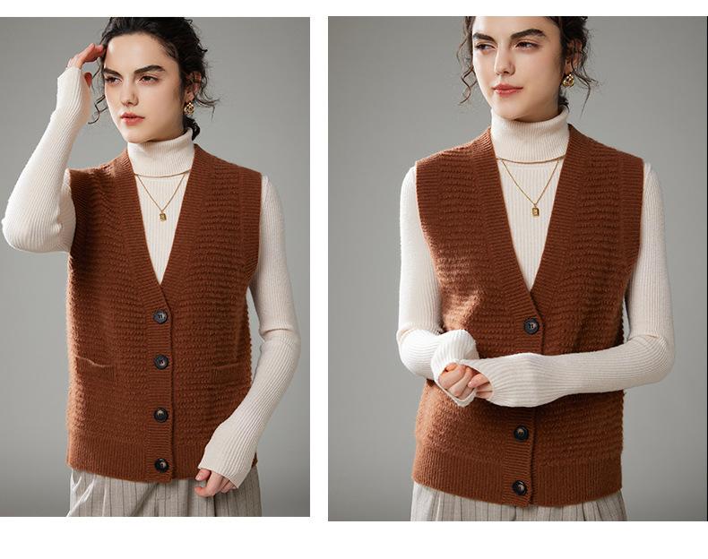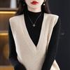 Chaleco de cachemira para mujer, cárdigan de punto con cuello en V, estilo informal, sin mangas, de un solo pecho, cálido, para otoño e invierno.