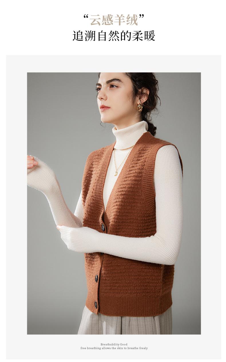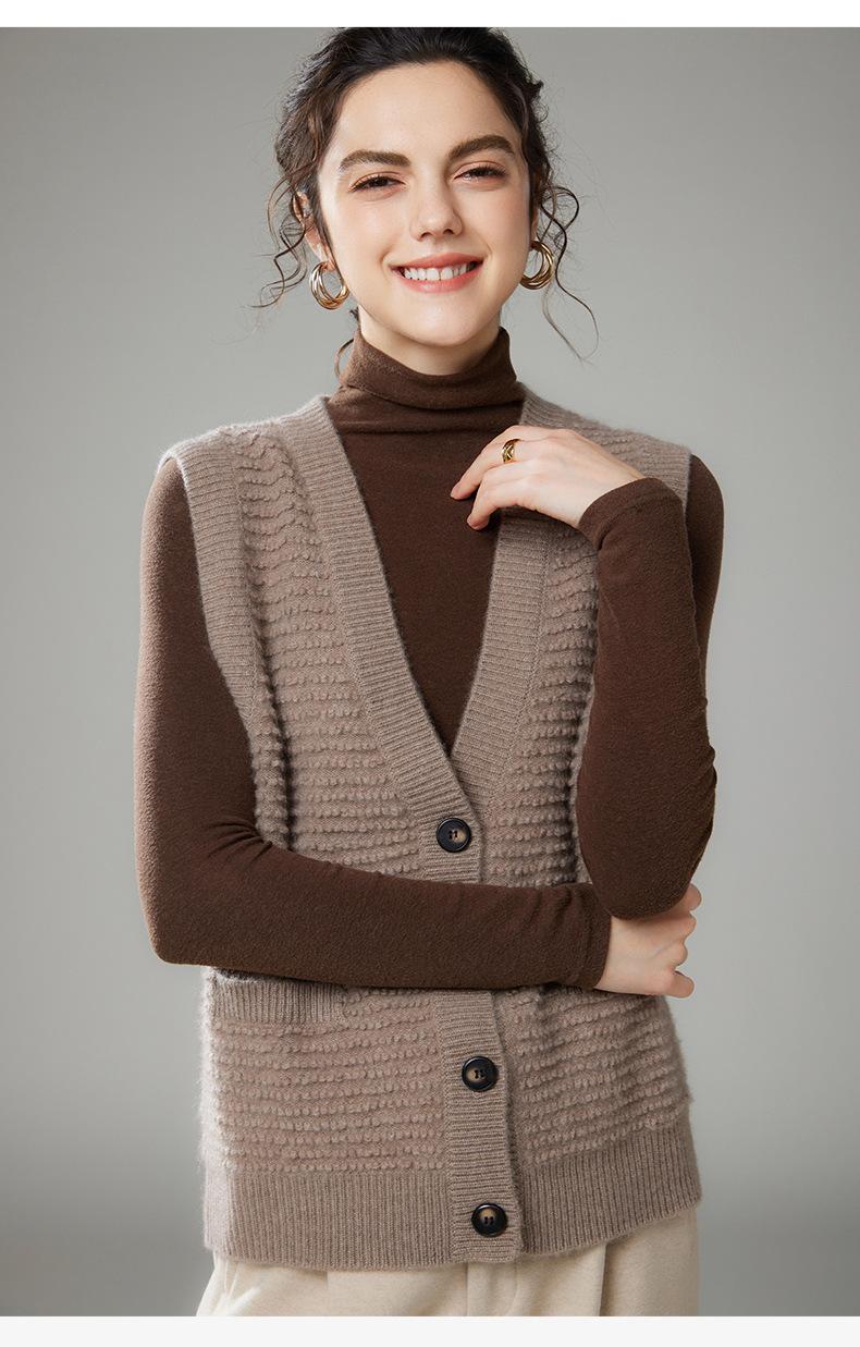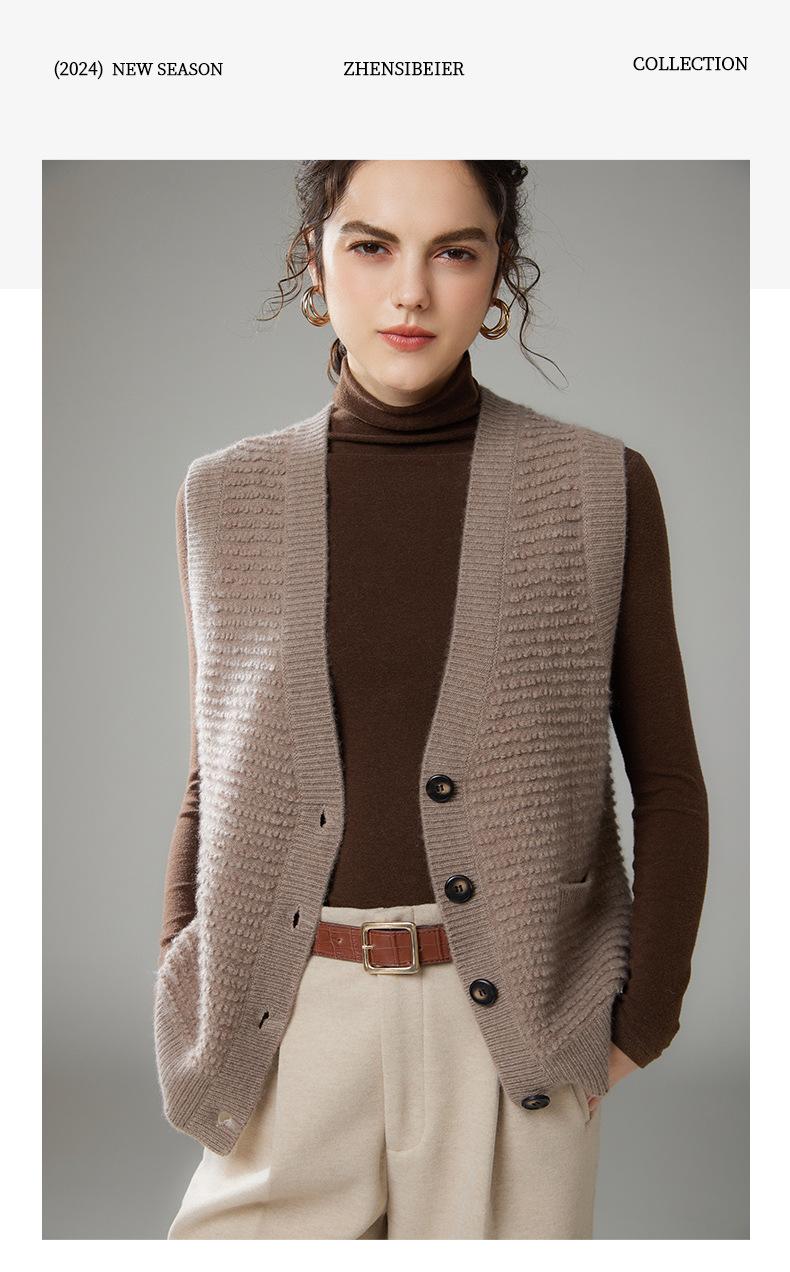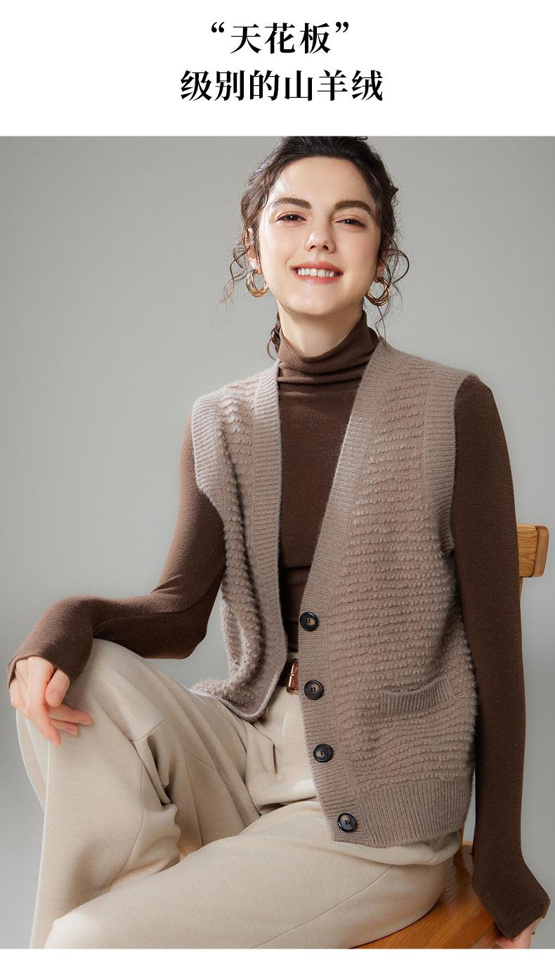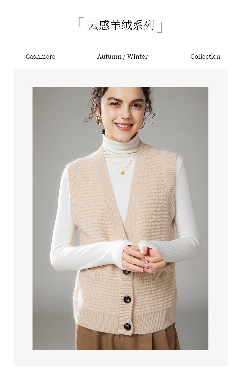 Chaleco de cachemira para mujer, cárdigan de punto con cuello en V, estilo informal, sin mangas, de un solo pecho, cálido, para otoño e invierno.