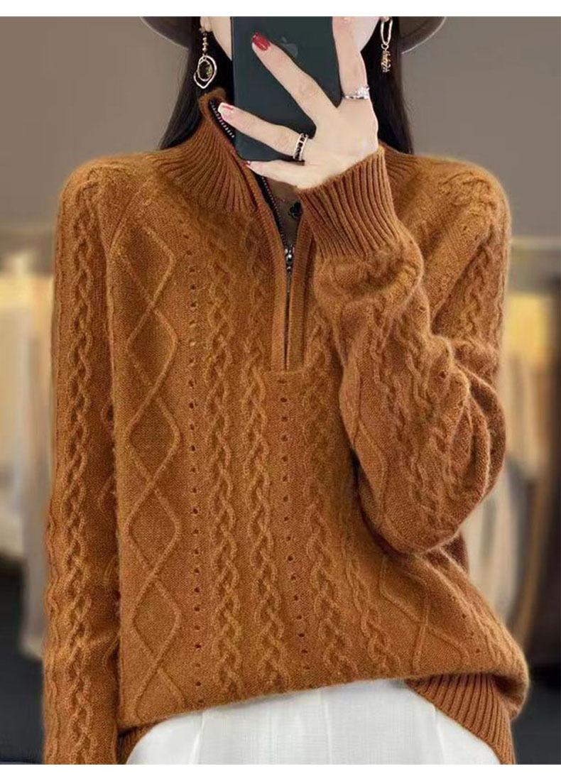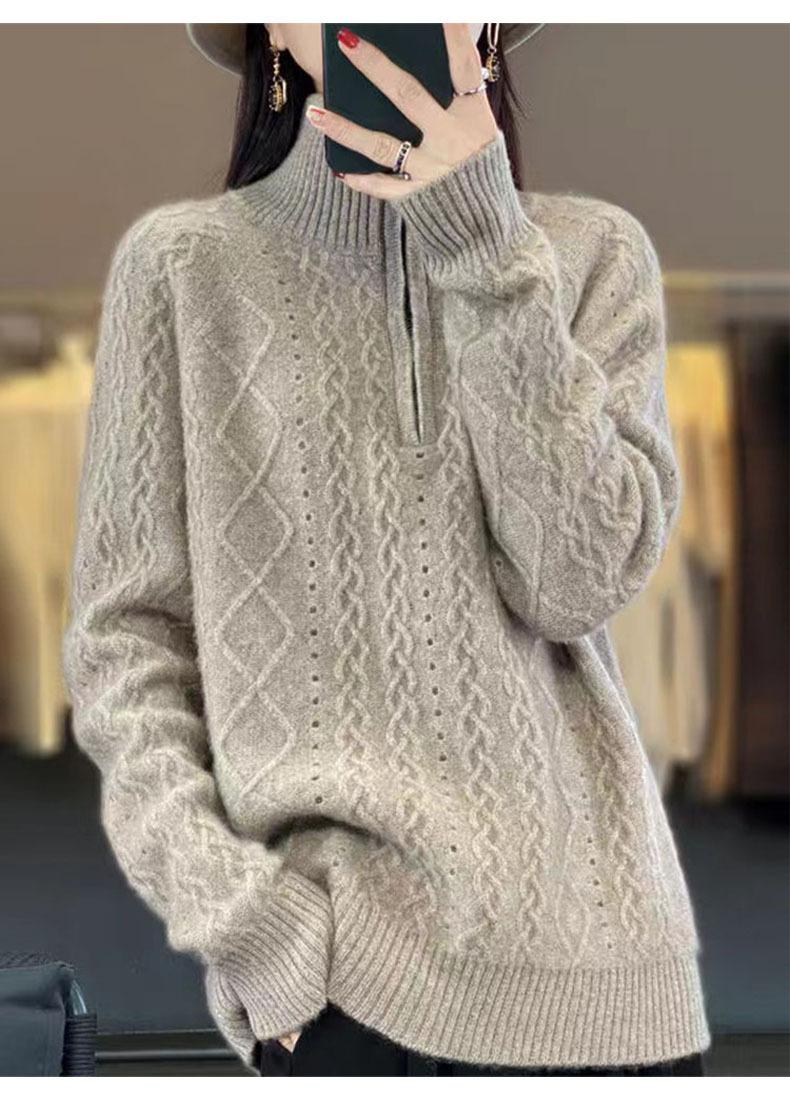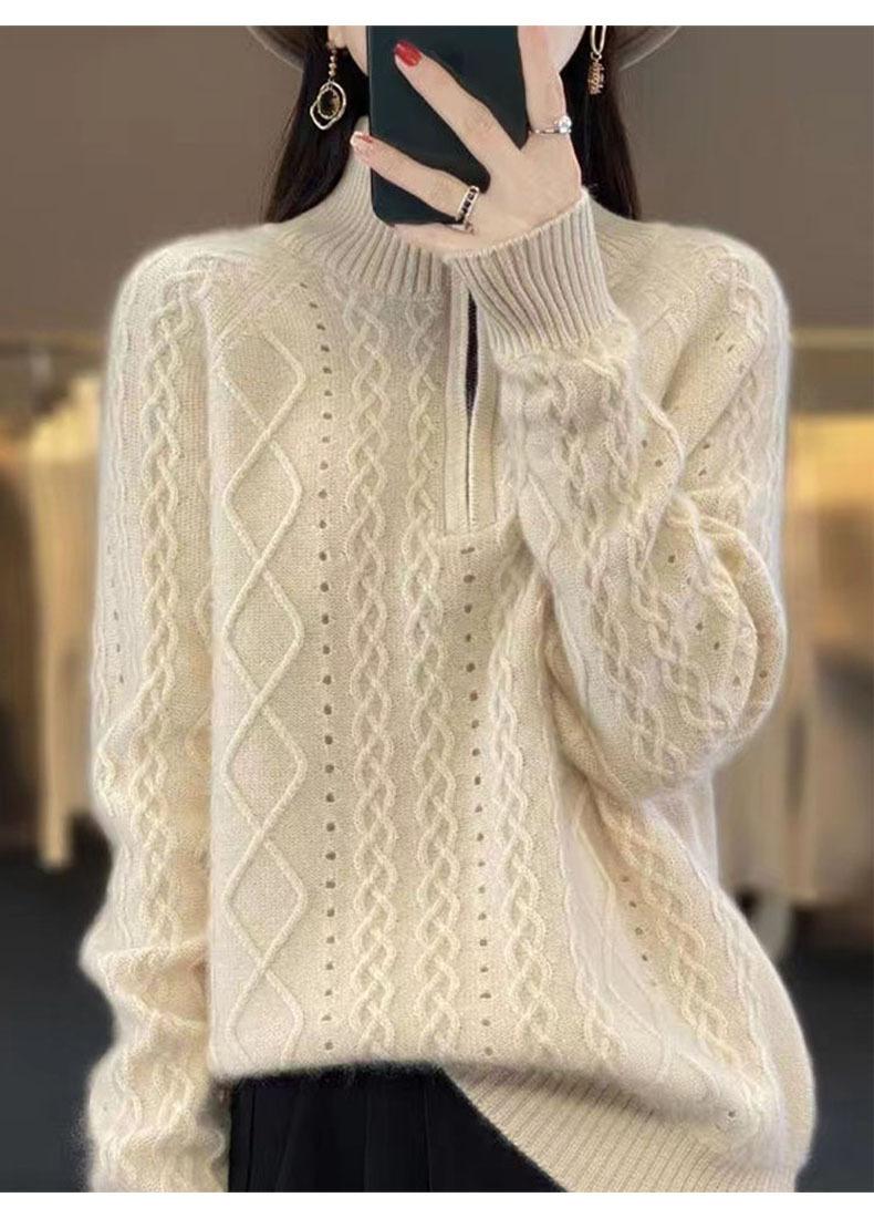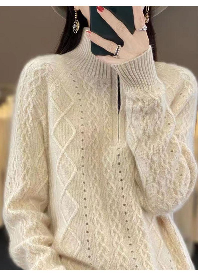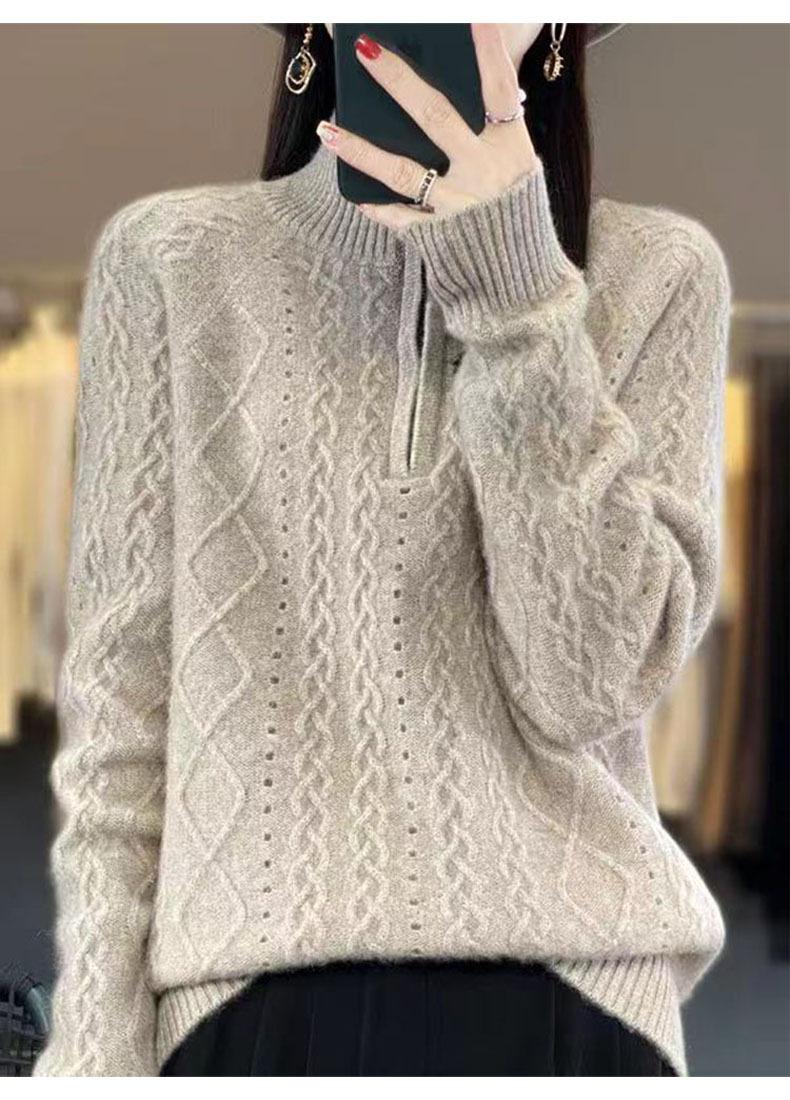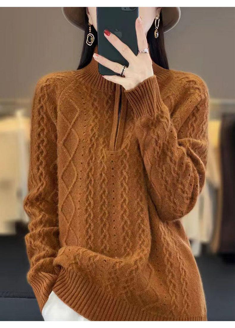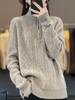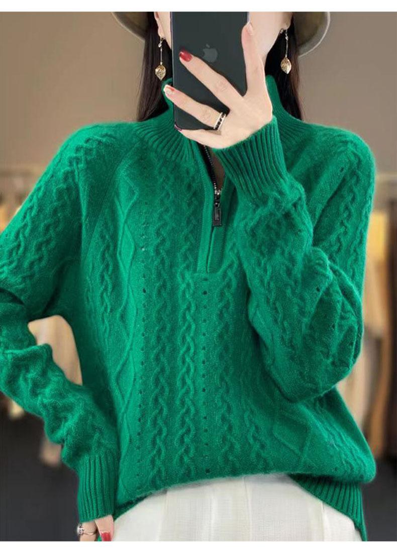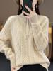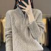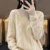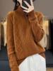 Suéter de lana trenzada de color liso para mujer, nuevo jersey de otoño e invierno con cuello medio alto, camisa de punto de cachemira gruesa y suelta