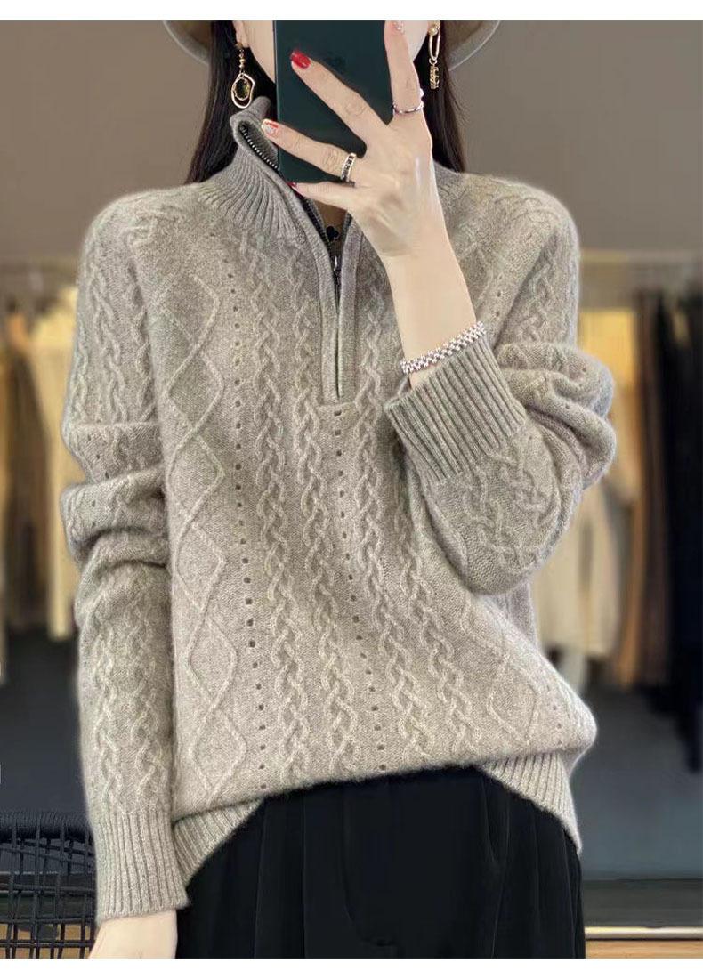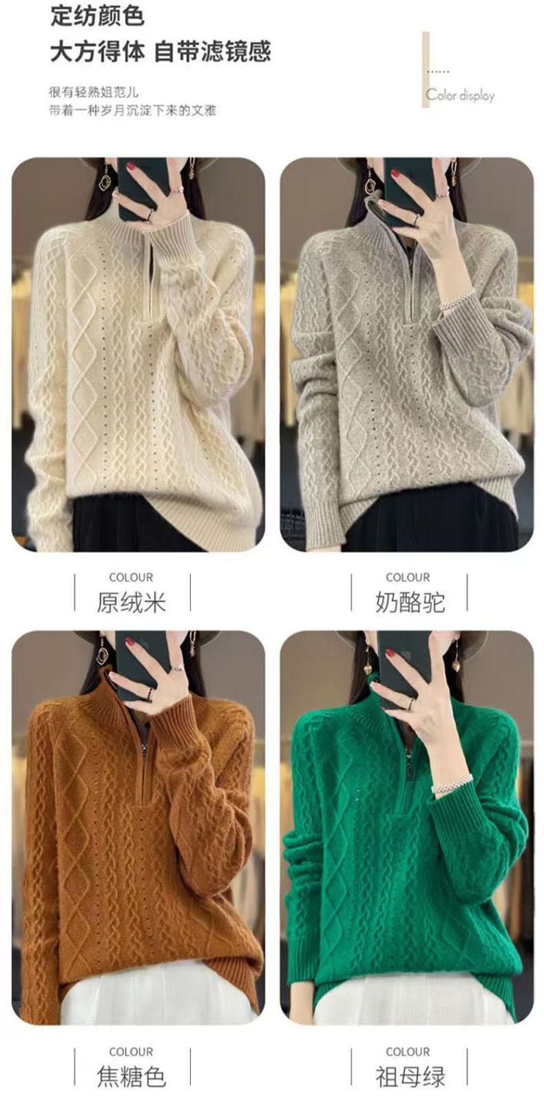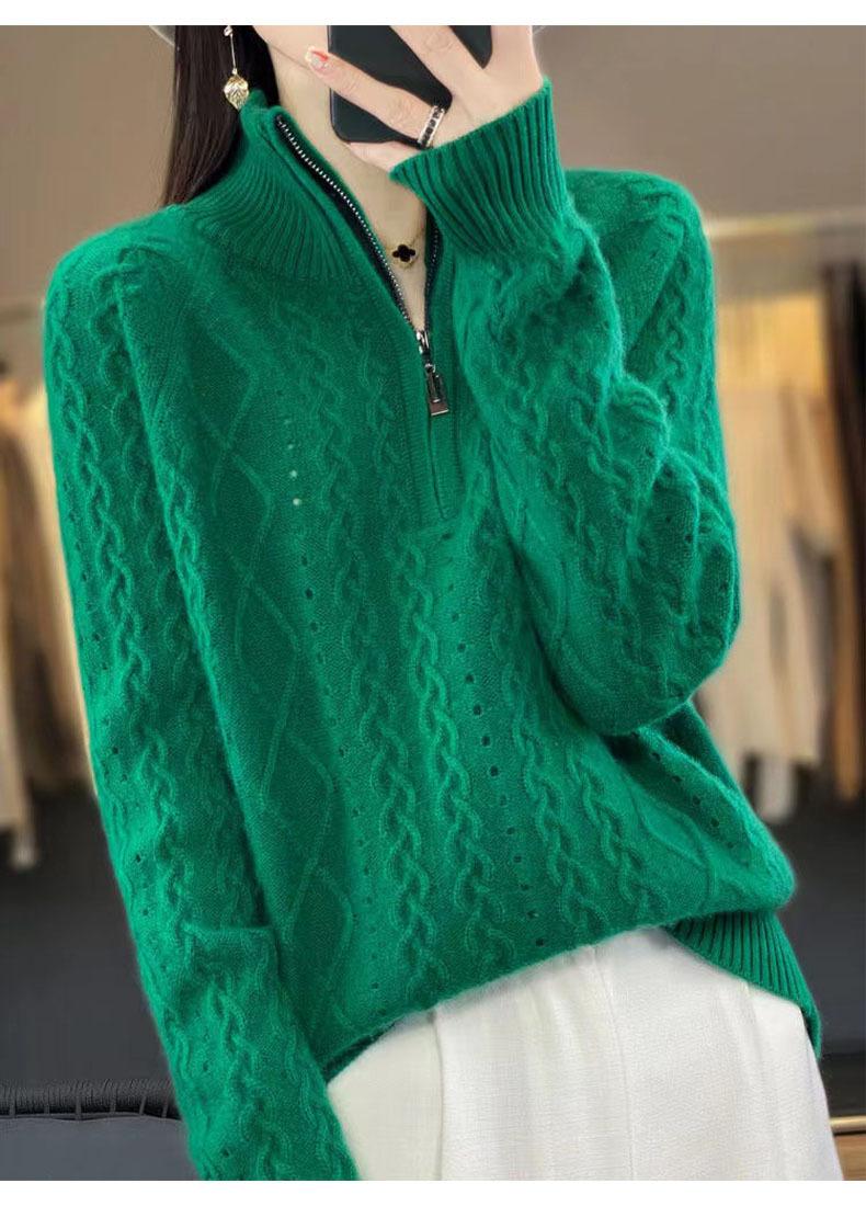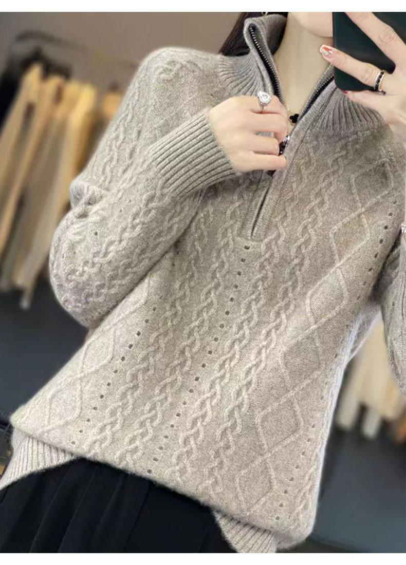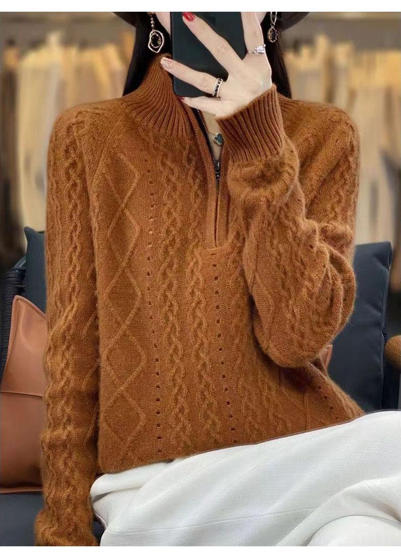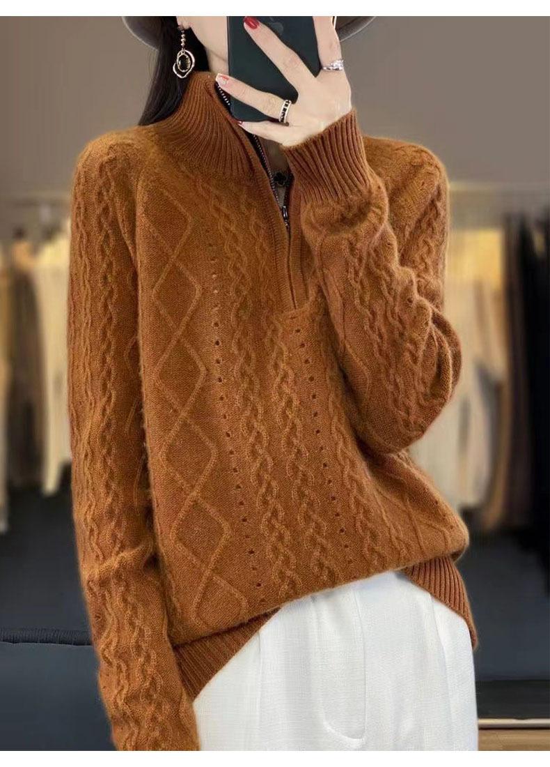 Suéter de lana trenzada de color liso para mujer, nuevo jersey de otoño e invierno con cuello medio alto, camisa de punto de cachemira gruesa y suelta