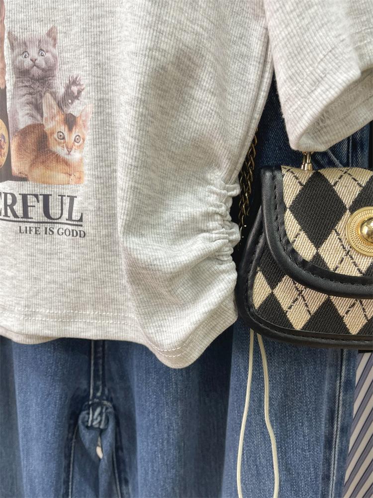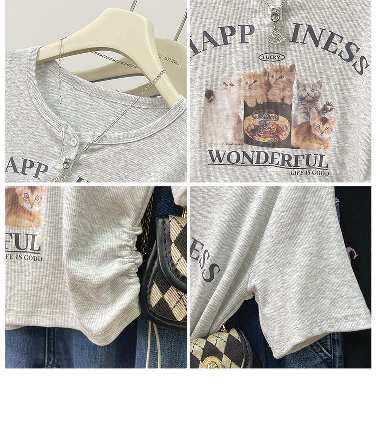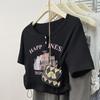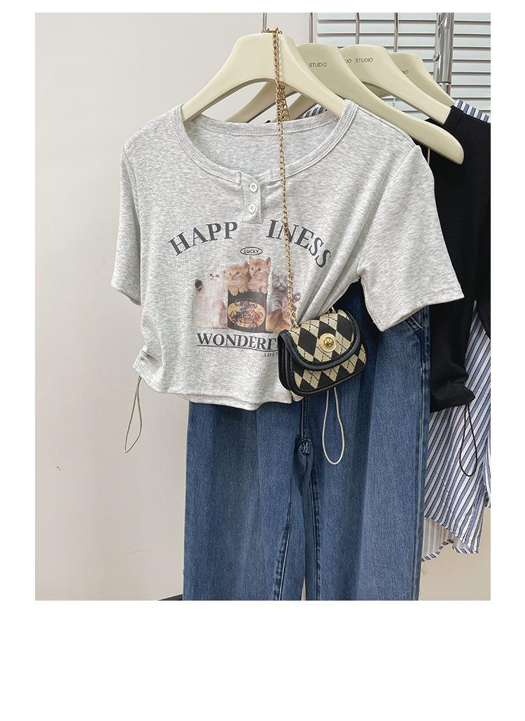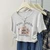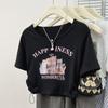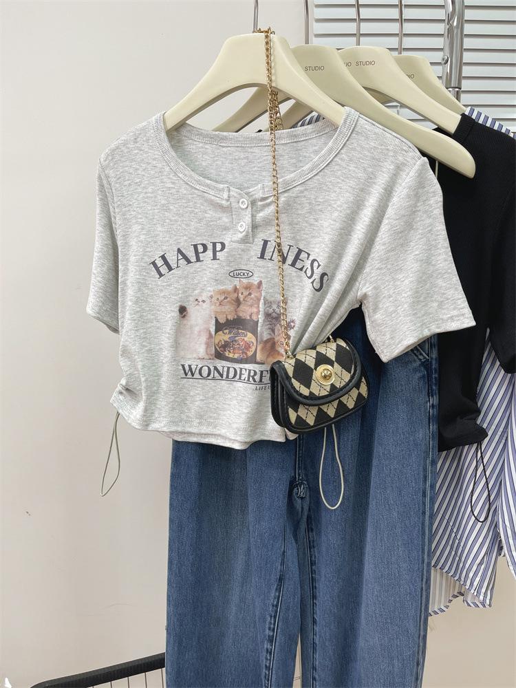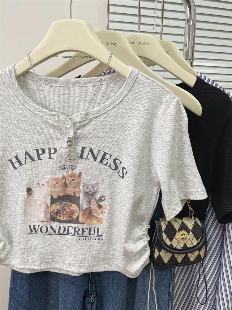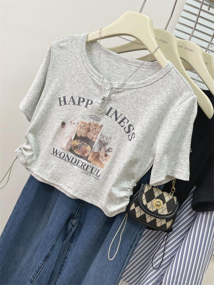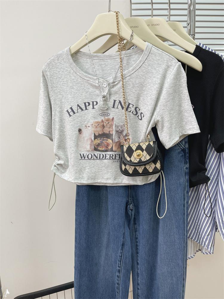Camiseta de manga corta con hombros descubiertos para mujer, diseño de verano 2024, estilo nicho americano, con estampado dulce y sexy, corte ajustado y corto.