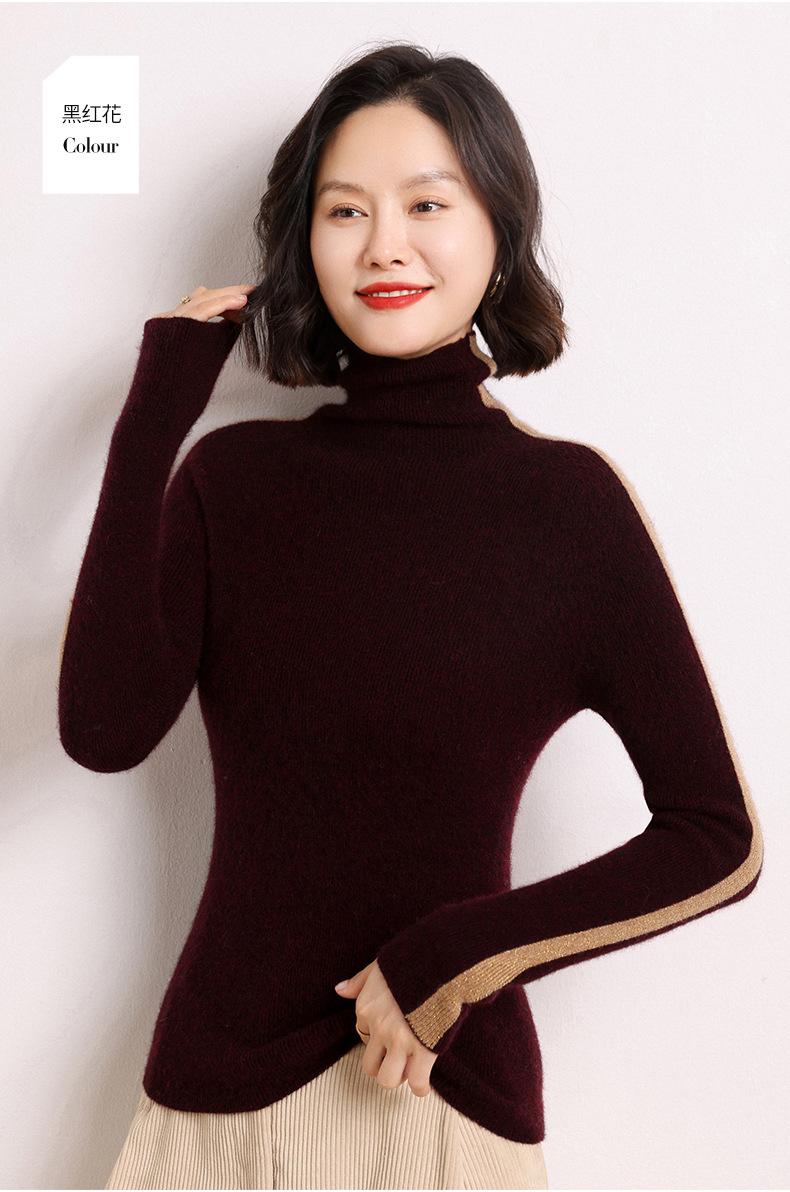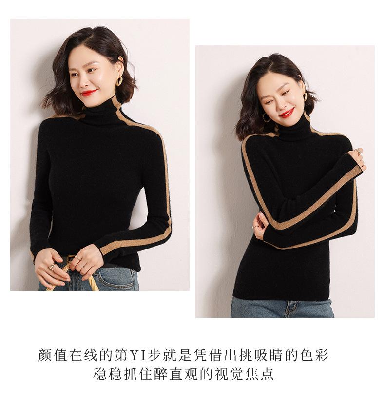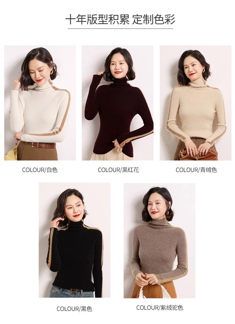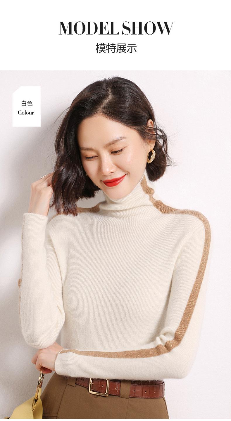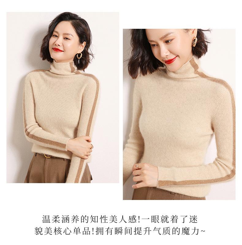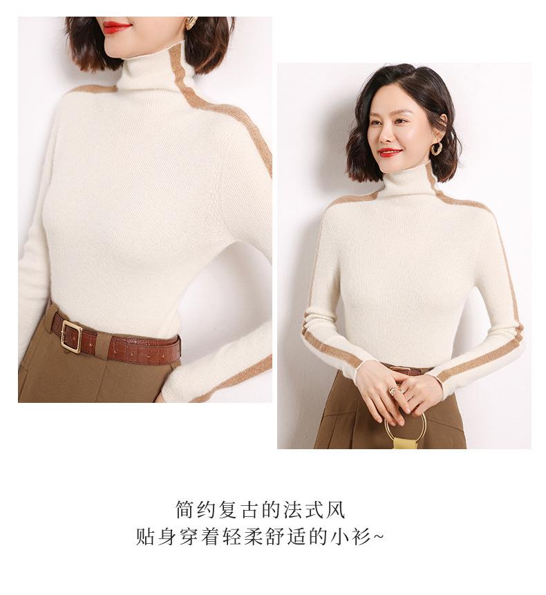 Otoño e invierno nuevo cuello alto de pelo prenda de primera línea combinación de colores mangas base de cachemira ajustado adelgazante commuter suéter tejido