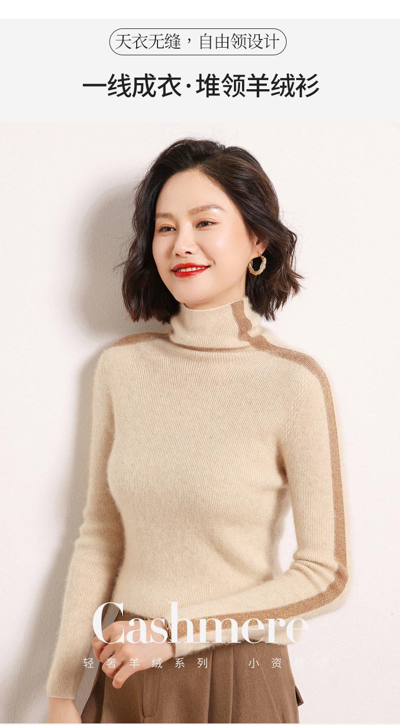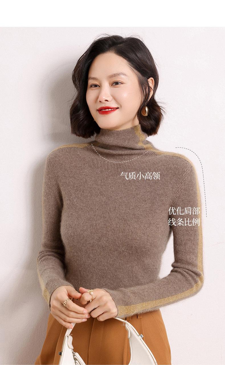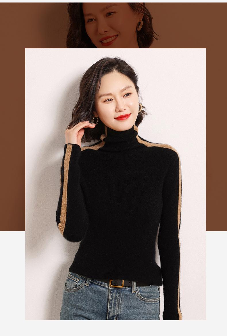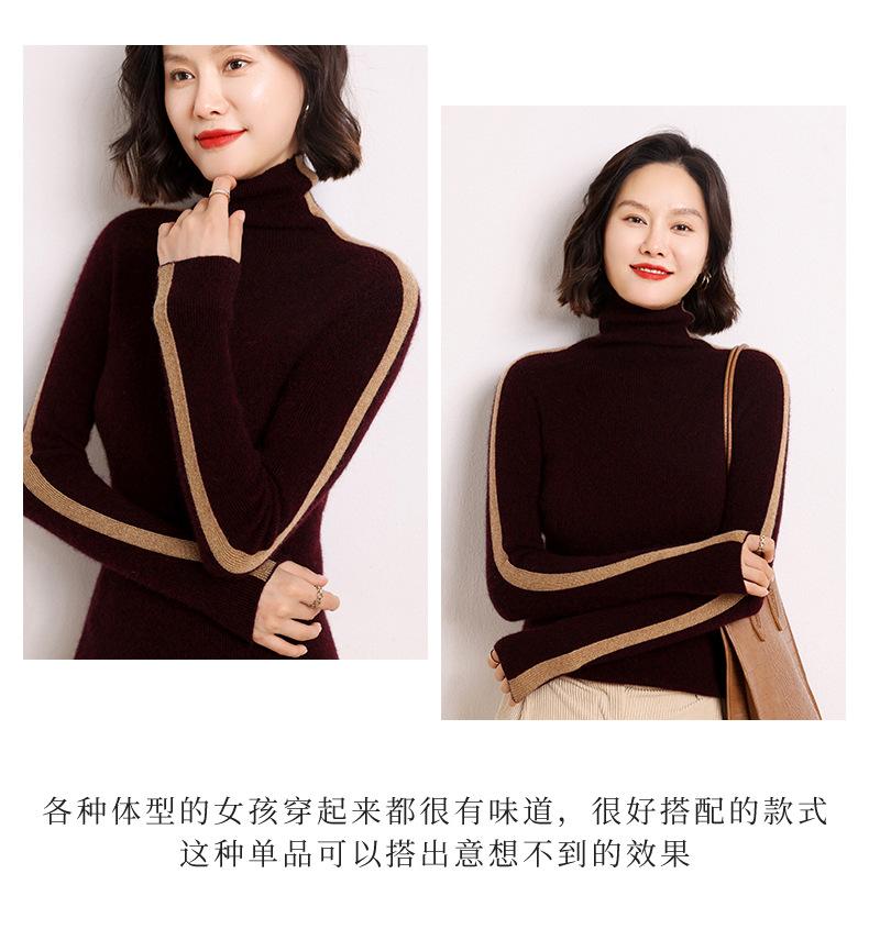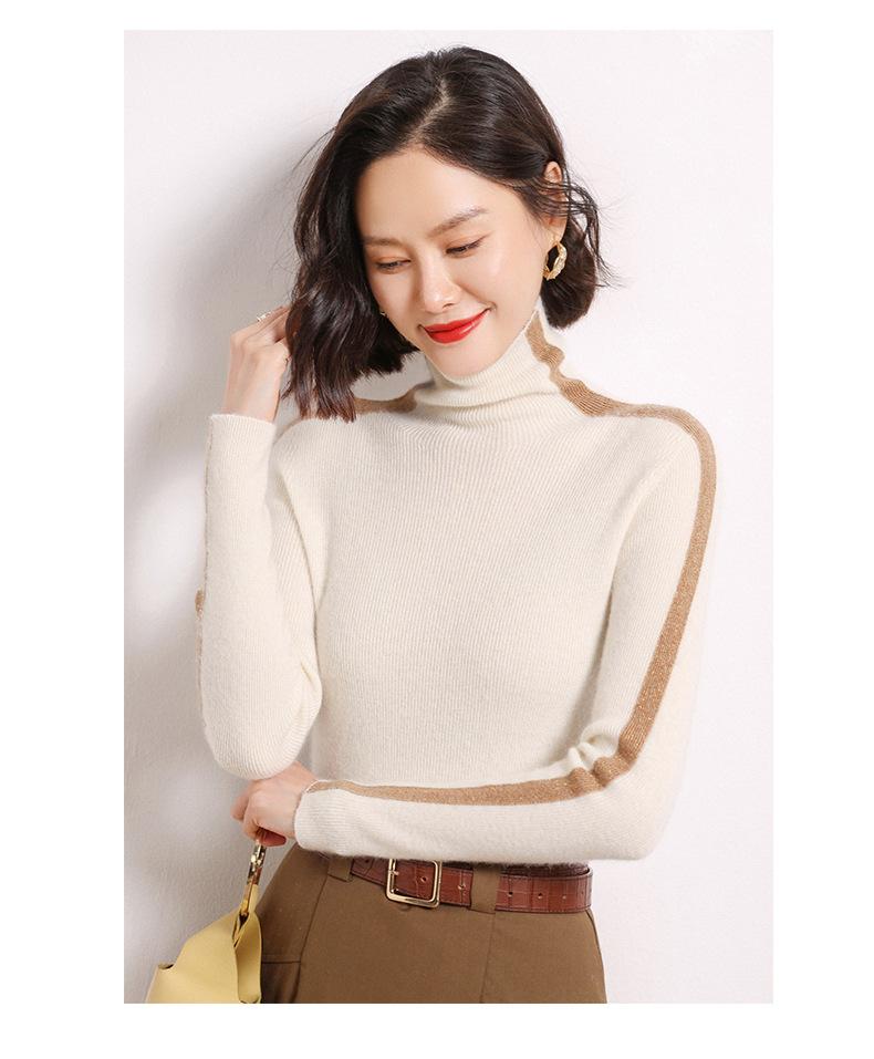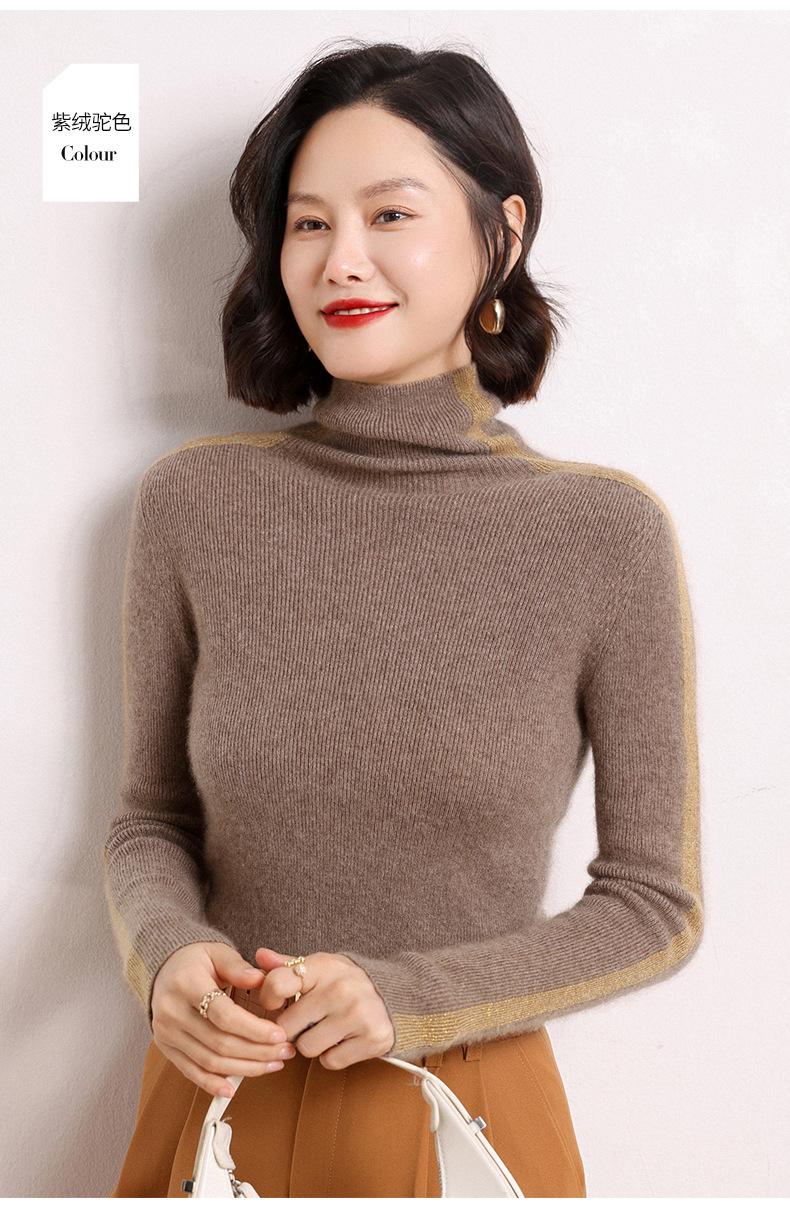 Otoño e invierno nuevo cuello alto de pelo prenda de primera línea combinación de colores mangas base de cachemira ajustado adelgazante commuter suéter tejido