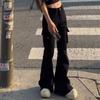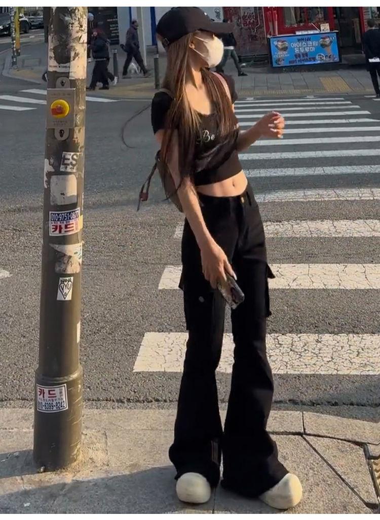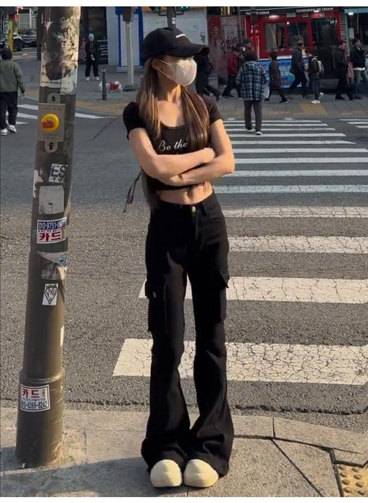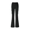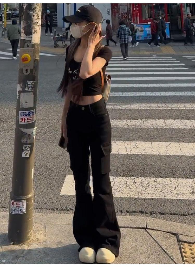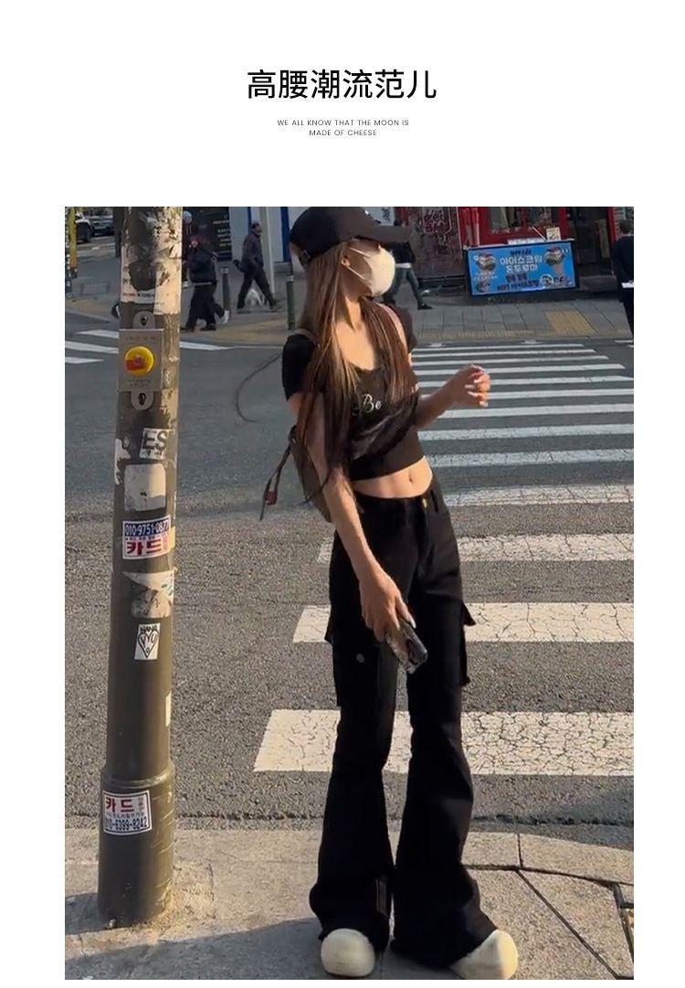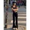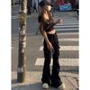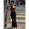 Pantalones cortos negros estilo americano para mujer, talla pequeña, primavera y otoño 2024, rectos, de cintura alta y ajustados, acampanados.