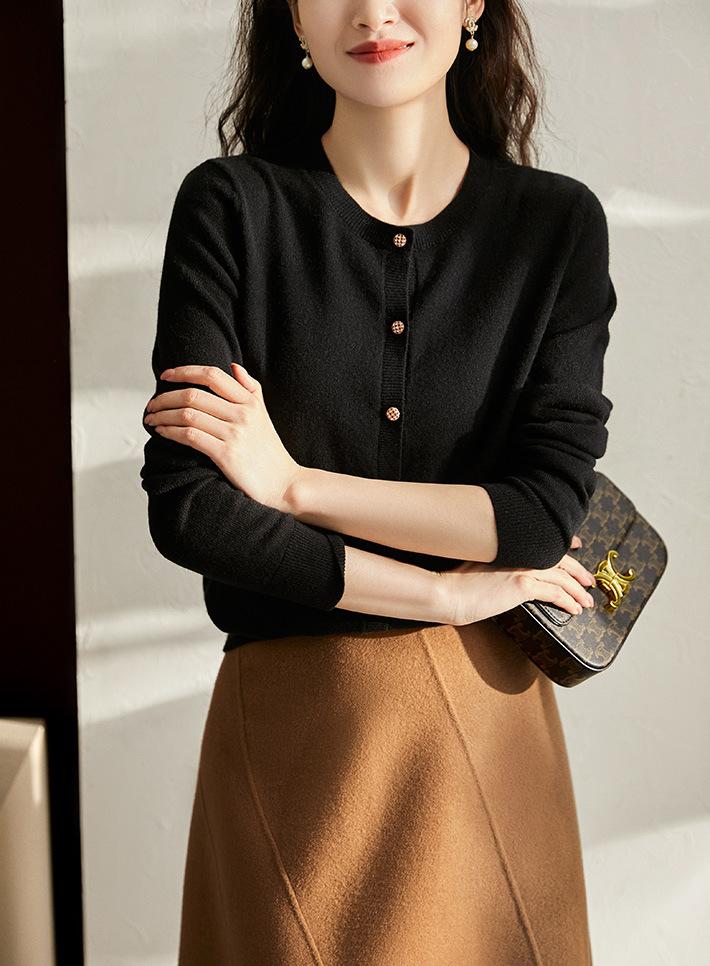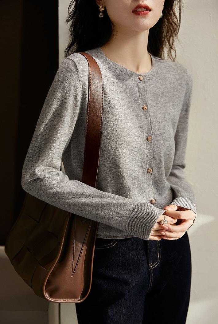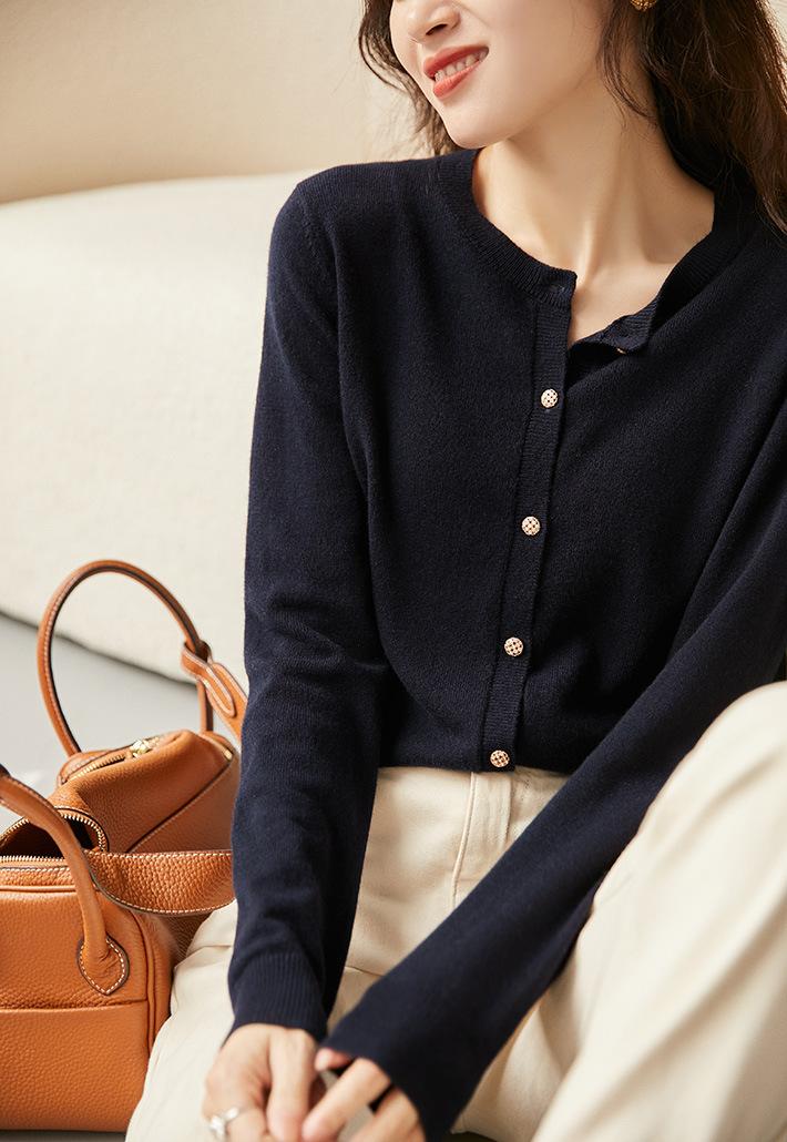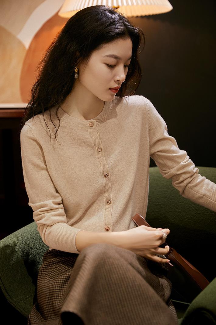 Cárdigan de Punto de Manga Larga para Mujer Estilo Delicado Fino Otoño e Invierno Tops Estilo Holgado Relajado Cuello Redondo Chal Top