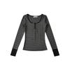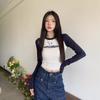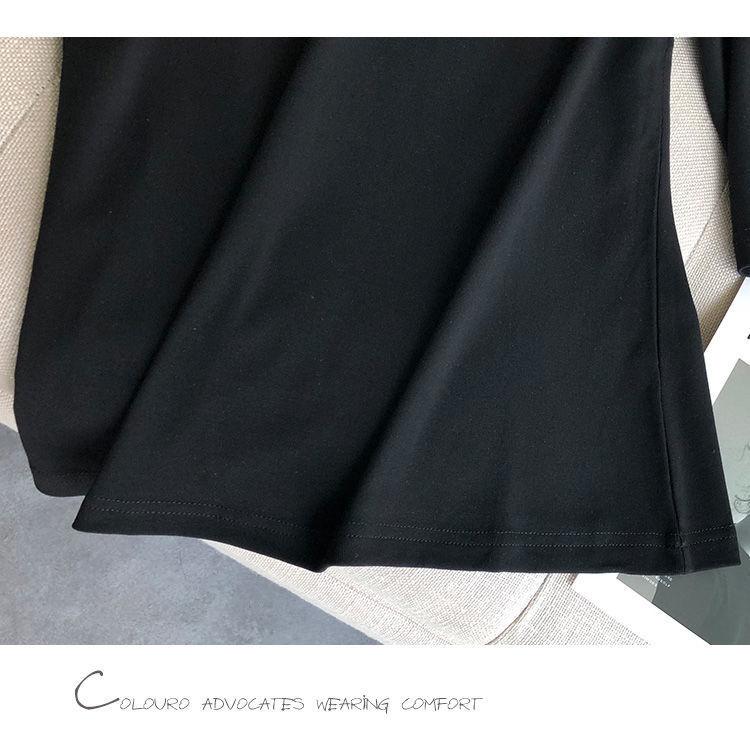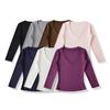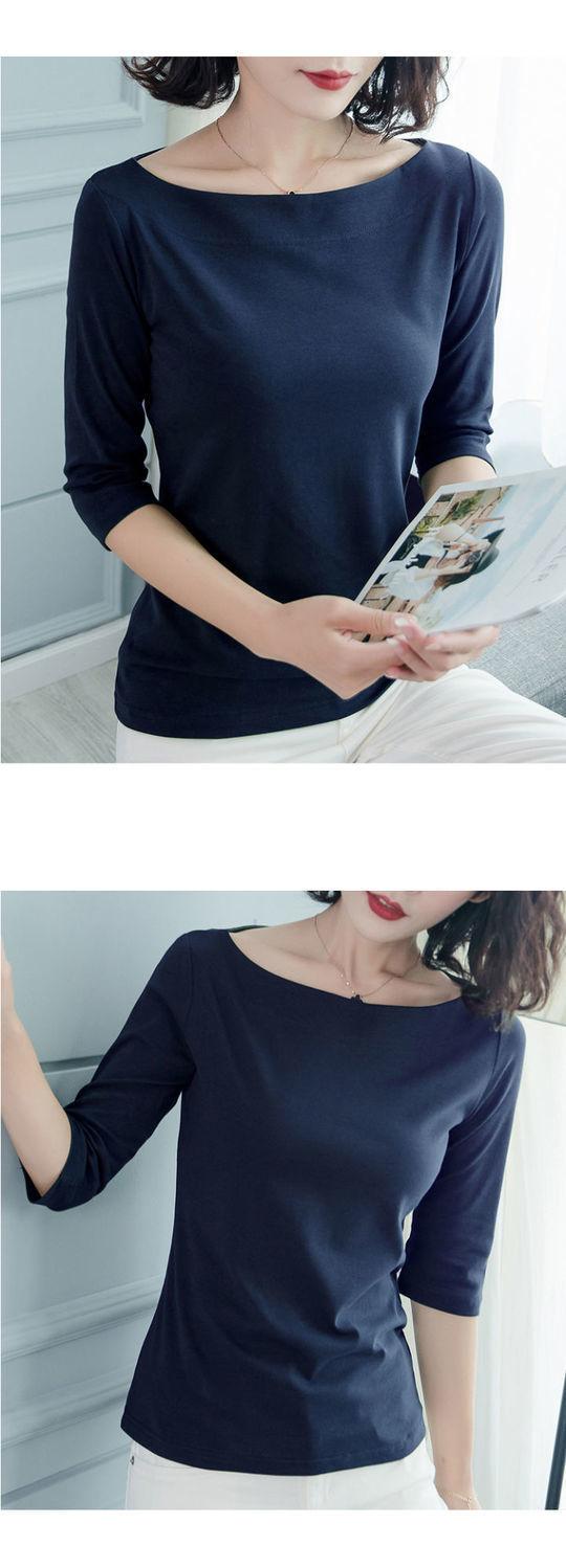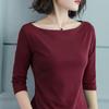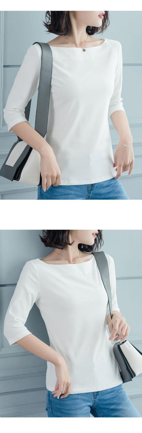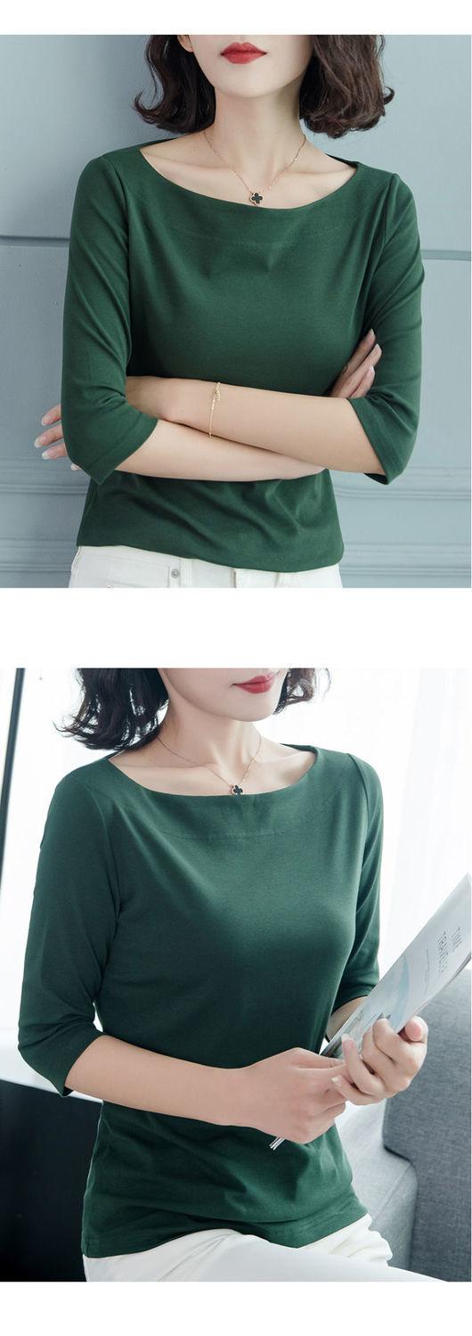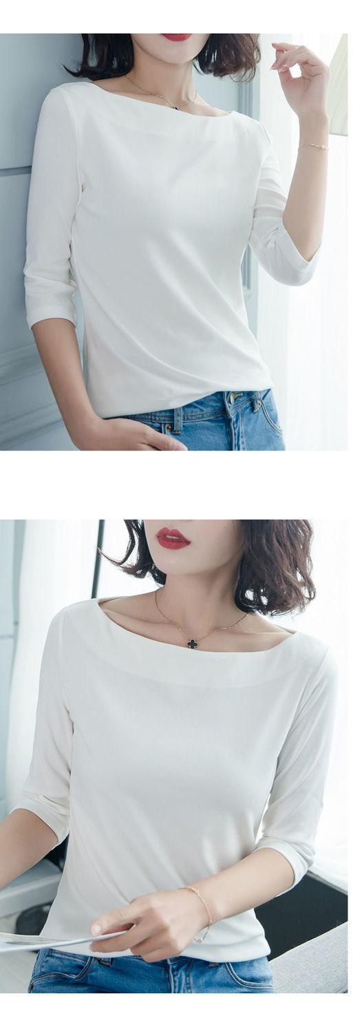 [Algodón puro] Camiseta de otoño con hombros descubiertos, color liso, ajustada, para mujer, de siete mangas