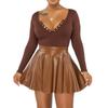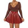 Falda de PU de color sólido sexy con diseño cruzado de Amazon 2024 para mujeres europeas y americanas, minifalda, falda tipo paraguas