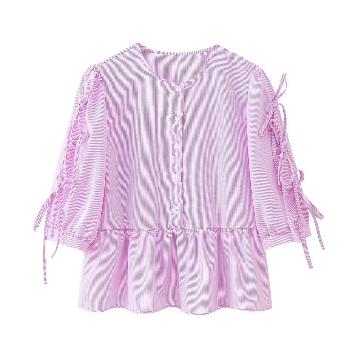 Blusa decorativa con cordones estilo europeo y americano para mujer, verano 2024, comercio exterior transfronterizo de Amazon, Europa y América