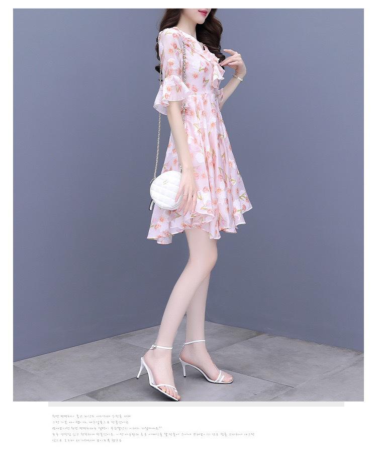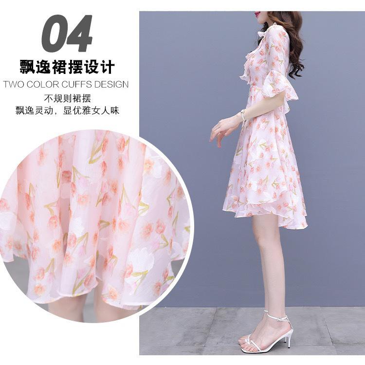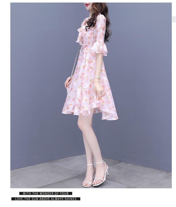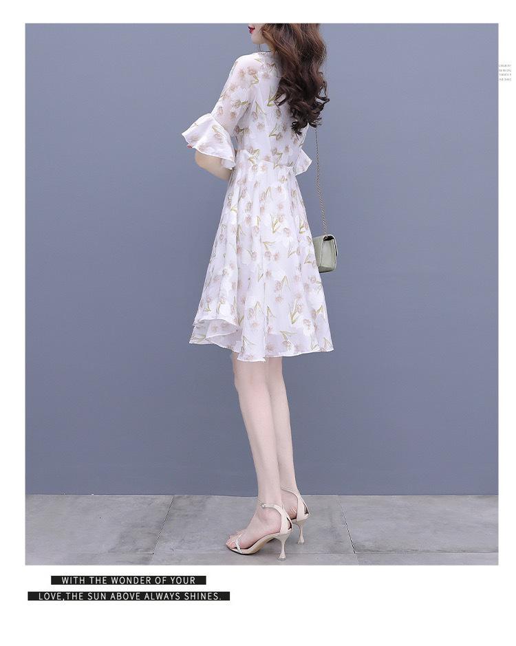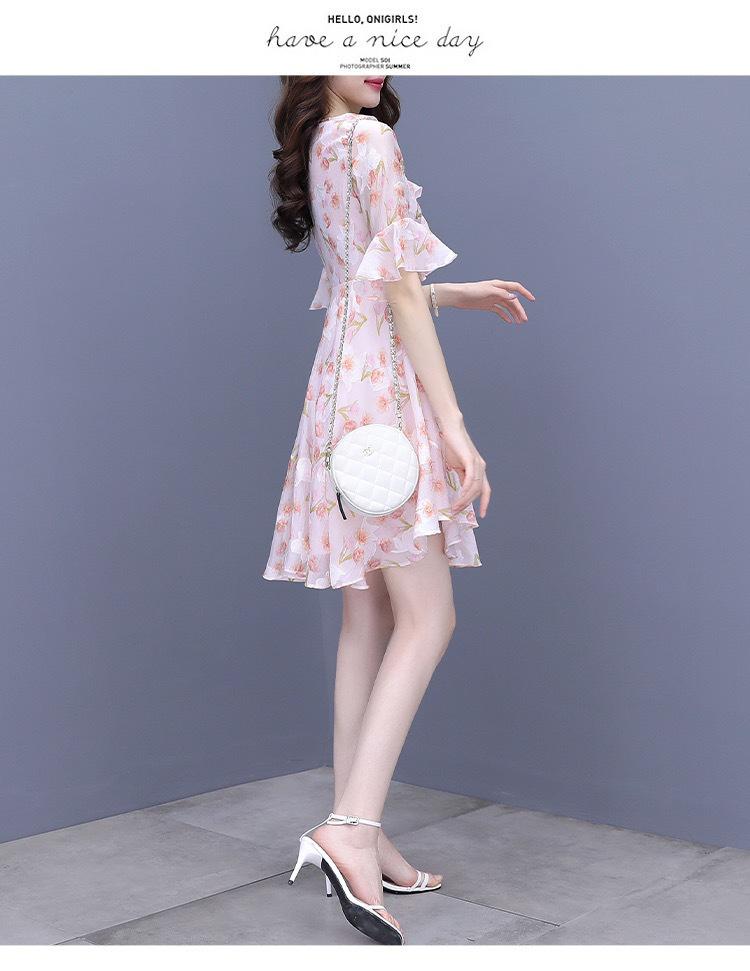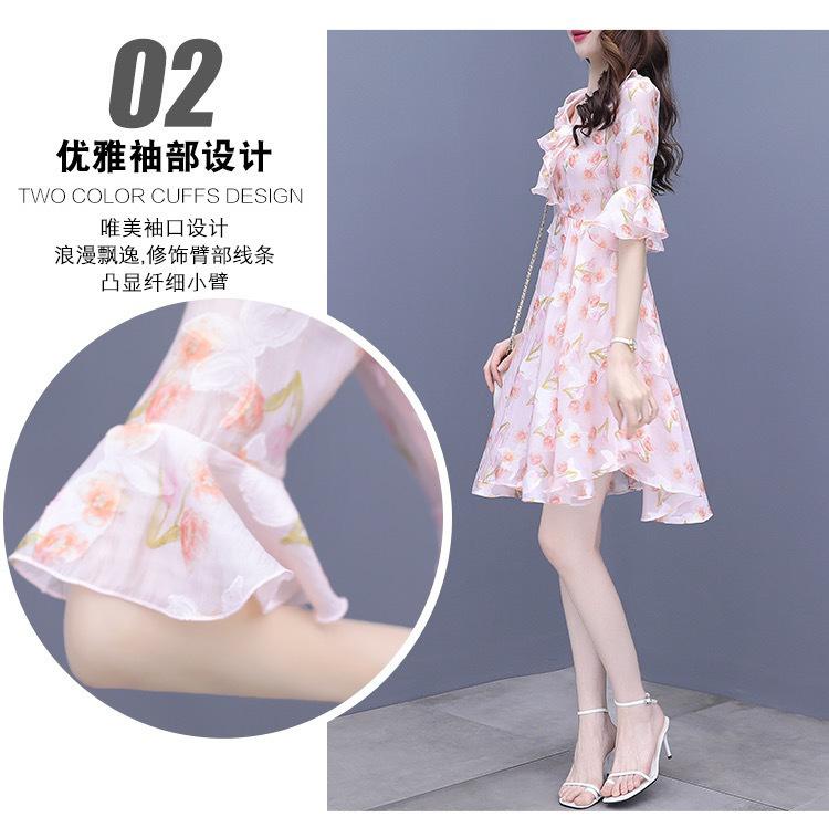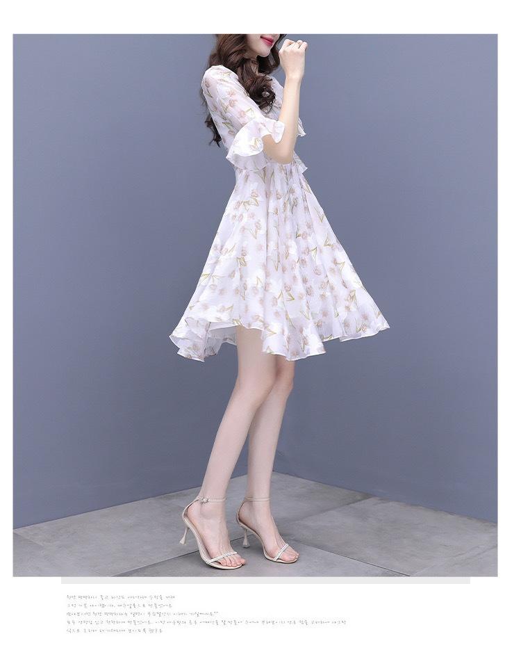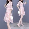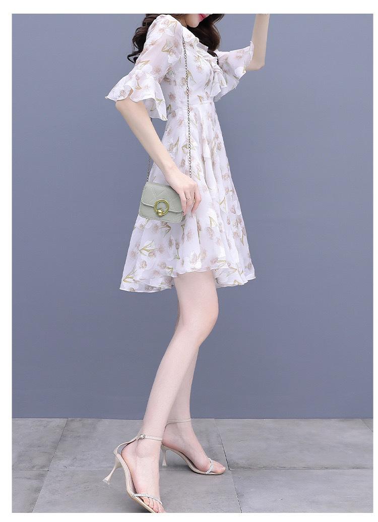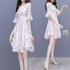 Vestido de gasa con cuello en V y falda acampanada estampada de estilo coreano para mujer, novedad de verano de 2022