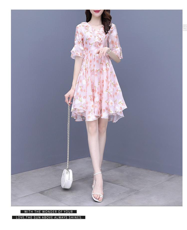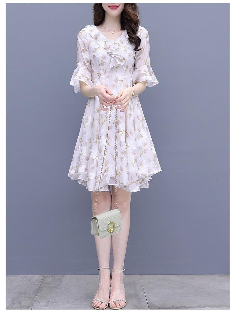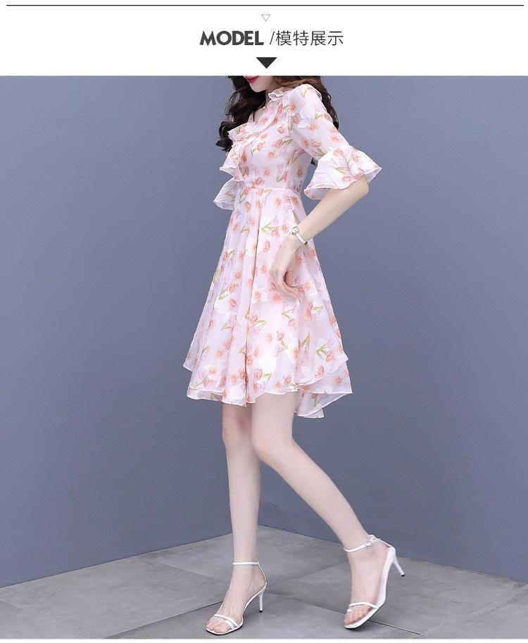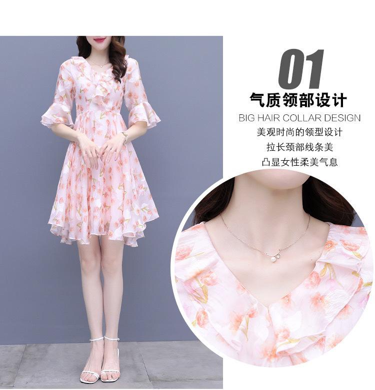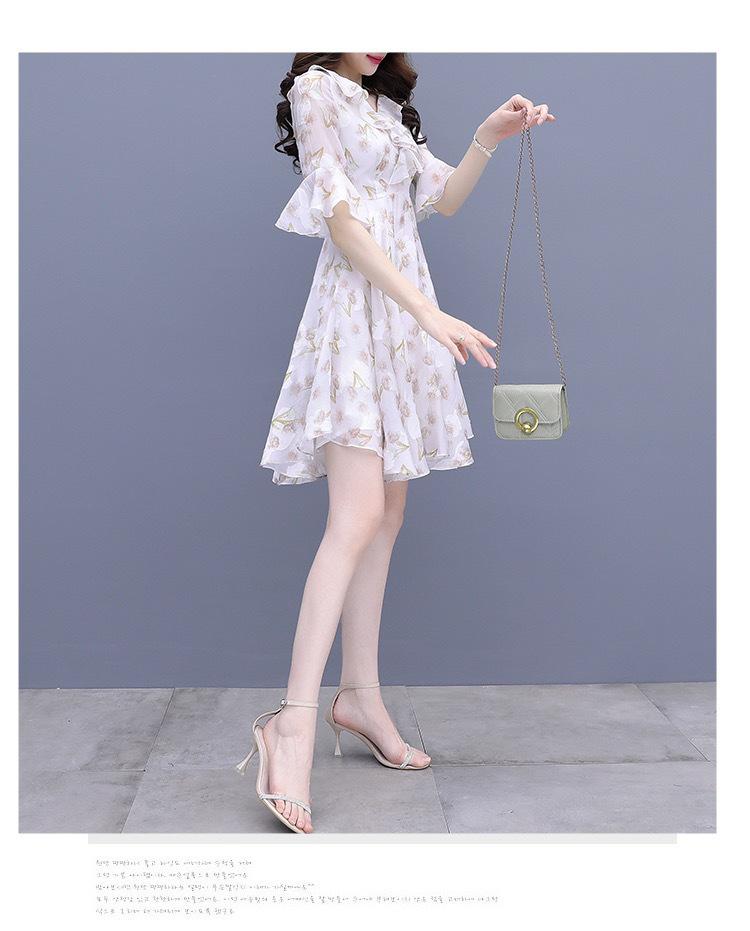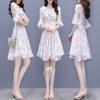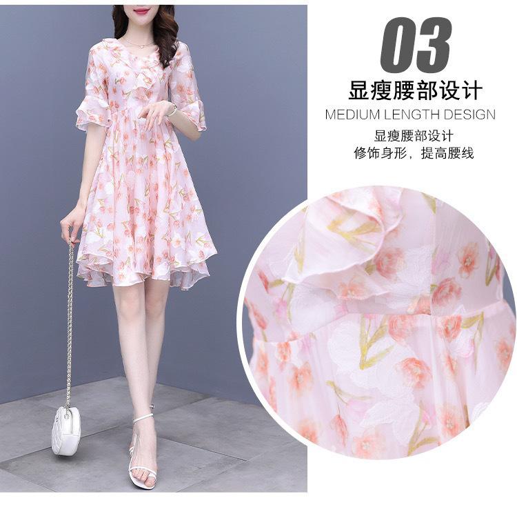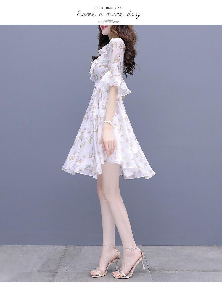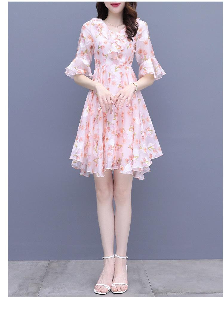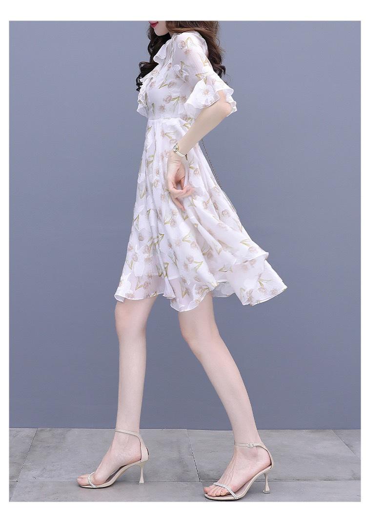 Vestido de gasa con cuello en V y falda acampanada estampada de estilo coreano para mujer, novedad de verano de 2022