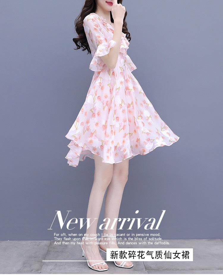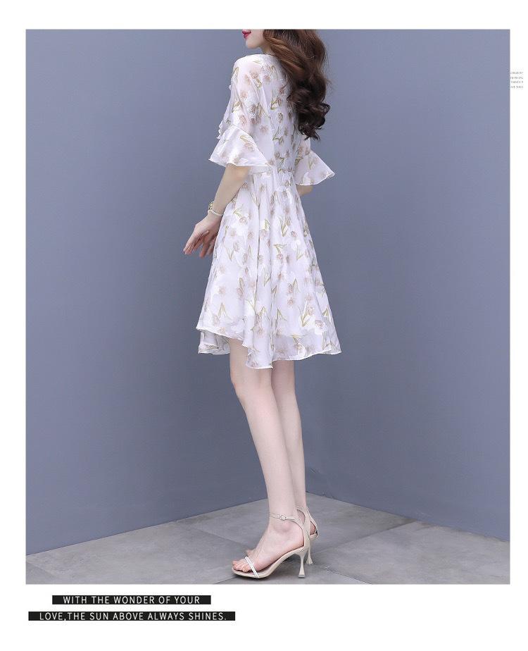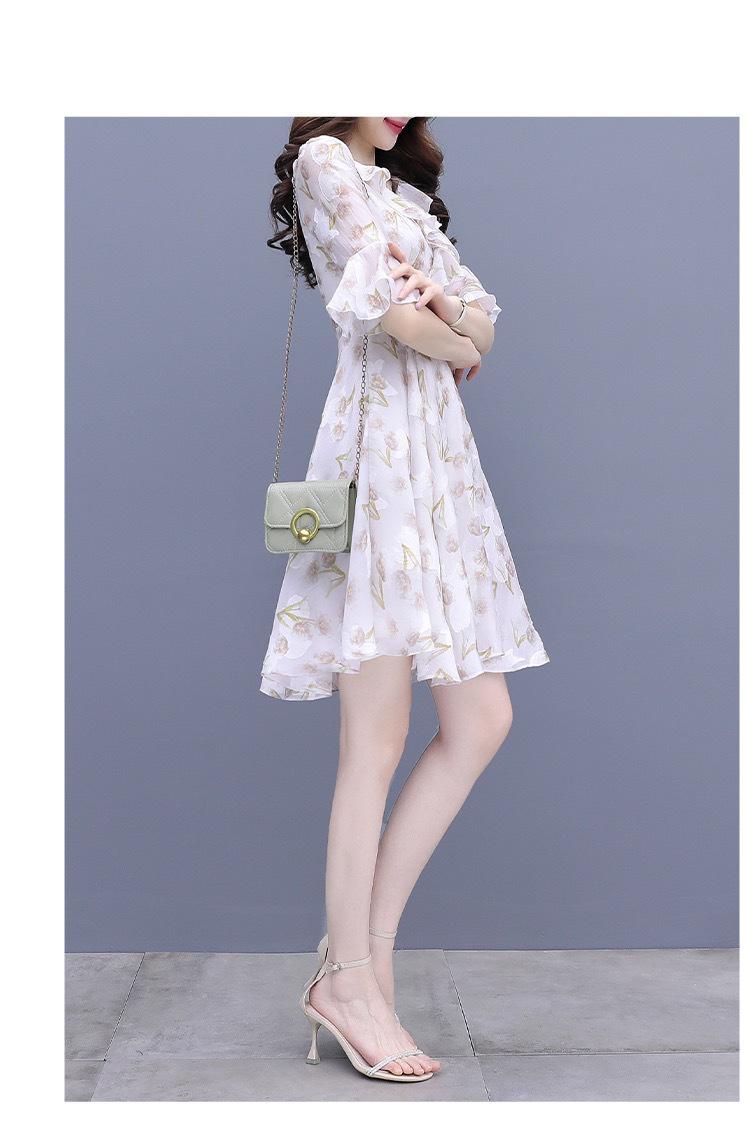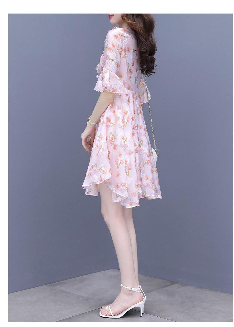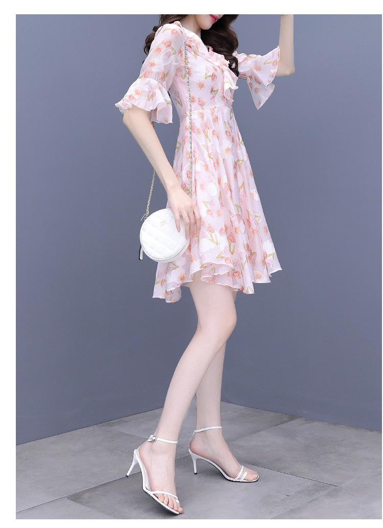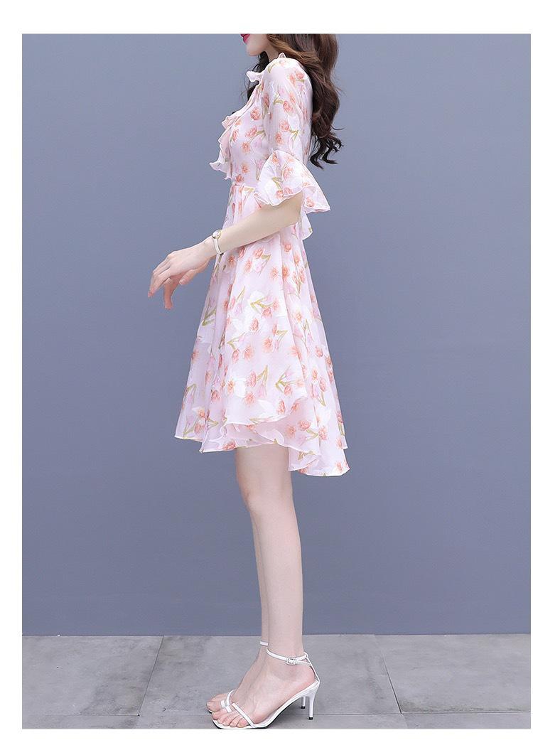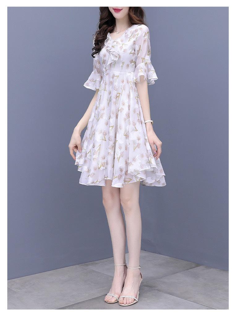 Vestido de gasa con cuello en V y falda acampanada estampada de estilo coreano para mujer, novedad de verano de 2022