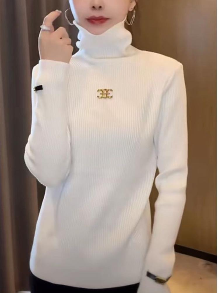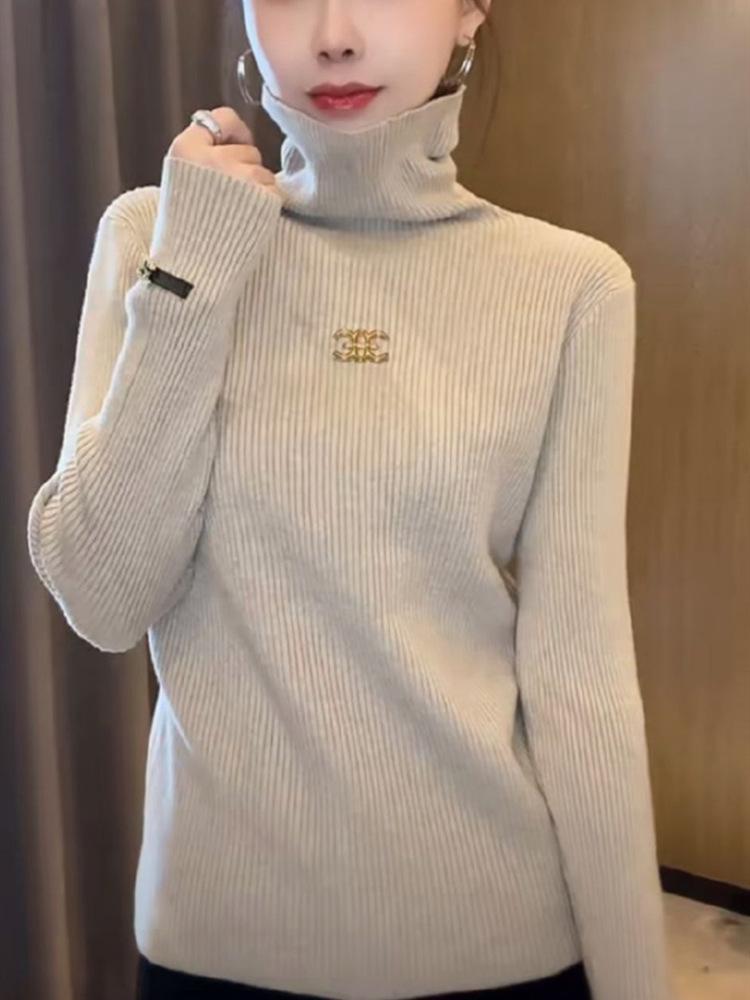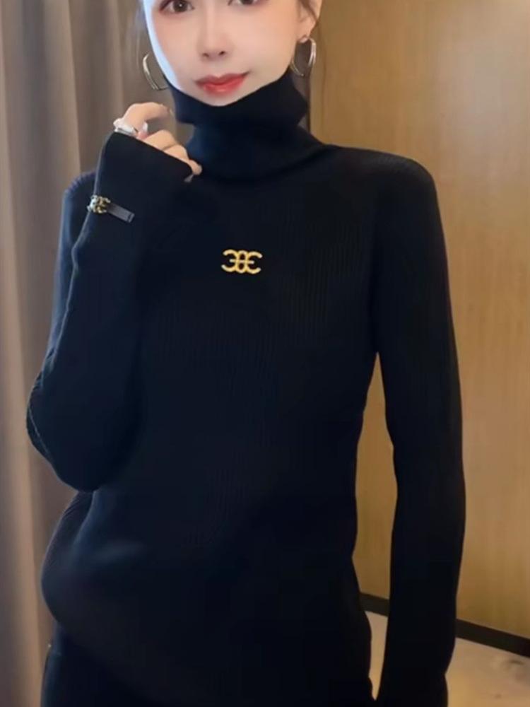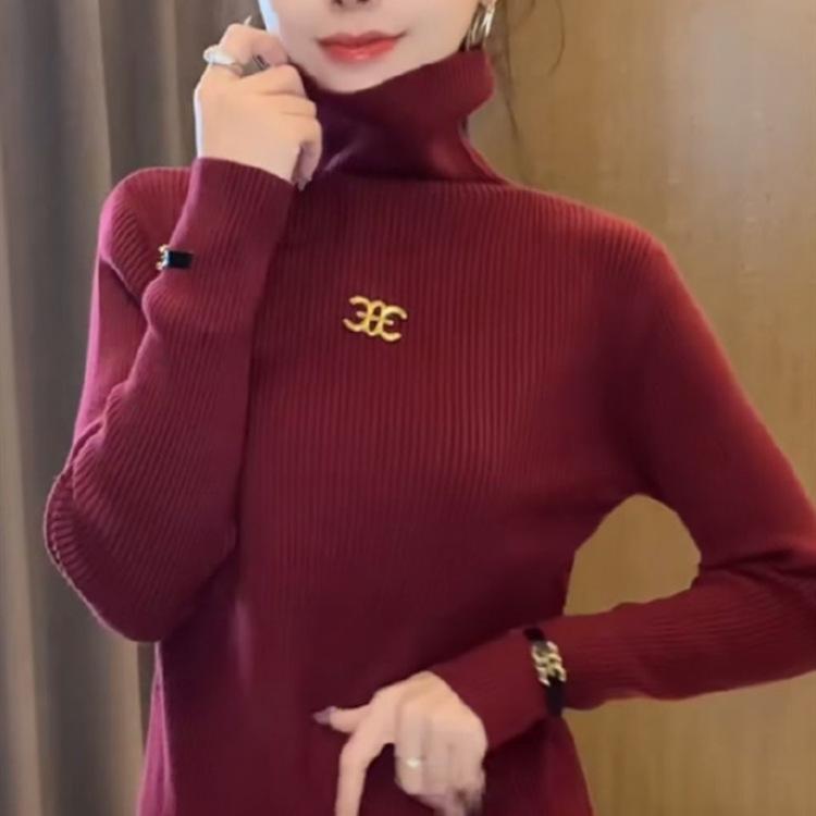 Suéter de punto nuevo de otoño 2024, combina con todo, suelto, ajustado, interior, popular en Internet, camisa fina de cuello alto para mujer