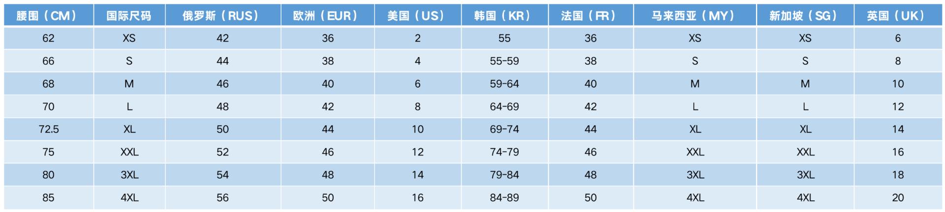XS, S, M, L, XL, 2XL, 3XL, 4XL