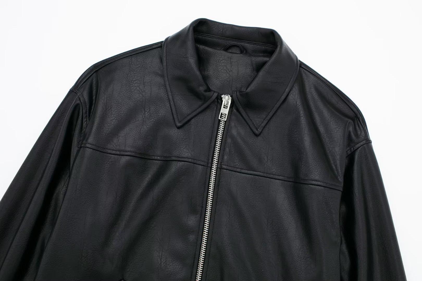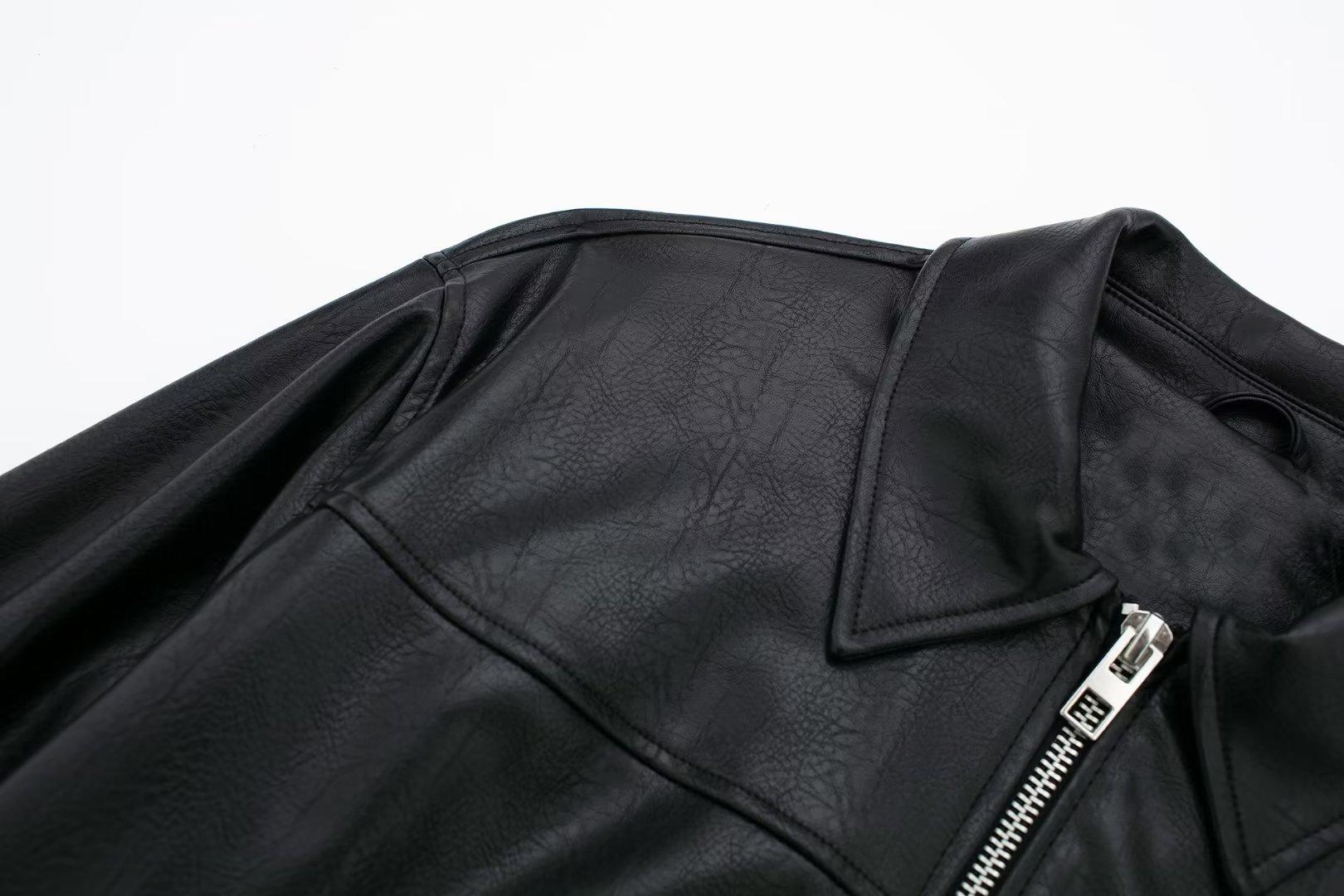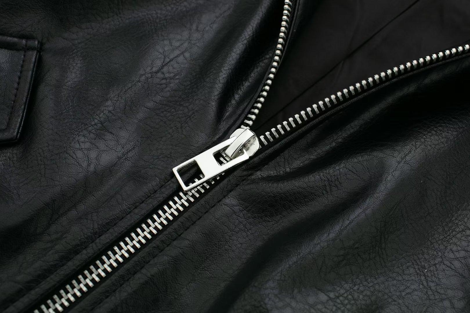 995316Black zipper leather jacket