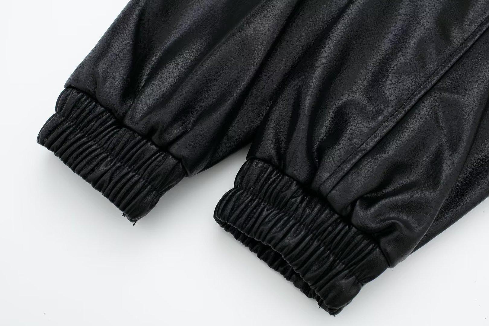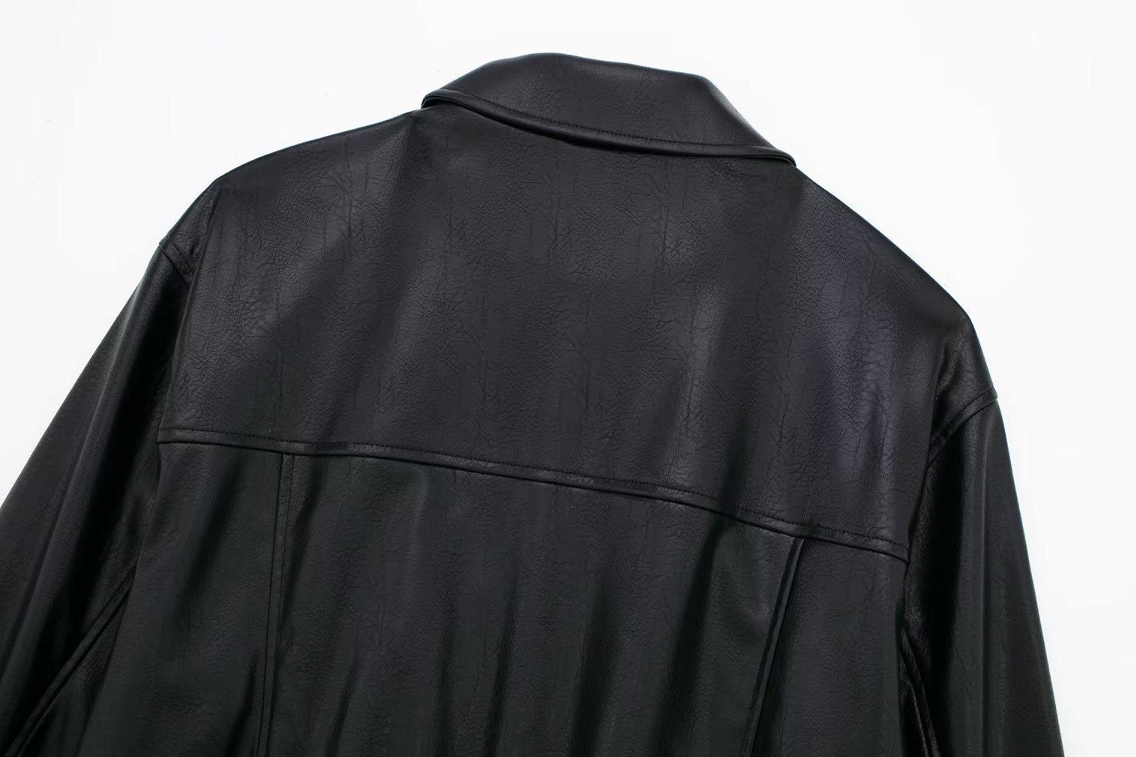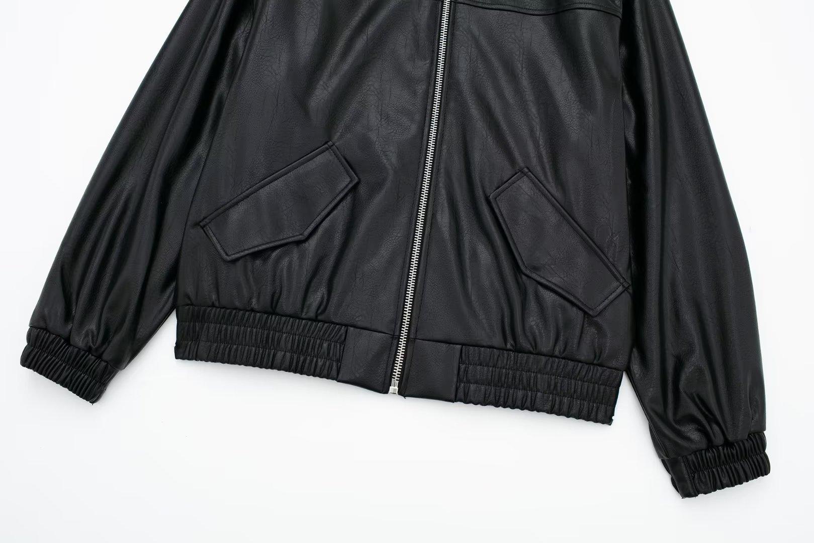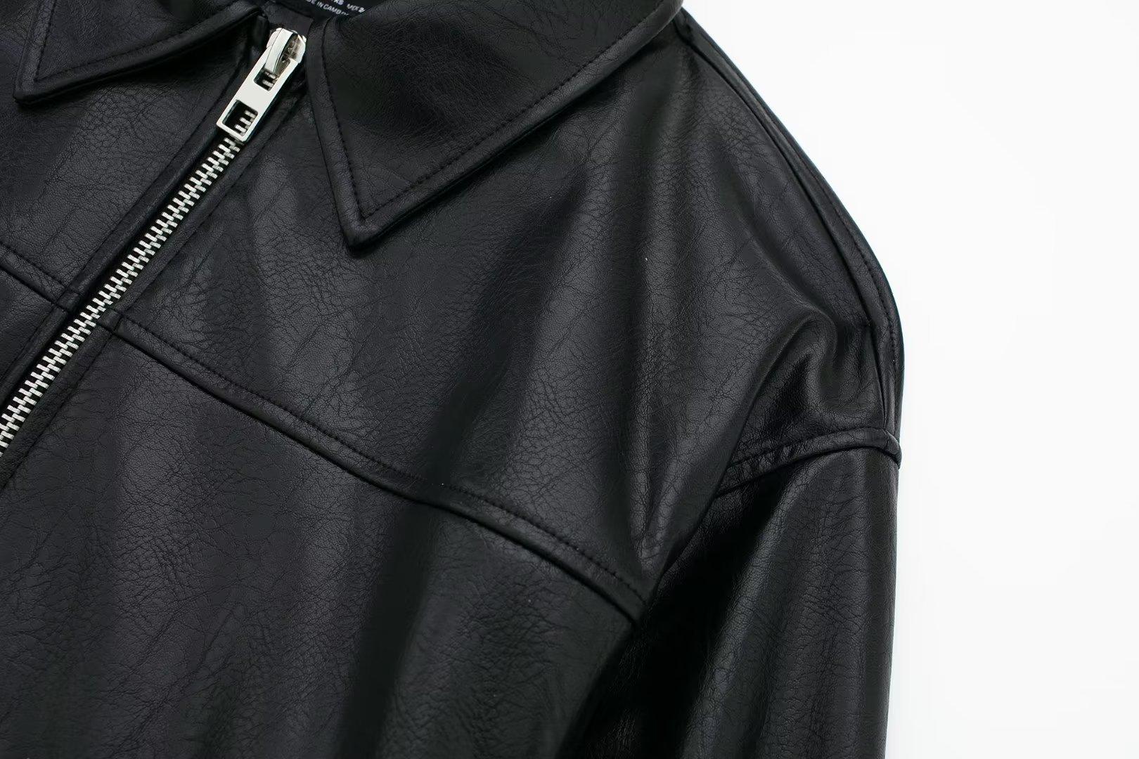 995316Black zipper leather jacket