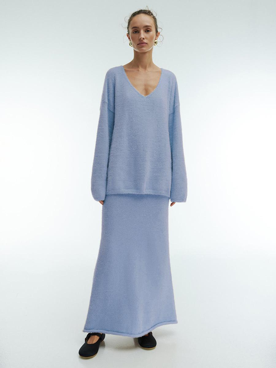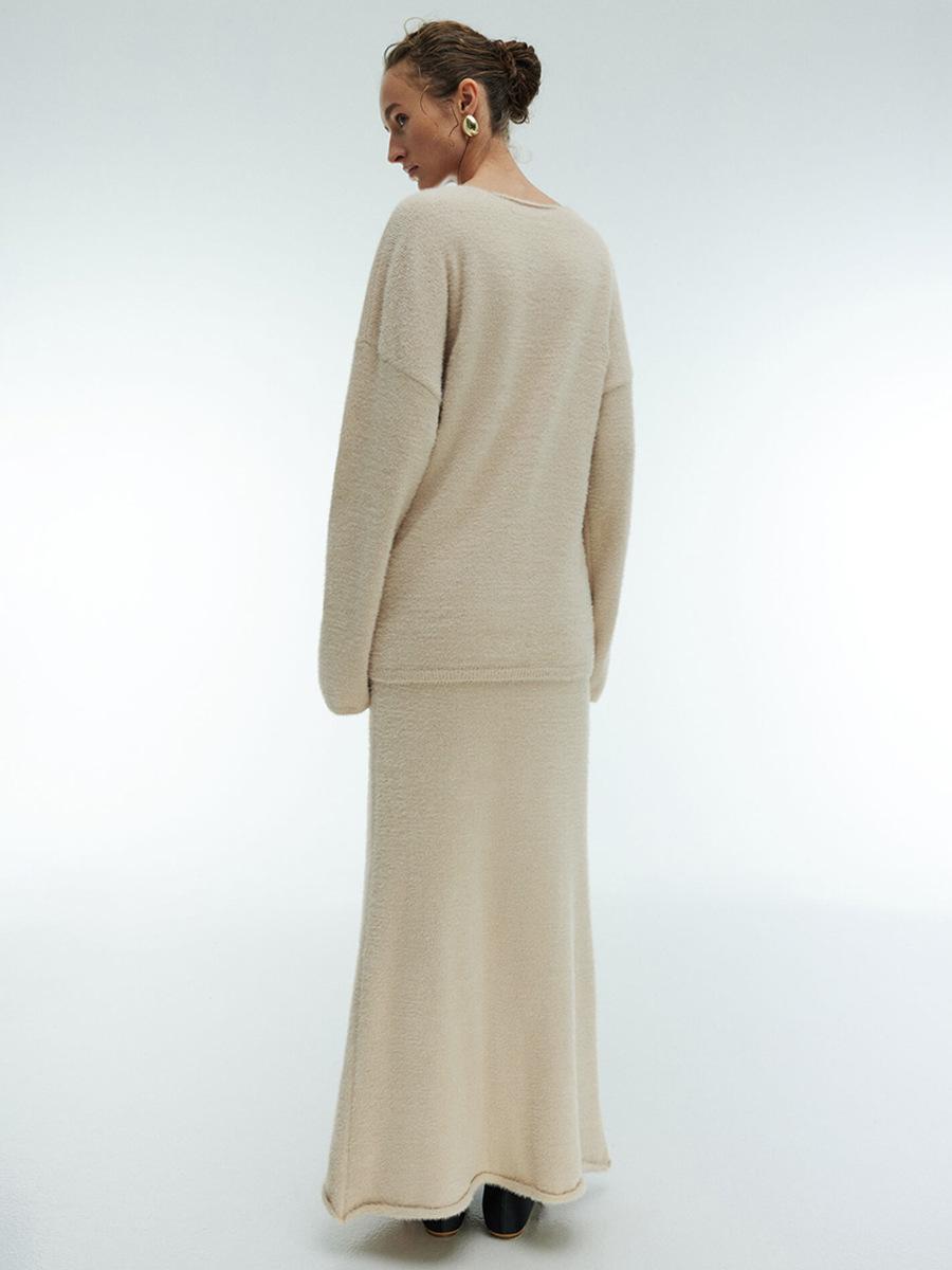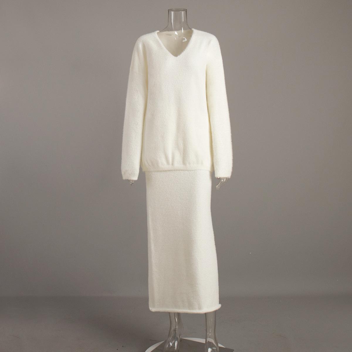 Traje de suéter de lana de visón transfronterizo para mujer, otoño e invierno, estilo europeo y americano para ir al trabajo, sencillo, tejido, con cuello en V, traje de falda y suéter
