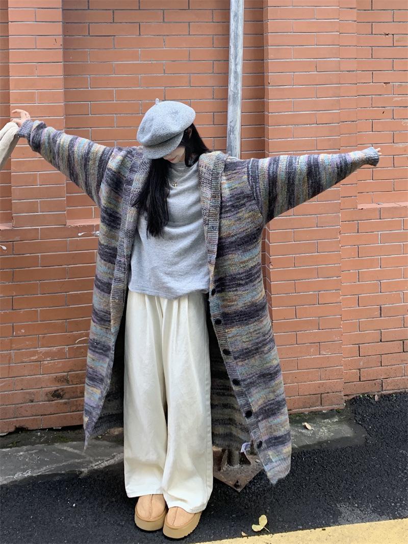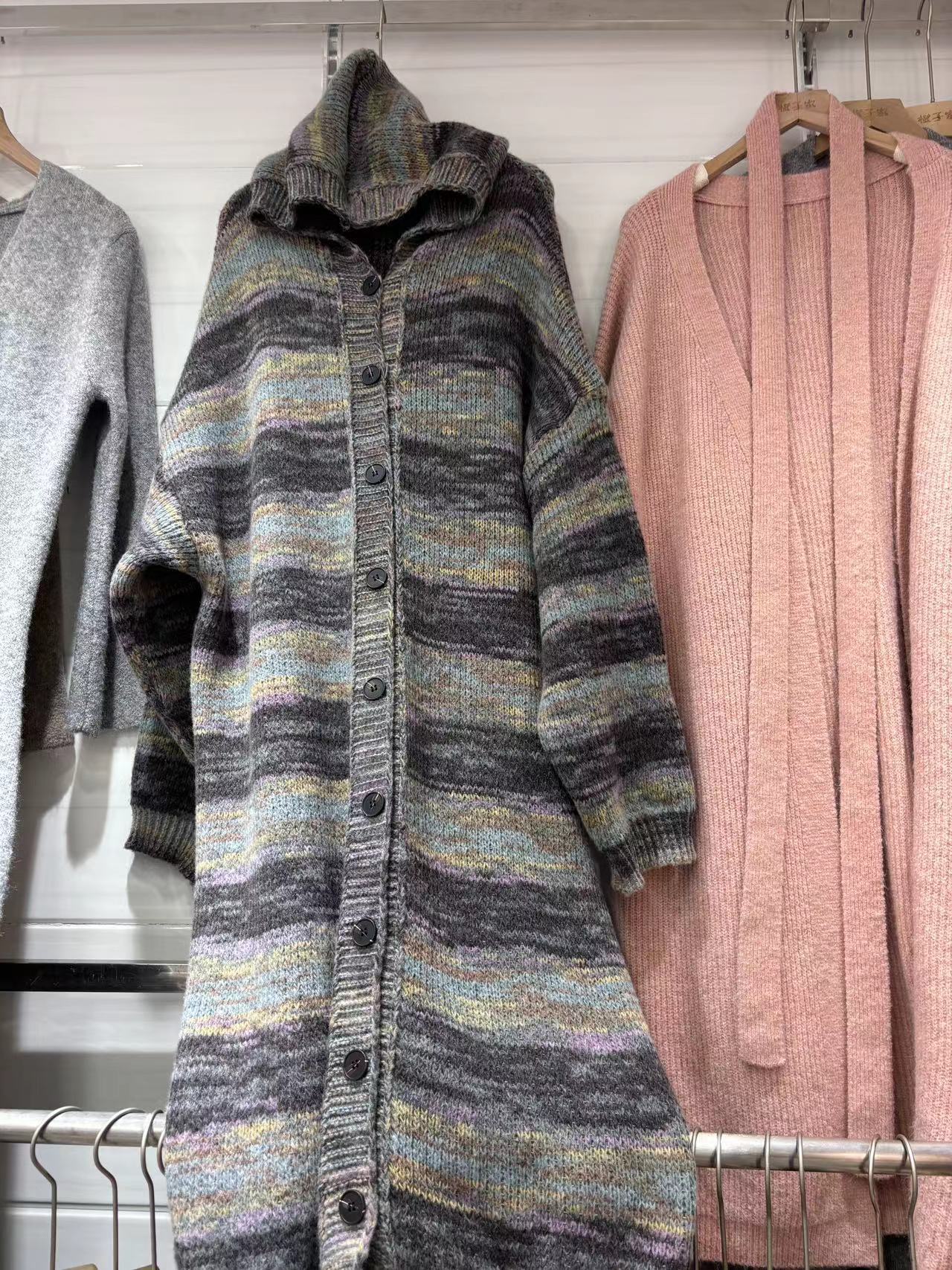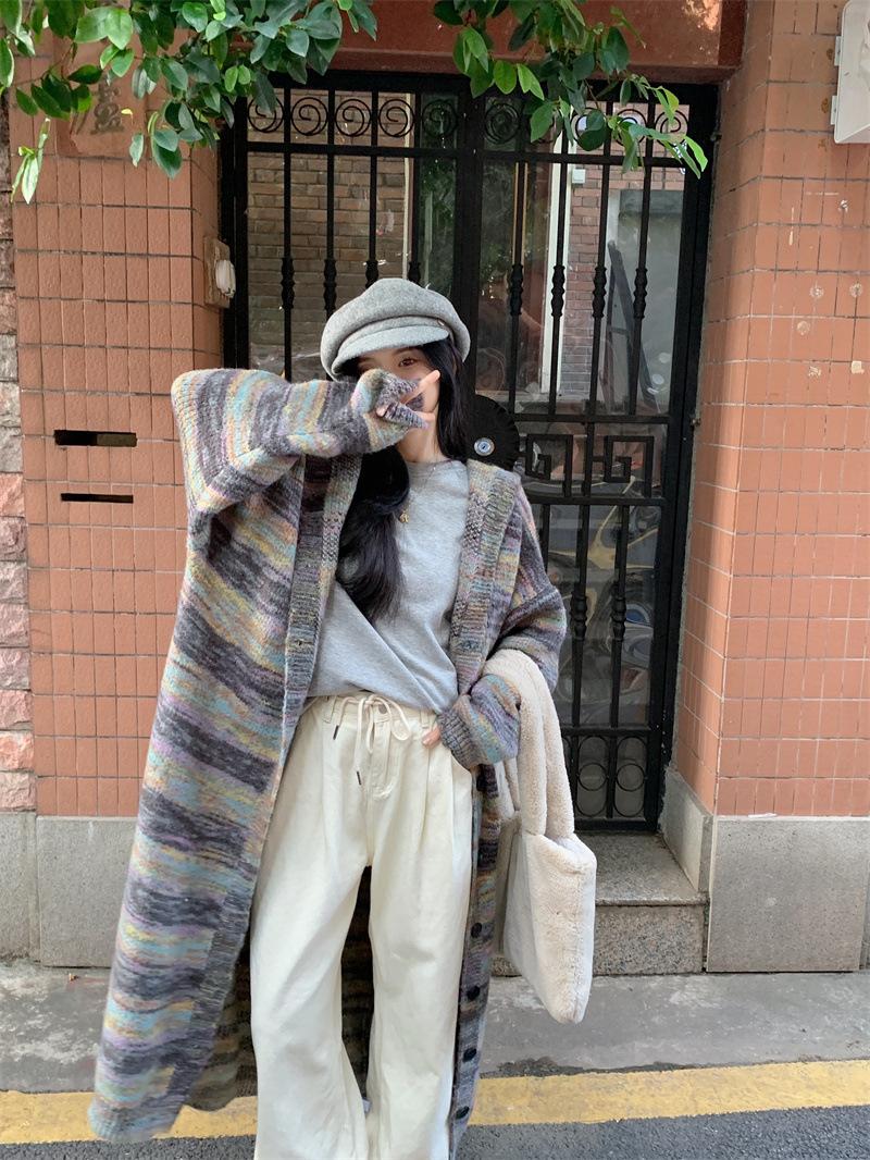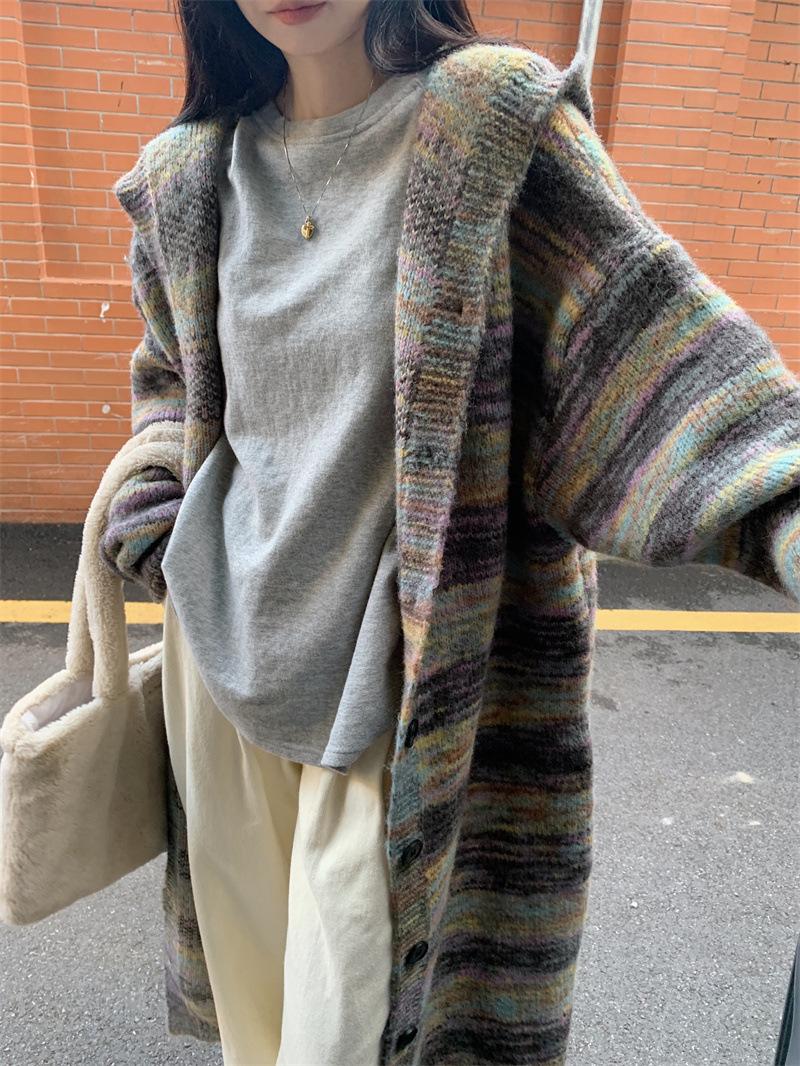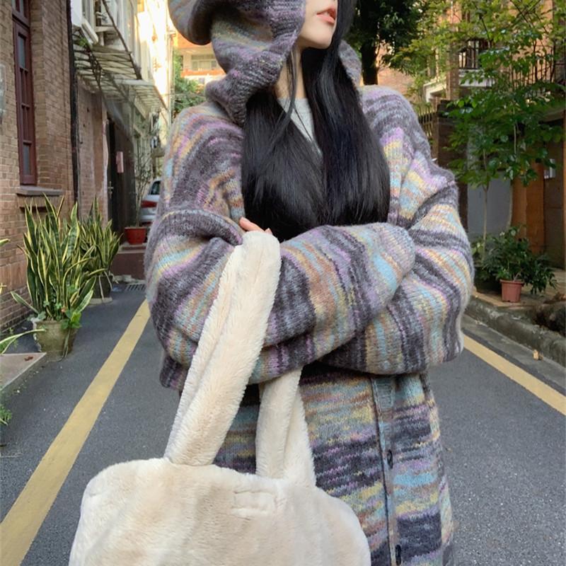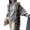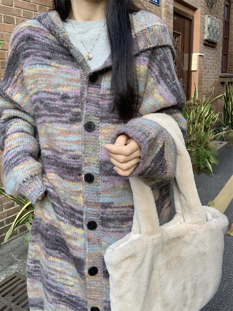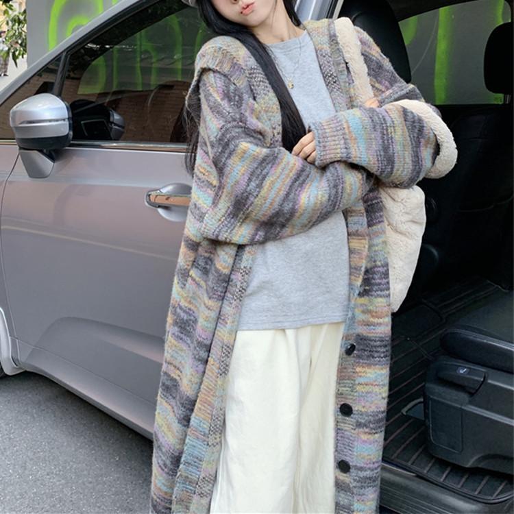 Cárdigan de punto de largo medio con capucha estilo coreano de talla grande, nueva moda de otoño e invierno, suéter versátil de estilo holgado y perezoso