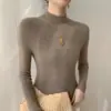 Otoño e Invierno Nuevo Suéter de Punto de Cachemira de Una Línea Sin Costuras Listo para Usar para Mujer Ajustado de Medio Cuello Alto Camisa Básica de Punto Slim
